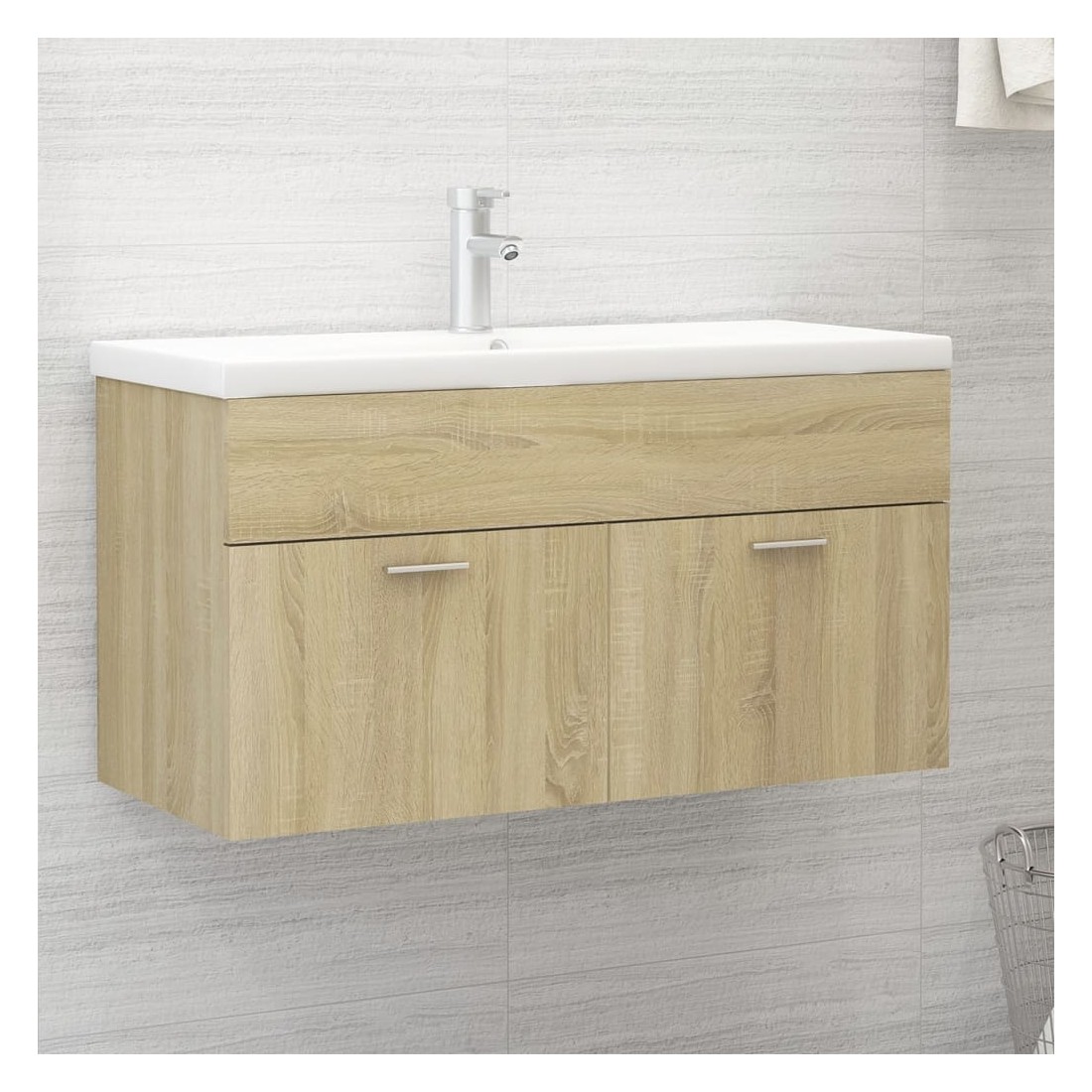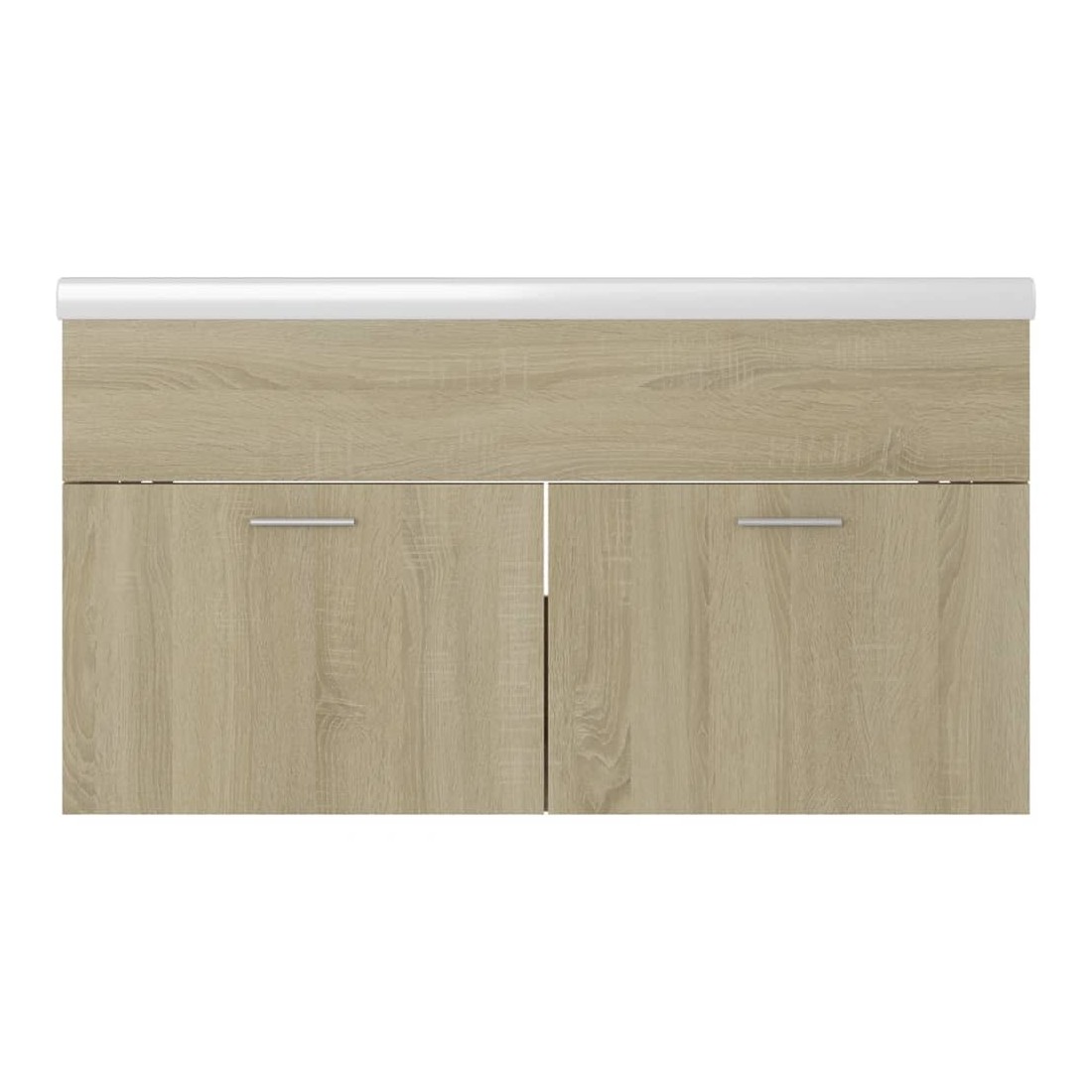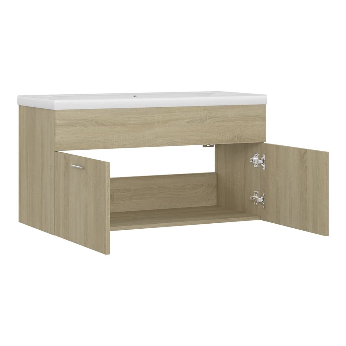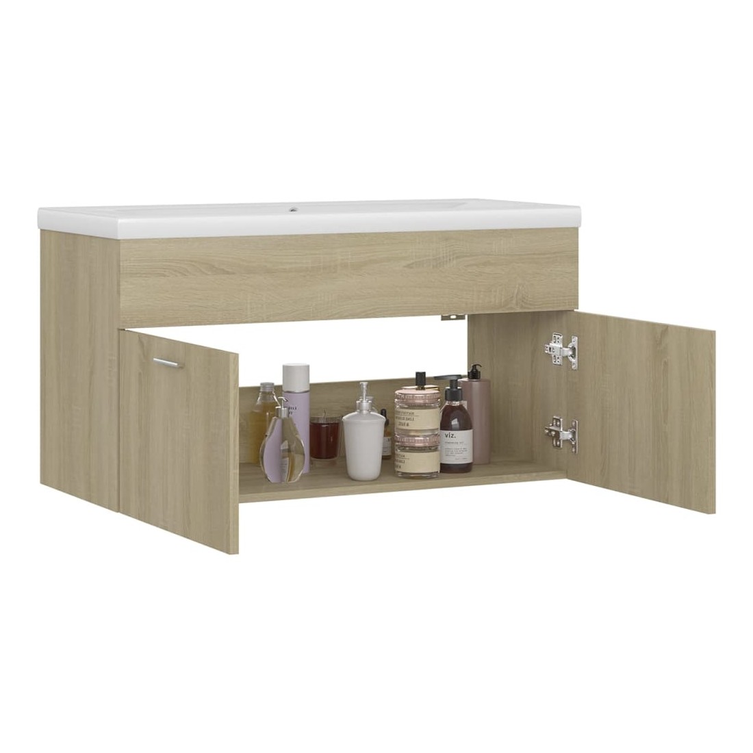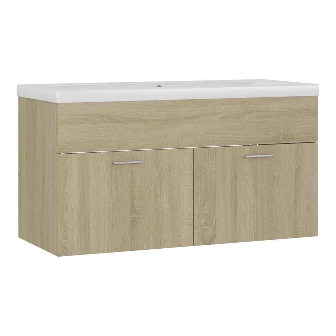 Cette armoire d'évier avec lavabo intégré s'agence parfaitement à votre salle de bain ou toilette avec un aspect saisissant et bien rangé. L'armoire est en bois d'ingénierie, ce qui la rend robuste et stable. L'armoire de rangement a 1 compartiment et 2 portes, offrant amplement d'espace pour ranger des objets. Elle s'intègre parfaitement sous l'évier et rend le rangement de la salle de bain très pratique. Fabriqué en céramique, le lavabo peut non seulement servir de récipient pour un usage quotidien, mais également d'ornement dans votre espace de vie. Grâce à son design avant-gardiste et contemporain, ce lavabo s'adaptera à n'importe quel décor. Un trop-plein est également équipé pour évacuer l'eau lorsqu'il est trop plein. Sa surface vitrée lui confère un design à la fois moderne et élégant. De plus, l'armoire et le lavabo sont faciles à nettoyer avec un chiffon humide. Remarque : le robinet et le vidange ne sont pas inclus dans la livraison.