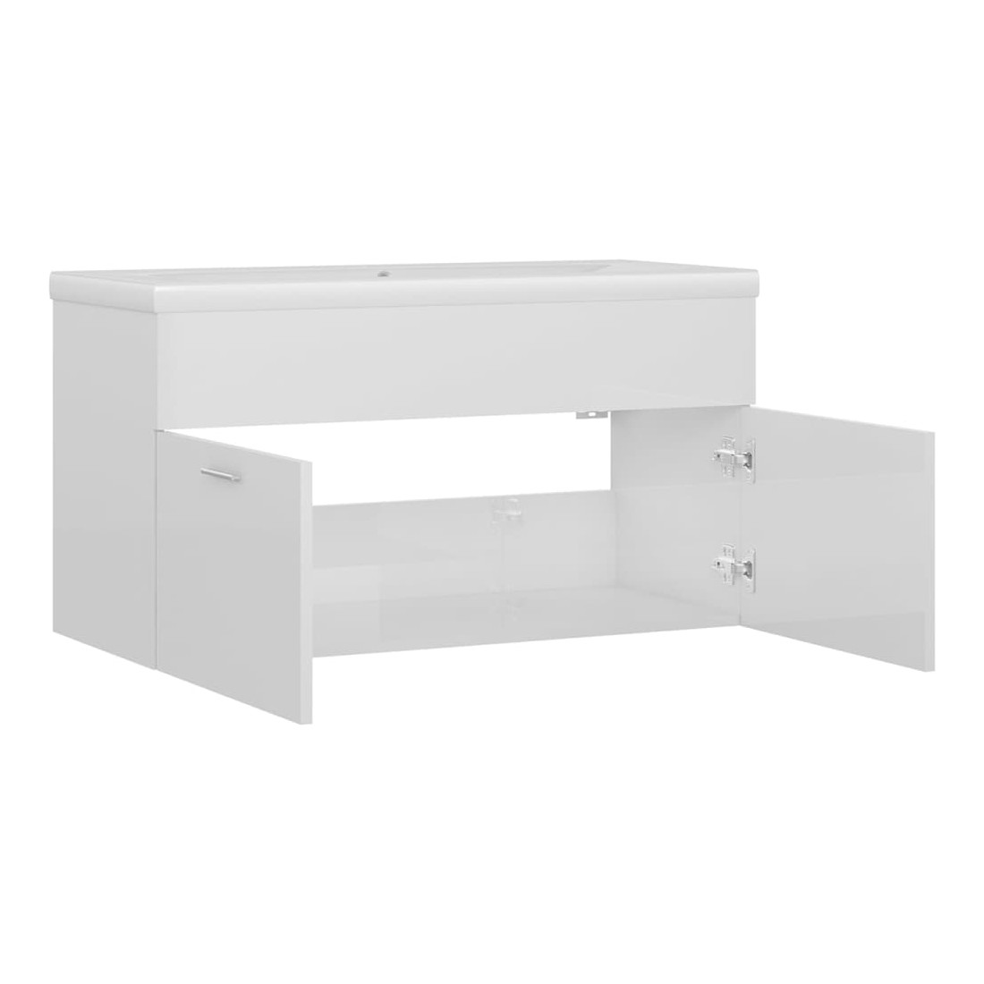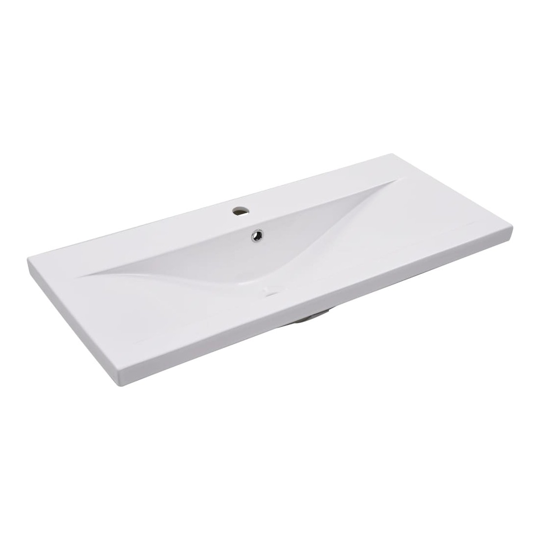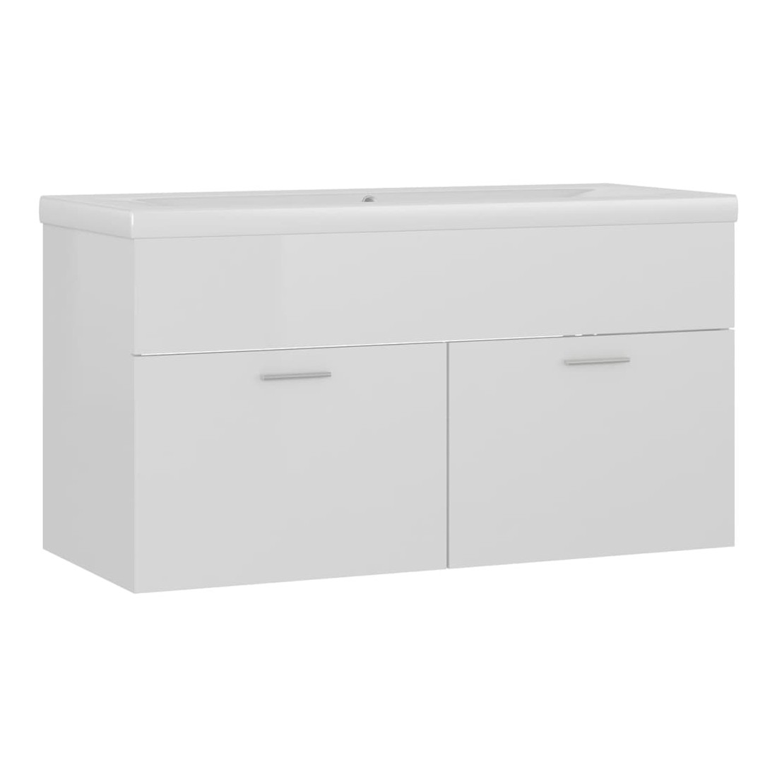 Cette armoire d'évier avec lavabo intégré s'agence parfaitement à votre salle de bain ou toilette avec un aspect saisissant et bien rangé. L'armoire est en bois d'ingénierie, ce qui la rend robuste et stable. L'armoire de rangement a 1 compartiment et 2 portes, offrant amplement d'espace pour ranger des objets. Elle s'intègre parfaitement sous l'évier et rend le rangement de la salle de bain très pratique. Fabriqué en céramique, le lavabo peut non seulement servir de récipient pour un usage quotidien, mais également d'ornement dans votre espace de vie. Grâce à son design avant-gardiste et contemporain, ce lavabo s'adaptera à n'importe quel décor. Un trop-plein est également équipé pour évacuer l'eau lorsqu'il est trop plein. Sa surface vitrée lui confère un design à la fois moderne et élégant. De plus, l'armoire et le lavabo sont faciles à nettoyer avec un chiffon humide. Remarque : le robinet et le vidange ne sont pas inclus dans la livraison.