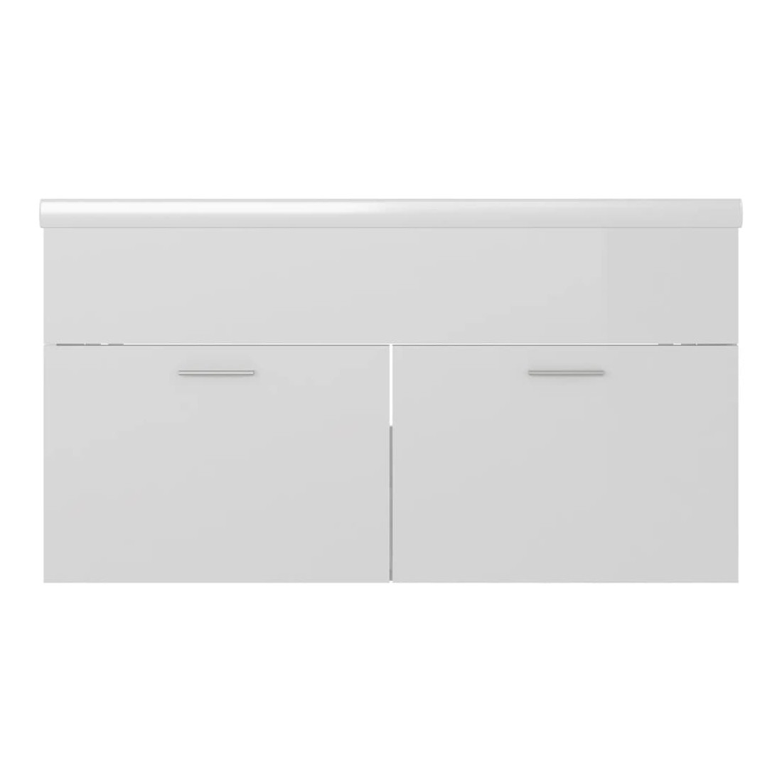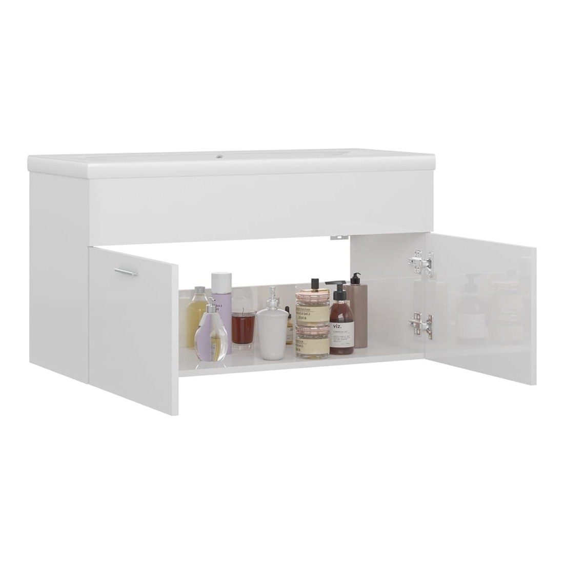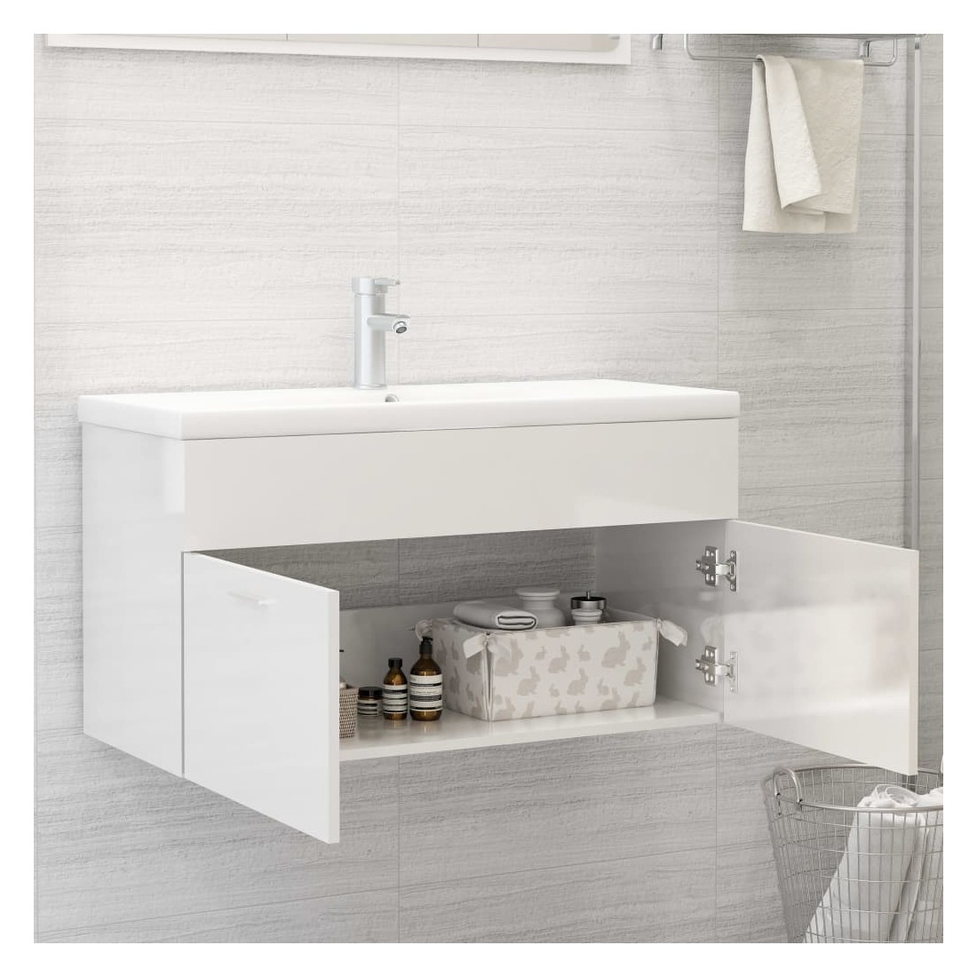 Cette armoire d'évier avec lavabo intégré s'agence parfaitement à votre salle de bain ou toilette avec un aspect saisissant et bien rangé. L'armoire est en bois d'ingénierie, ce qui la rend robuste et stable. L'armoire de rangement a 1 compartiment et 2 portes, offrant amplement d'espace pour ranger des objets. Elle s'intègre parfaitement sous l'évier et rend le rangement de la salle de bain très pratique. Fabriqué en céramique, le lavabo peut non seulement servir de récipient pour un usage quotidien, mais également d'ornement dans votre espace de vie. Grâce à son design avant-gardiste et contemporain, ce lavabo s'adaptera à n'importe quel décor. Un trop-plein est également équipé pour évacuer l'eau lorsqu'il est trop plein. Sa surface vitrée lui confère un design à la fois moderne et élégant. De plus, l'armoire et le lavabo sont faciles à nettoyer avec un chiffon humide. Remarque : le robinet et le vidange ne sont pas inclus dans la livraison.