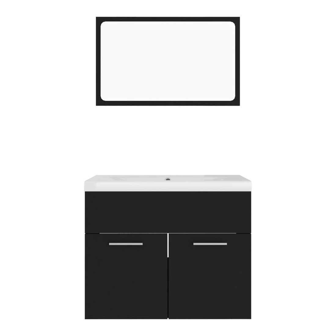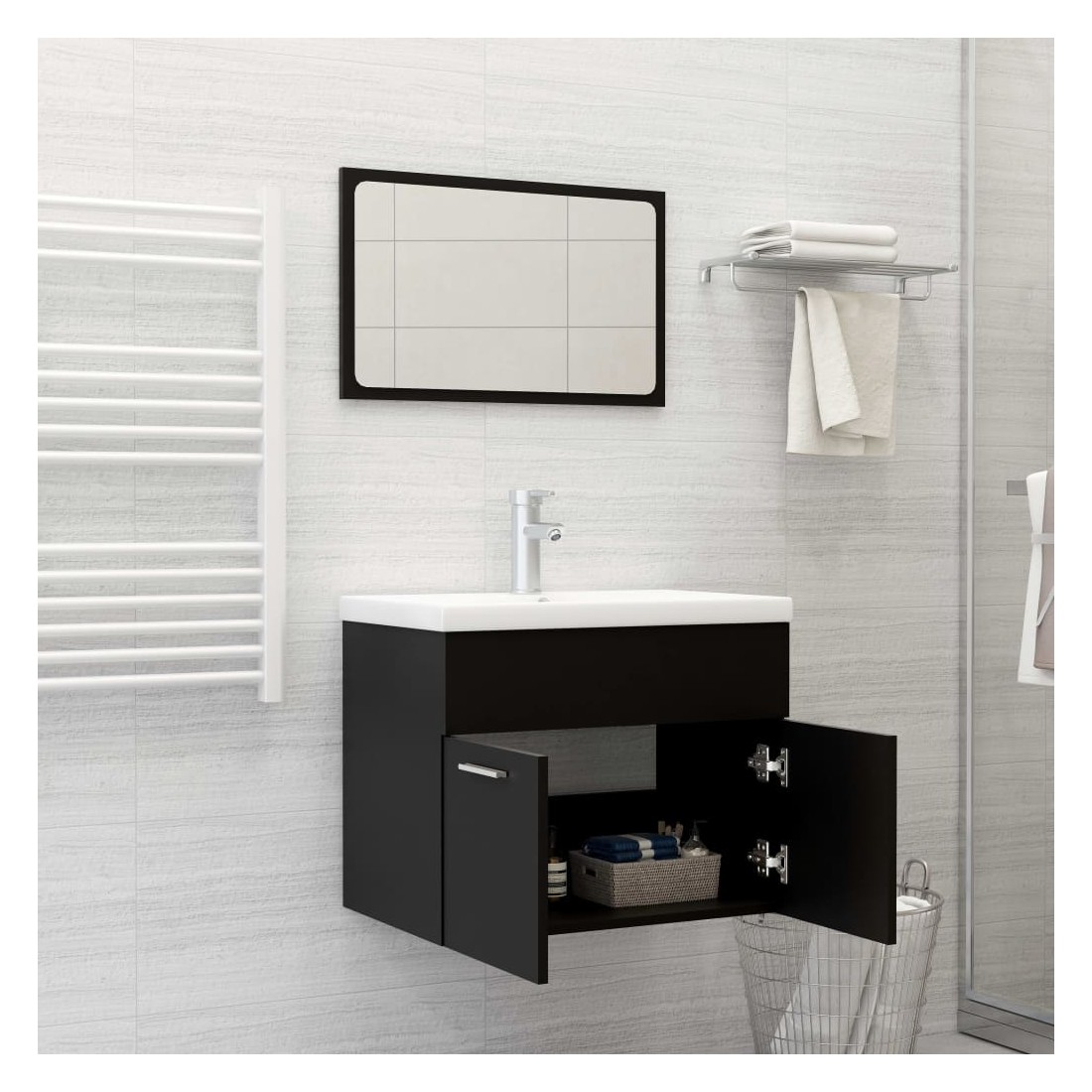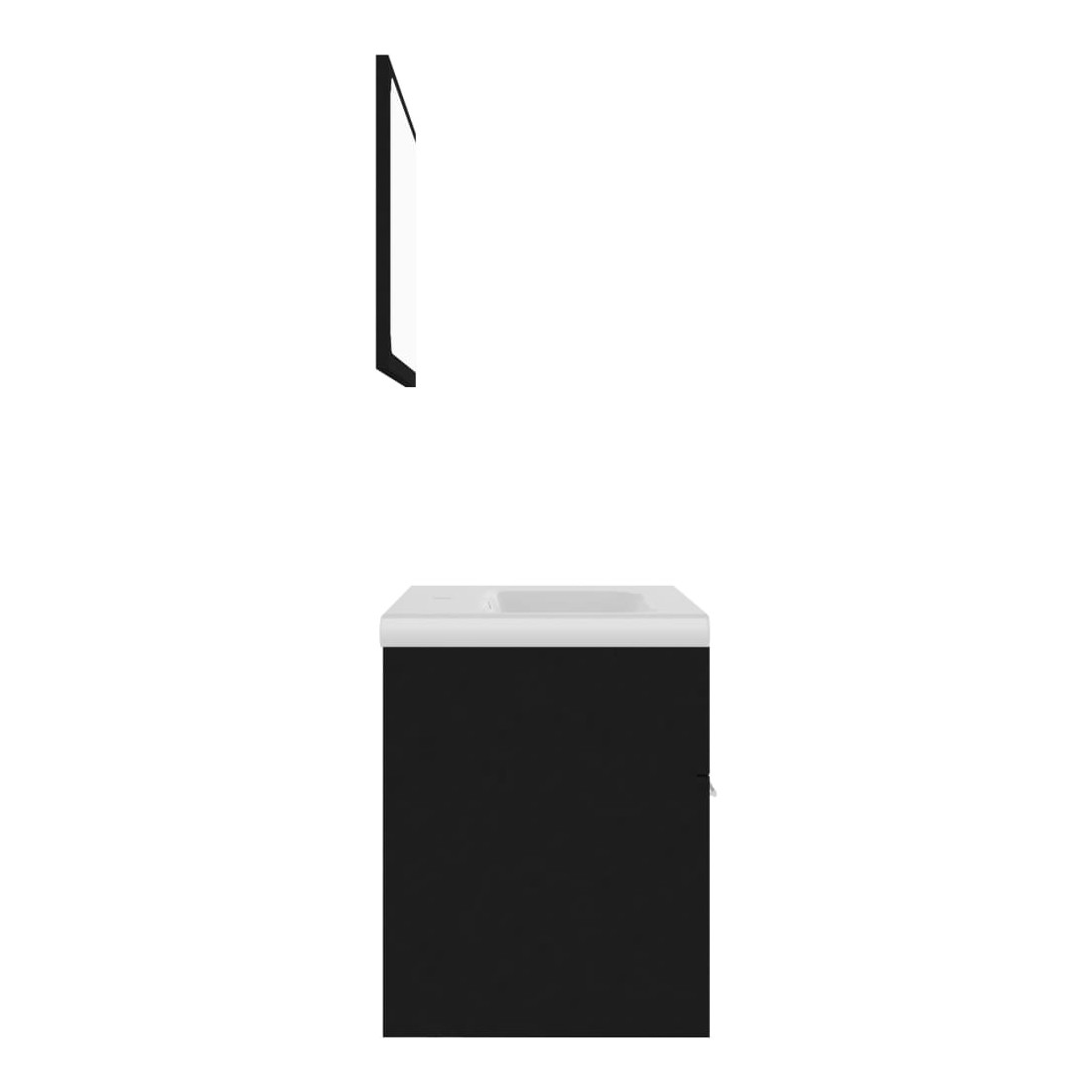 Cet ensemble de meubles de salle de bain élégant, qui se compose d'un meuble lavabo, d'un lavabo intégré et d'un miroir, s'agence parfaitement à votre salle de bain ou toilette avec un aspect saisissant et bien rangé. L'armoire d'évier est en aggloméré, ce qui la rend robuste et stable. L'armoire a 1 compartiment et 2 portes, offrant amplement d'espace pour ranger des objets. Elle s'intègre parfaitement sous l'évier et rend le rangement de la salle de bain très pratique. Fabriqué en céramique, le lavabo peut non seulement servir de récipient pour un usage quotidien, mais également d'ornement dans votre espace de vie. Grâce à son design avant-gardiste et contemporain, ce lavabo s'adaptera à n'importe quel décor. Un trop-plein est également équipé pour évacuer l'eau lorsqu'il est trop plein. Sa surface vitrée lui confère un design à la fois moderne et élégant. Le miroir ajoute également une excellente apparence à votre décoration intérieure. De plus, cet ensemble est facile à nettoyer avec un chiffon humide. Veuillez noter que le robinet et le drain ne sont pas inclus dans la livraison.