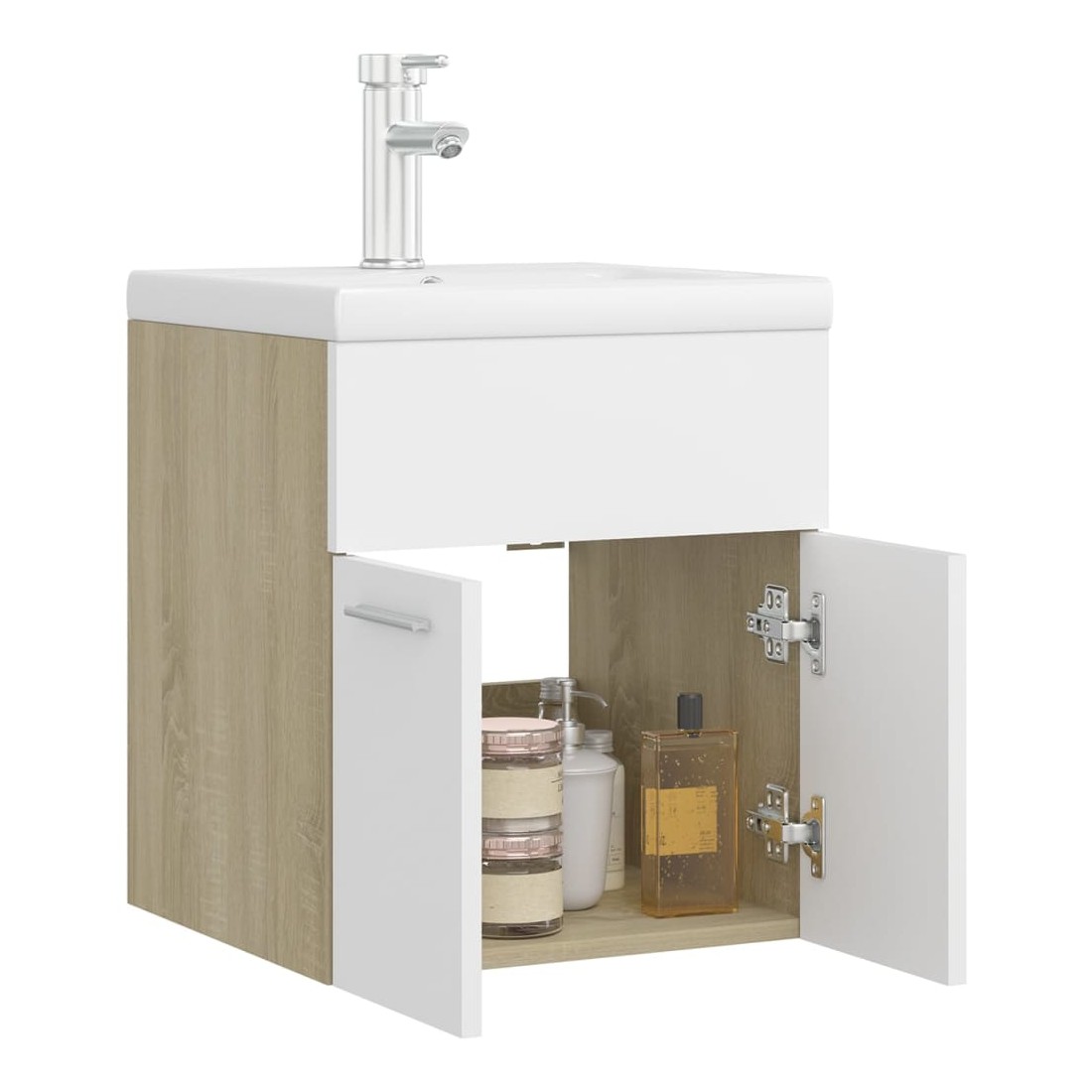 Armoire d'évier avec lavabo intégré blanc et chêne sonoma