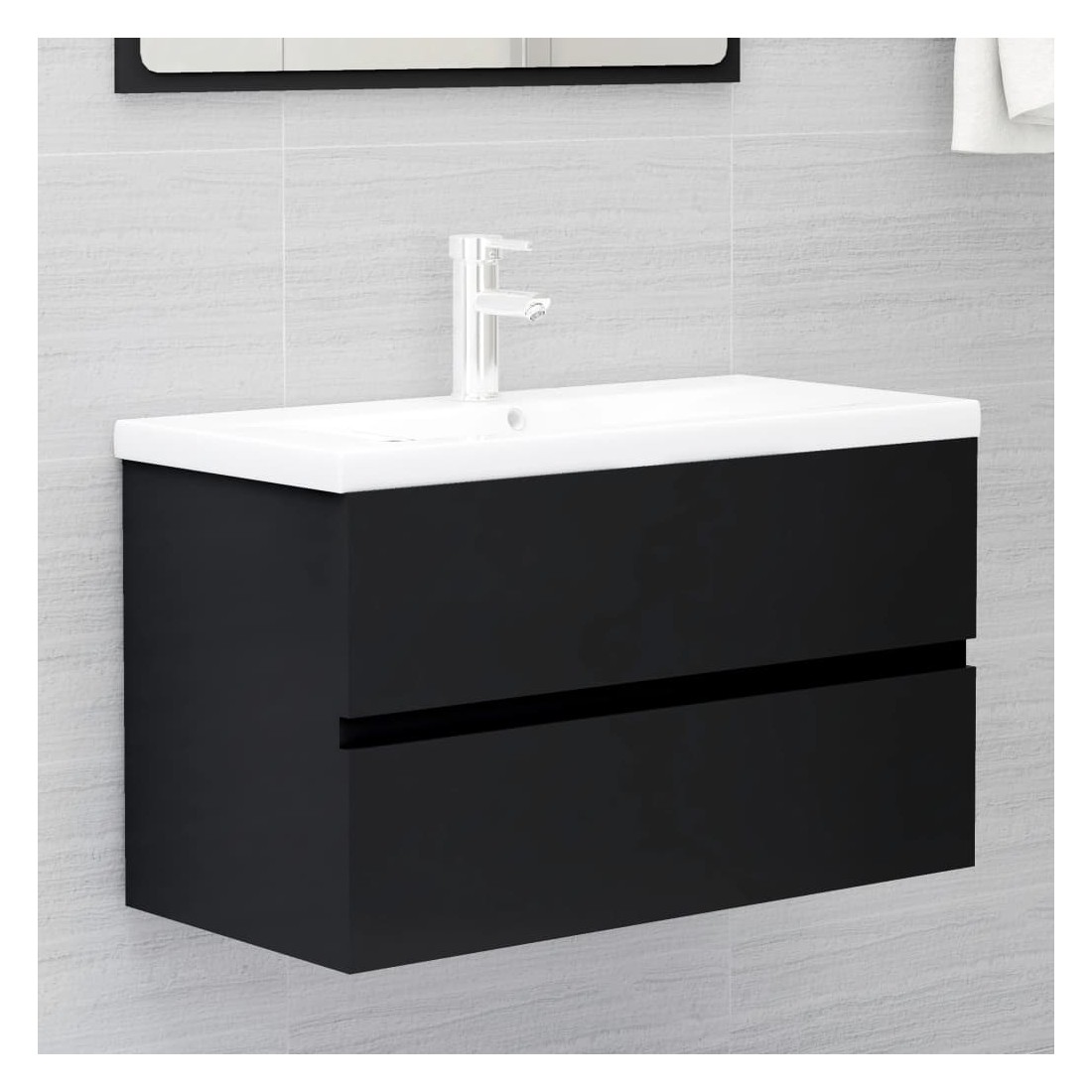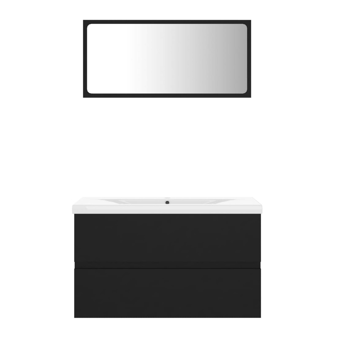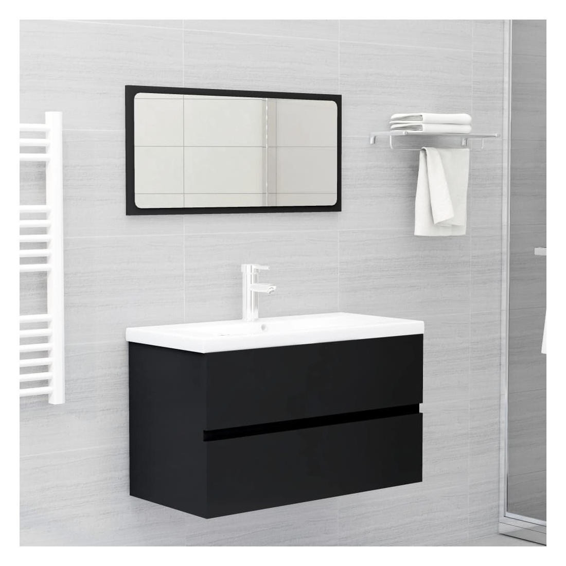 Ensemble de meubles de salle de bain noir bois d'ingénierie