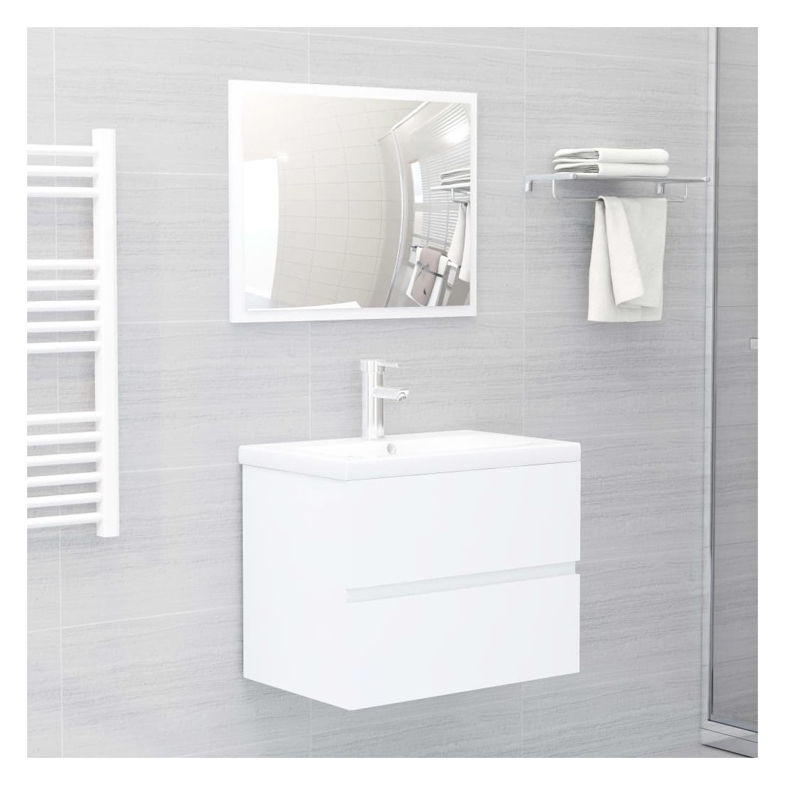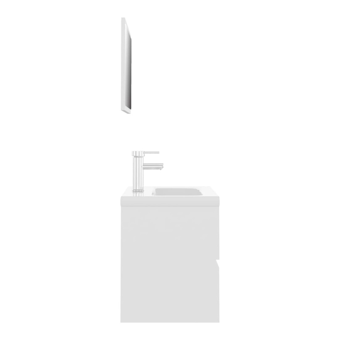 Cet ensemble de meubles de salle de bain élégant, qui se compose d'une armoire d'évier, d'un lavabo intégré et d'un miroir, s'adapte parfaitement à votre salle de bain ou à votre salle d'eau avec une apparence frappante et bien rangée. L'armoire d'évier est en bois d’ingénierie, ce qui la rend robuste et stable. L'armoire est dotée d'un tiroir, offrant un espace de rangement suffisant pour ranger les objets de votre salle de bain. Elle s'intègre parfaitement sous l'évier et rend le rangement de la salle de bain très pratique. Fabriqué en céramique, le lavabo peut non seulement servir de récipient pour un usage quotidien, mais également d'ornement dans votre espace de vie. Grâce à son design avant-gardiste et contemporain, ce lavabo s'adaptera à n'importe quel décor. Un trop-plein est également équipé pour vidanger l'eau lorsqu'il est trop plein. Sa surface vitrée lui confère un design à la fois moderne et élégant. Le miroir ajoute également une excellente apparence à votre décoration intérieure. De plus, cet ensemble est facile à nettoyer avec un chiffon humide. Remarque : le robinet et l'égouttoir avec fonction de trop-plein sont inclus dans la livraison.