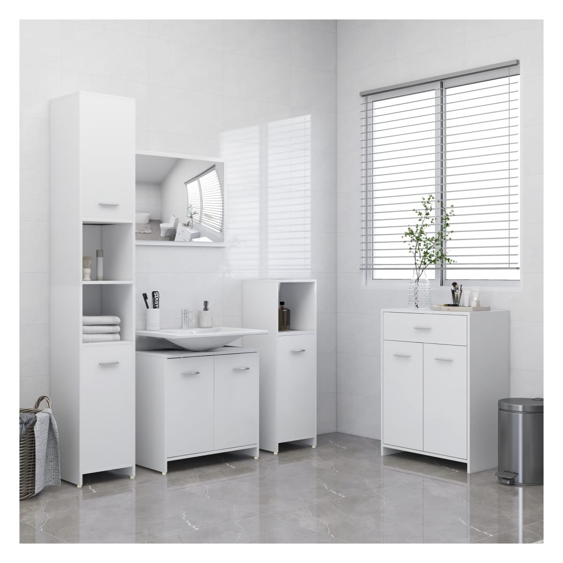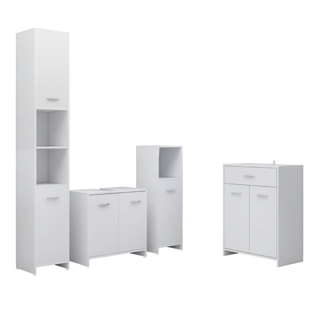 Avec cet ensemble de meubles de salle de bain de 4 pièces, vous pouvez créer un espace de rangement supplémentaire pour votre salle de bain avec un aspect remarquable et bien rangé. Les lignes épurées et le design élégant s'intègrent parfaitement à votre maison. Cet ensemble contient une armoire de salle de bain, une armoire de lavabo, une armoire de plancher et une armoire haute. Ces armoires offrent diverses options de rangement et un espace supplémentaire pour ranger des articles dans votre salle de bain. De plus, l'ensemble est facile à nettoyer avec un chiffon humide.