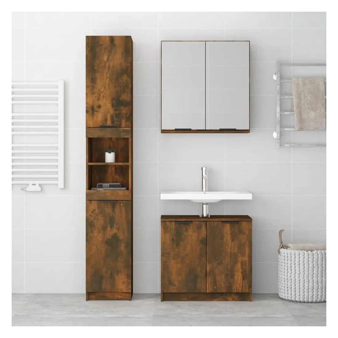 Cet ensemble d'armoires de salle de bain attrayant, avec un grand espace de rangement, présente un design élégant mais pratique. Matériau facile à nettoyer : le bois d'ingénierie est d'une qualité exceptionnelle avec une surface lisse et présente également résistance, stabilité et résistance à l'humidité. Grand espace de rangement : l'espace de rangement facilite l'organisation des articles dans ces meubles de salle de bain. Design élégant : les lignes épurées et le design élégant se fondent parfaitement dans votre salle de bain. Remarque :Les vis et les chevilles pour l'intérieur du mur ne sont pas incluses. Recherchez et utilisez des vis et des chevilles adaptées à vos murs. Si vous n'êtes pas sûr, demandez conseil à un professionnel. Lisez et suivez attentivement chaque étape des instructions. Chaque produit est livré avec un manuel de montage dans la boîte pour un montage facile. Attention :Afin d'éviter qu'il ne bascule, ce produit doit être utilisé avec le dispositif de fixation murale fourni.