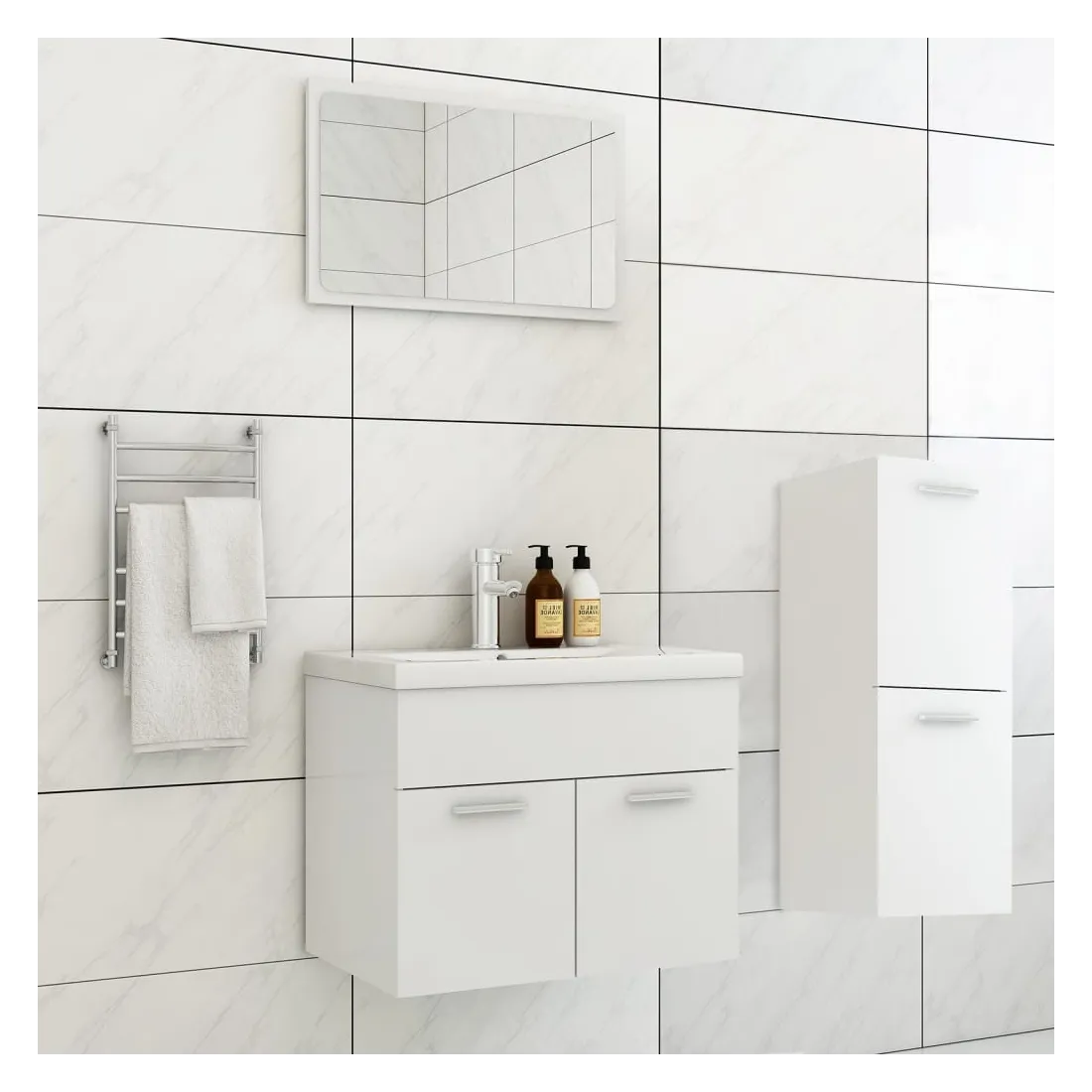 Avec cet élégant ensemble de meubles de salle de bain, vous pouvez créer un espace de rangement supplémentaire pour votre salle de bain avec un aspect remarquable et bien rangé. Les lignes épurées et le design élégant s'intègrent parfaitement à votre salle de bain. L’ensemble de meubles se compose d’une armoire de lavabo, d’une armoire basse, d’un lavabo encastré et d’un miroir. L’armoire de lavabo chic a 1 compartiment et le dessus de celle-ci est idéal pour placer l’évier. L’armoire basse comporte 2 compartiments, offrant ainsi un espace suffisant pour ranger les objets de votre salle de bain. Fabriqué en céramique, ce lavabo peut non seulement servir de récipient pour une utilisation quotidienne, mais aussi comme ornement dans votre espace de vie. Grâce à son design tendance et contemporain, ce lavabo conviendra à tout décor. Un trop-plein est équipé pour vidanger l’eau quand il est trop plein. Le miroir ajoute également une excellente apparence à votre décoration intérieure. De plus, cet ensemble de salle de bain est facile à nettoyer avec un chiffon humide. Remarque : le robinet et l'égouttoir à poussoir avec fonction de trop-plein sont inclus dans la livraison.