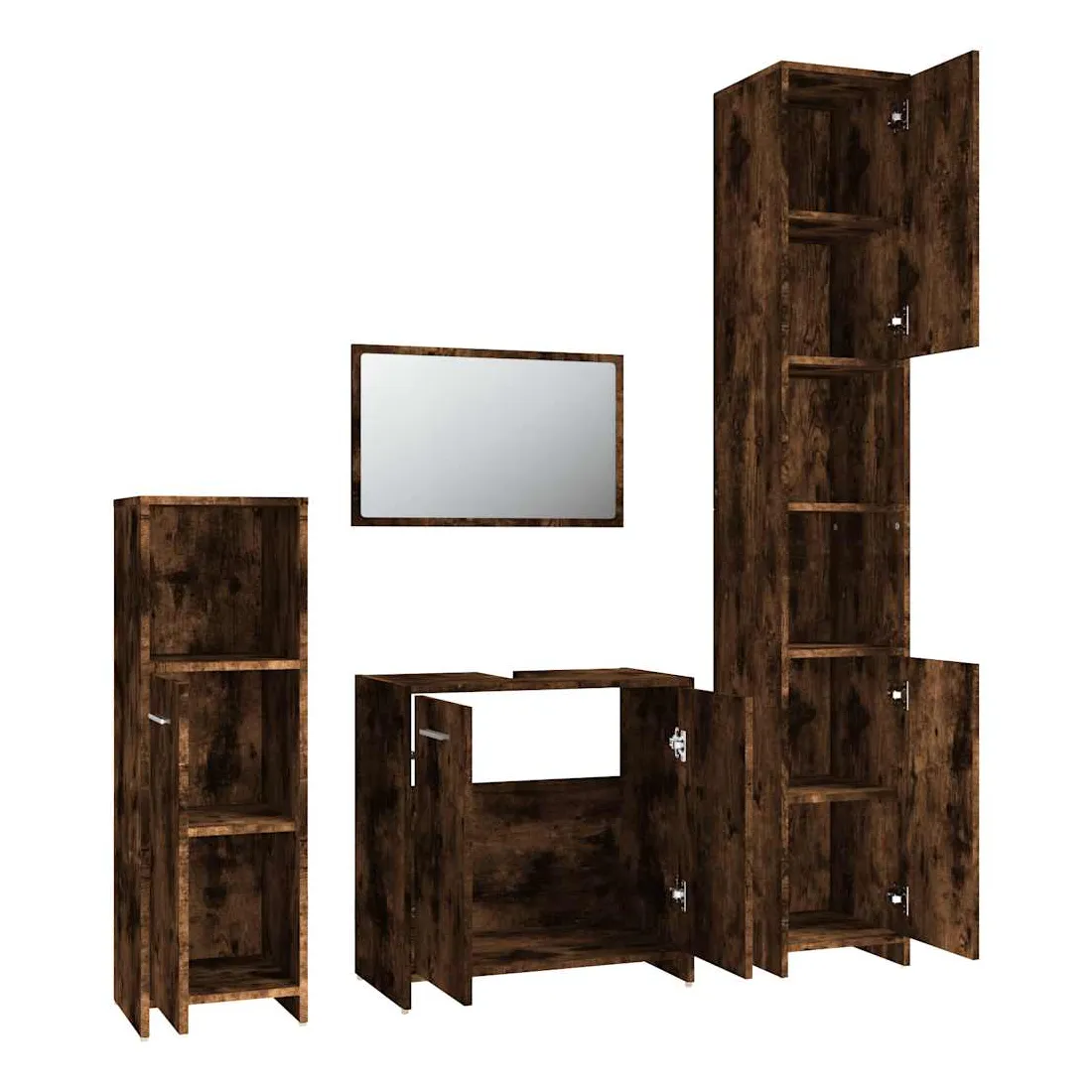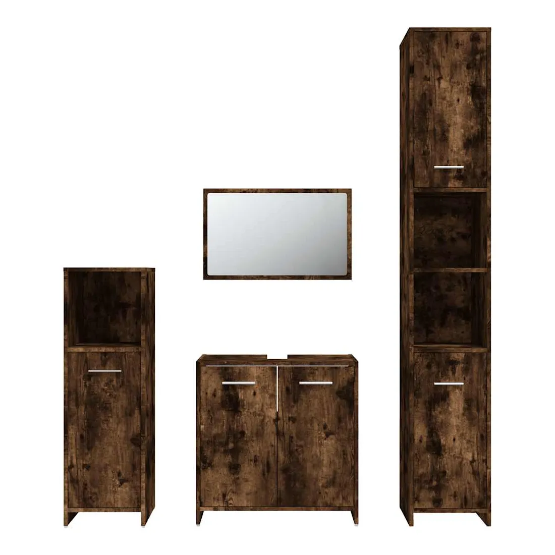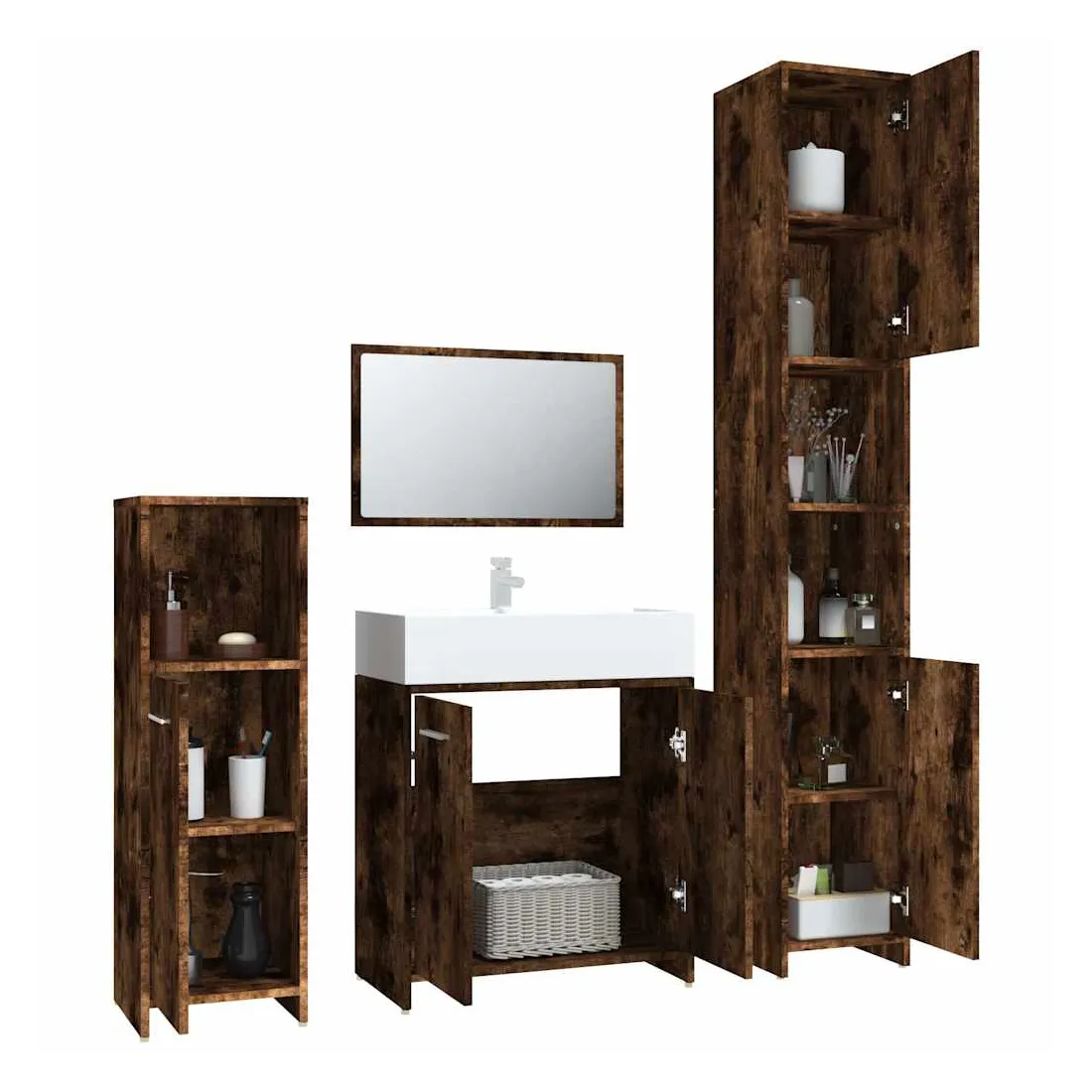 Cet ensemble de meubles de salle de bain de 4 pièces, doté d'un espace de rangement spacieux, est un supplément chic et intemporel à toute salle de bain ou toilettes. Matériau durable : le bois d'ingénierie est d'une qualité exceptionnelle avec une surface lisse et présente également résistance, stabilité et résistance à l'humidité.Grand espace de rangement : ces armoires de salle de bains offrent diverses options de rangement et un espace supplémentaire pour ranger les objets dans votre salle de bains. Design élégant : les lignes épurées et le design élégant font que ce meuble de salle de bain s'intègre parfaitement dans votre salle de bain. Le miroir ajoute également une excellente apparence à votre décor intérieur. Poignées pratiques : il y a une poignée sur chaque porte pour une meilleure ouverture et fermeture. Surface facile à nettoyer : l'unité d'évier de salle de bain est facile à nettoyer avec un chiffon humide. Attention :Afin d'éviter qu'il ne bascule, ce produit doit être utilisé avec le dispositif de fixation murale fourni. Remarque :Chaque produit est livré avec un manuel de montage dans la boîte pour un montage facile.Les vis et les chevilles pour l'intérieur du mur ne sont pas incluses. Recherchez et utilisez des vis et des chevilles adaptées à vos murs. Si vous n'êtes pas sûr, demandez conseil à un professionnel. Lisez et suivez attentivement chaque étape des instructions.Le panneau latéral de l'armoire haute se compose de deux parties connectées.