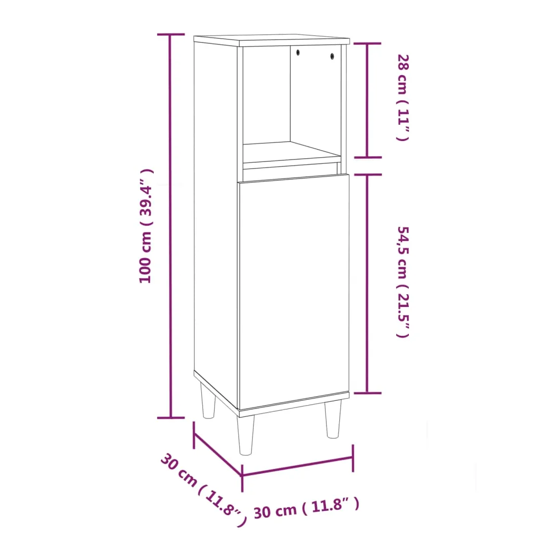 - Dimensions de l'armoire sur pied (S) : 30 x 30 x 100 cm (l x P x H)