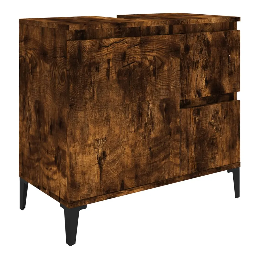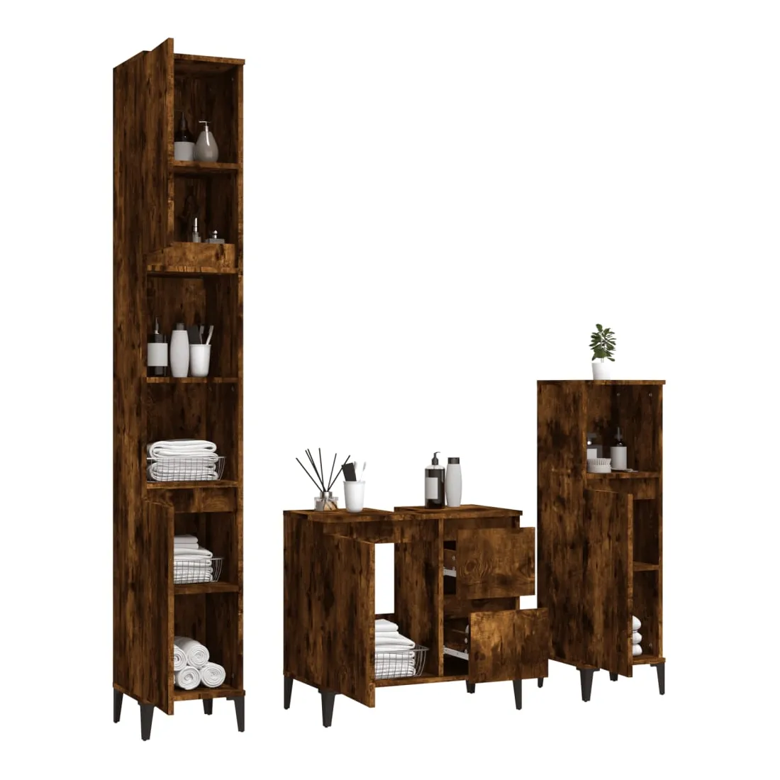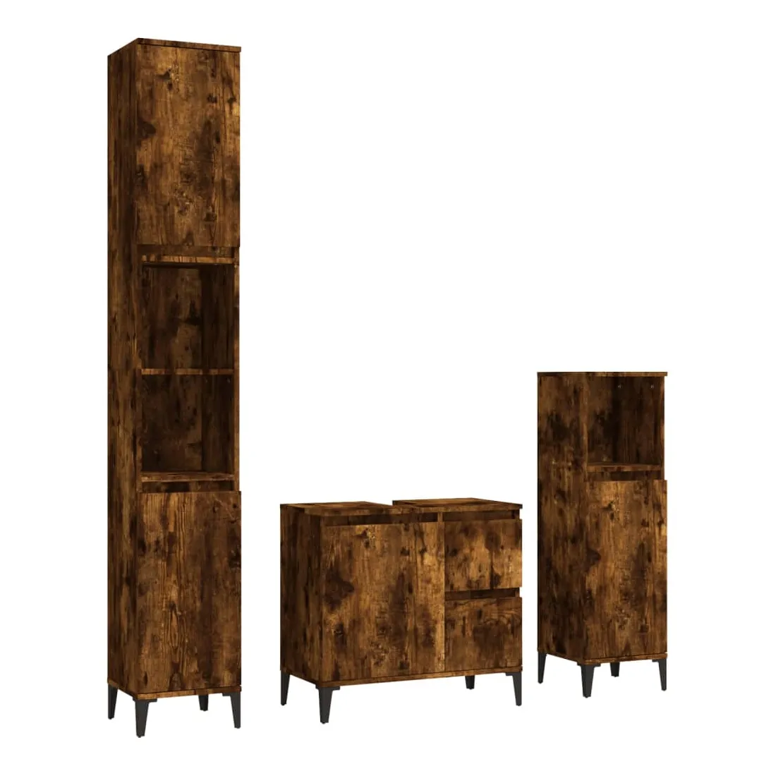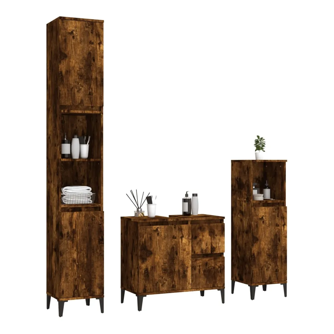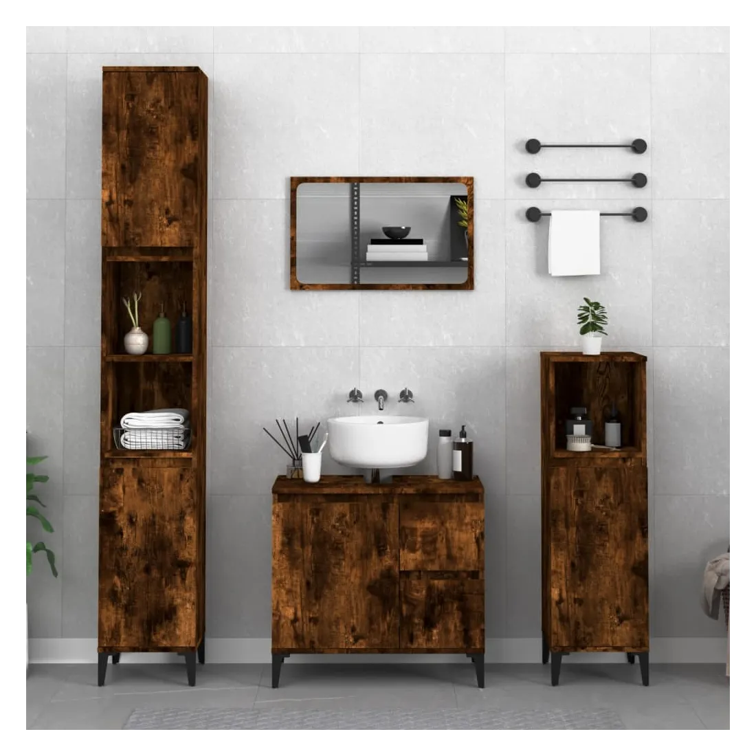 Cet ensemble d'armoires de salle de bain attrayant, avec un grand espace de rangement, présente un design élégant mais pratique. Matériau durable : le bois d'ingénierie est d'une qualité exceptionnelle avec une surface lisse et présente également résistance, stabilité et résistance à l'humidité. Grand espace de rangement : l'espace de rangement facilite l'organisation des articles dans ces meubles de salle de bain. Pieds en métal : les pieds en métal ajoutent un style moderne et calme à votre intérieur tout en assurant la stabilité.Surface facile à nettoyer : l'ensemble de salle de bain est facile à nettoyer avec un chiffon humide.Design élégant : les lignes épurées et le design élégant se fondent parfaitement dans votre salle de bain. Attention :Pour éviter qu'il ne soit renversé, ce produit doit être utilisé avec le dispositif de fixation au mur fourni. Bon à savoir :Les vis et les chevilles pour l'intérieur du mur ne sont pas incluses. Nous vous conseillons de trouver et d'utiliser des vis et des chevilles adaptées spécifiquement à vos murs. Si vous n'êtes pas sûr, vous pouvez consulter un professionnel. Veuillez lire et suivre chaque étape des instructions.