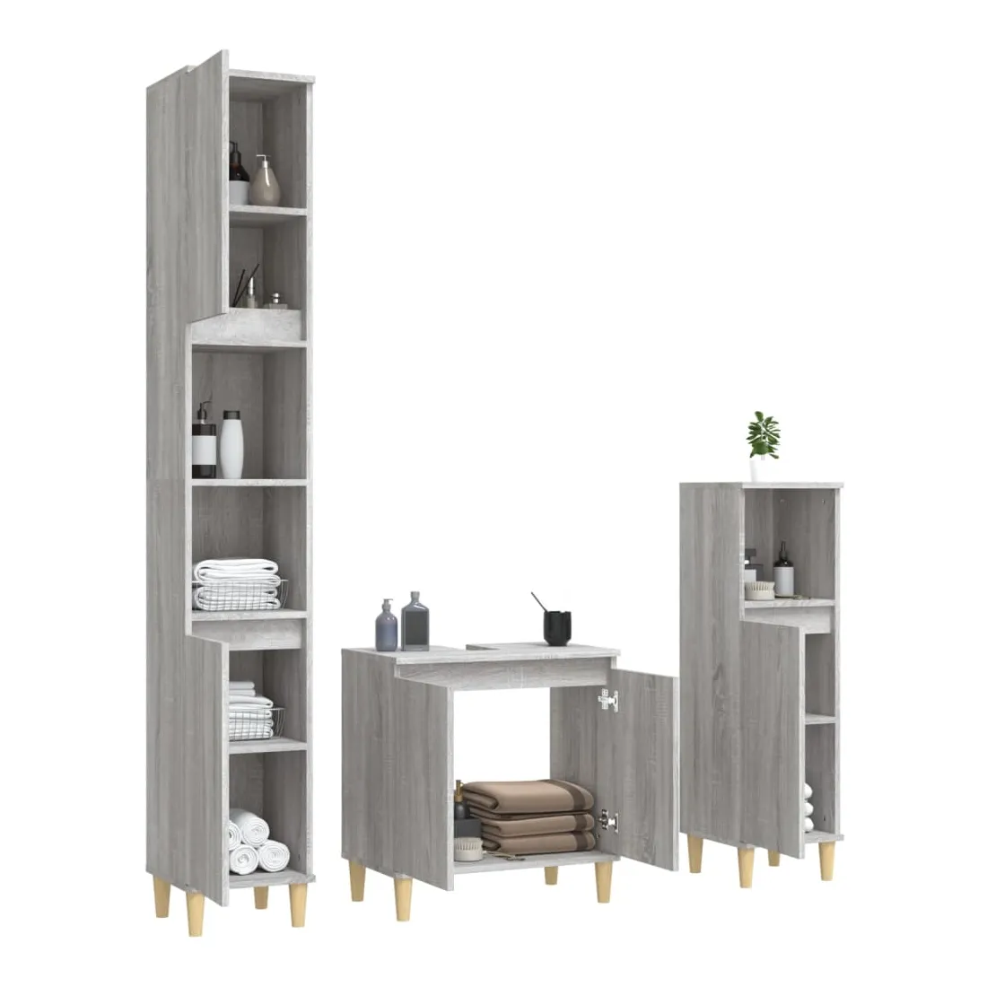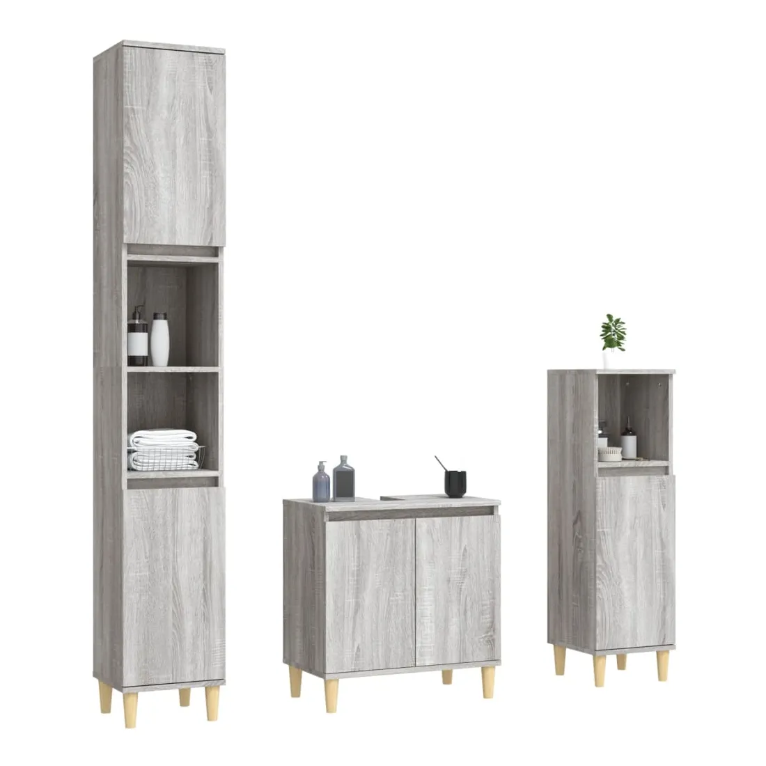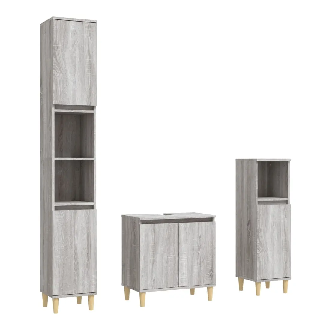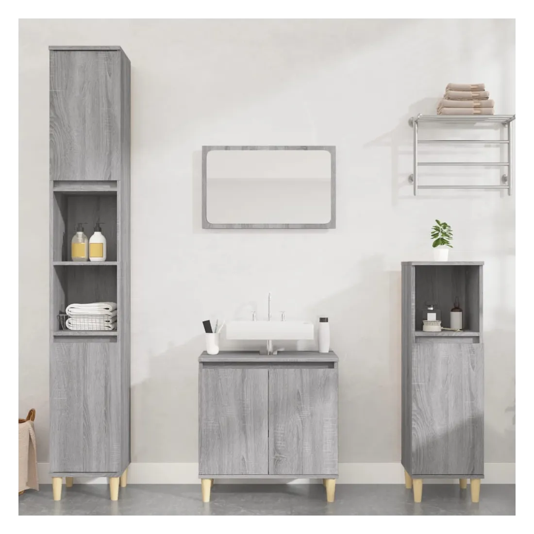 Cet ensemble de meubles de salle de bain, avec un espace de rangement spacieux, est un excellent supplément à votre salle de bain, ce qui lui donne une apparence ordonnée et saisissante ! Matériau durable : le bois d'ingénierie est d'une qualité exceptionnelle avec une surface lisse et présente également résistance, stabilité et résistance à l'humidité.Grand espace de rangement : ces armoires de salle de bain offrent un grand espace de rangement pour garder vos fournitures de salle de bain bien organisées.Pieds en bois : les pieds en bois d'eucalyptus massif donnent au meuble de salle de bain un aspect naturel et agréable tout en assurant la stabilité.Surface facile à nettoyer : l'ensemble de salle de bain est facile à nettoyer avec un chiffon humide.Design élégant : les lignes épurées et le design élégant se fondent parfaitement dans votre salle de bain. Attention :Pour éviter qu'il ne soit renversé, ce produit doit être utilisé avec le dispositif de fixation au mur fourni. Bon à savoir :Les vis et les chevilles pour l'intérieur du mur ne sont pas incluses. Nous vous conseillons de trouver et d'utiliser des vis et des chevilles adaptées spécifiquement à vos murs. Si vous n'êtes pas sûr, vous pouvez consulter un professionnel. Veuillez lire et suivre chaque étape des instructions.