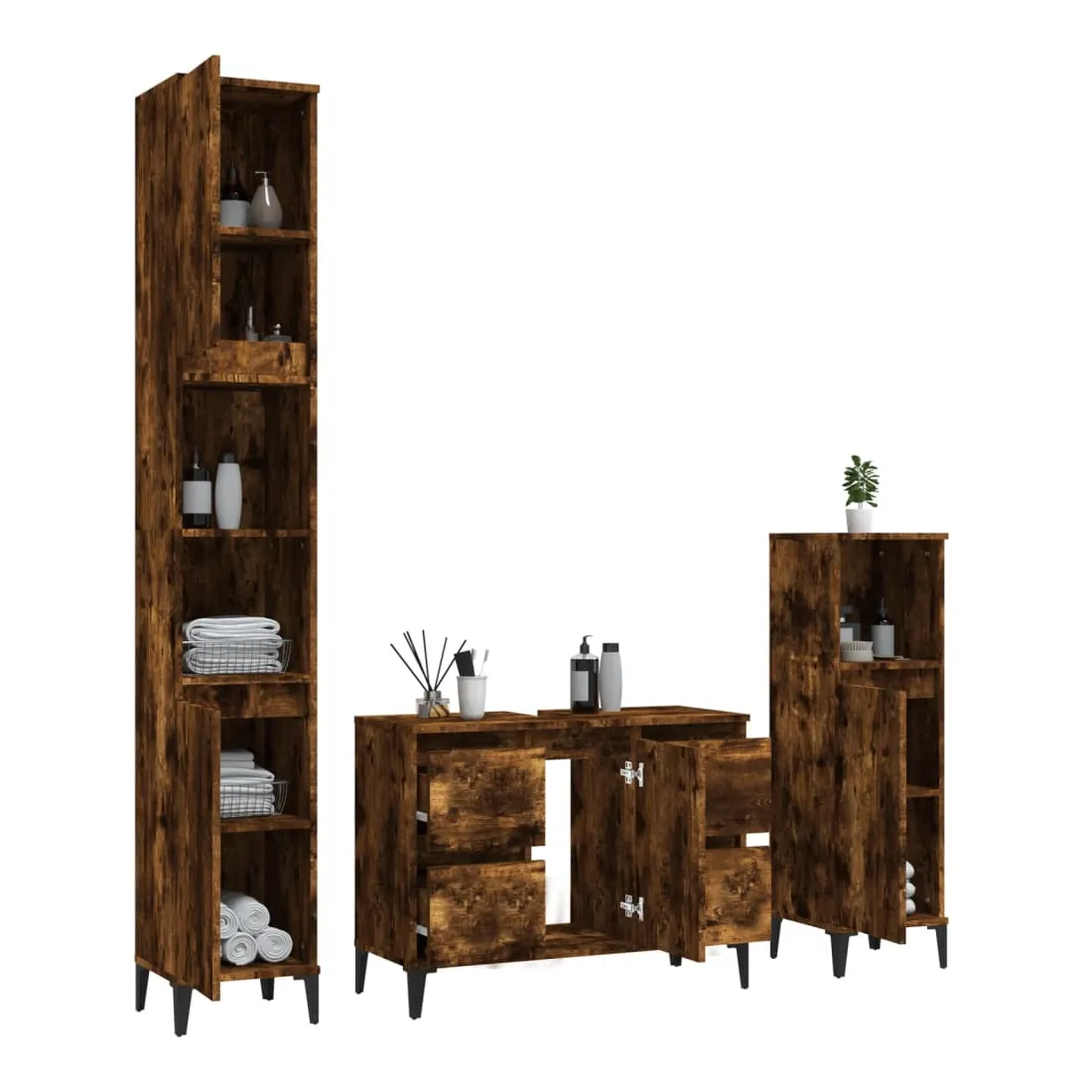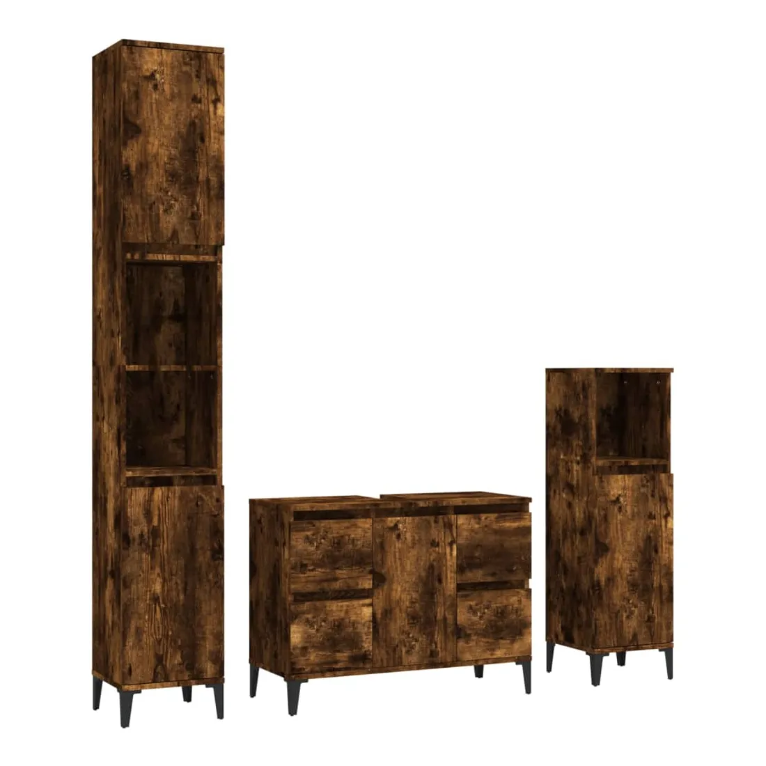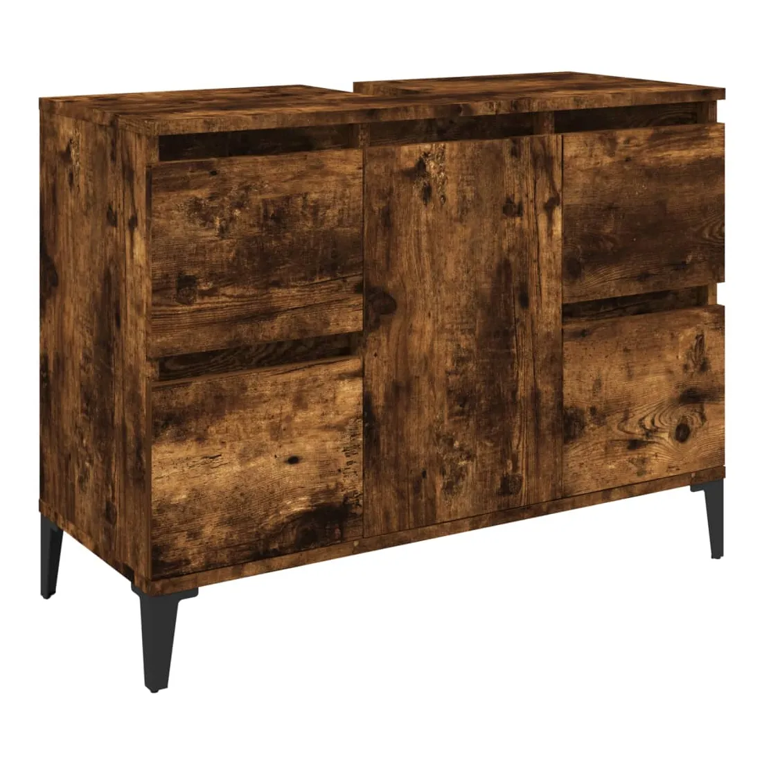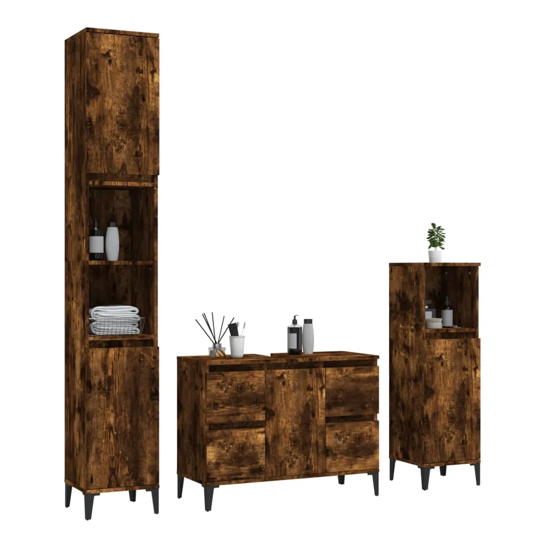 Cet ensemble de meubles de salle de bain, avec un espace de rangement spacieux, est un excellent supplément à votre salle de bain, ce qui lui donne une apparence ordonnée et saisissante ! Matériau durable : le bois d'ingénierie est d'une qualité exceptionnelle avec une surface lisse et présente également résistance, stabilité et résistance à l'humidité.Grand espace de rangement : ces armoires de salle de bain offrent un grand espace de rangement pour garder vos fournitures de salle de bain bien organisées.Pieds en métal : les pieds en métal ajoutent un style moderne et calme à votre intérieur tout en assurant la stabilité.Surface facile à nettoyer : l'ensemble de salle de bain est facile à nettoyer avec un chiffon humide.Design élégant : les lignes épurées et le design élégant se fondent parfaitement dans votre salle de bain. Attention :Pour éviter qu'il ne soit renversé, ce produit doit être utilisé avec le dispositif de fixation au mur fourni. Bon à savoir :Les vis et les chevilles pour l'intérieur du mur ne sont pas incluses. Nous vous conseillons de trouver et d'utiliser des vis et des chevilles adaptées spécifiquement à vos murs. Si vous n'êtes pas sûr, vous pouvez consulter un professionnel. Veuillez lire et suivre chaque étape des instructions.