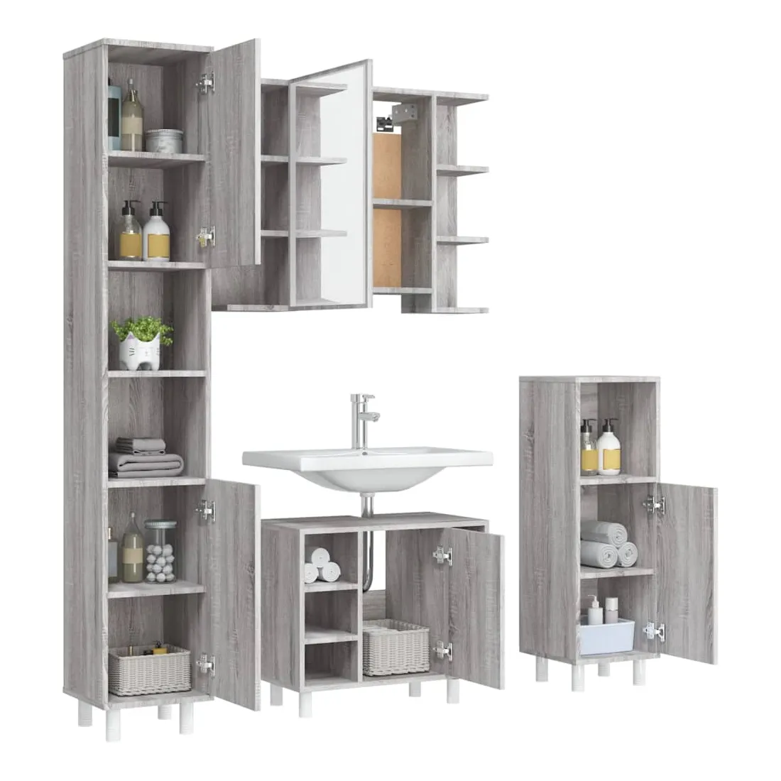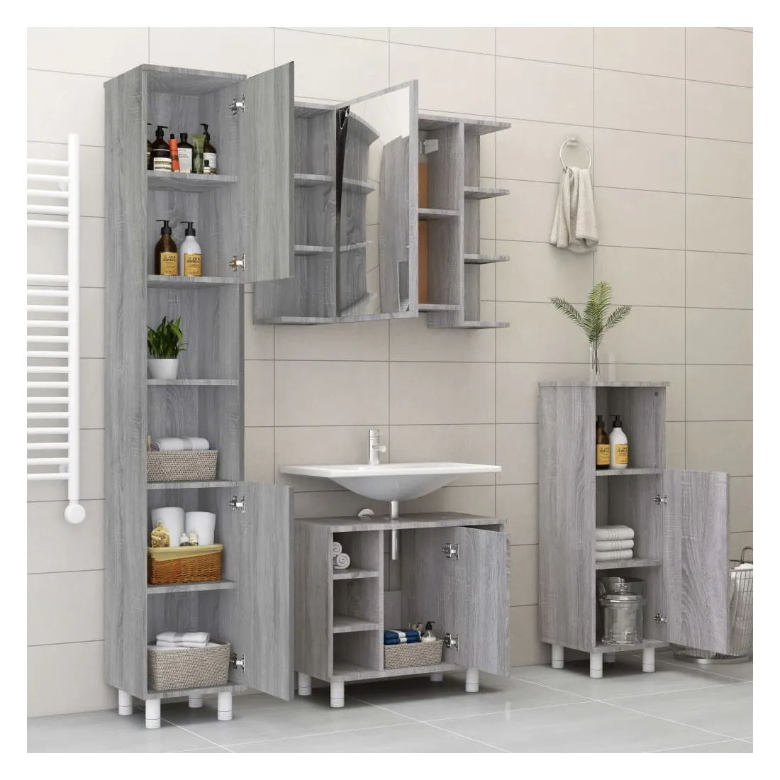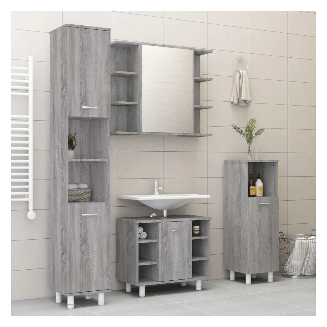 Cet ensemble d'armoires de salle de bain attrayant, avec un grand espace de rangement, présente un design élégant mais pratique. Matériau facile à nettoyer : le bois d'ingénierie est d'une qualité exceptionnelle avec une surface lisse et présente également résistance, stabilité et résistance à l'humidité. Grand espace de rangement : l'espace de rangement facilite l'organisation des articles dans ces meubles de salle de bain. Design élégant : les lignes épurées et le design élégant se fondent parfaitement dans votre salle de bain. Attention :Pour éviter qu'il ne soit renversé, ce produit doit être utilisé avec le dispositif de fixation au mur fourni. Bon à savoir :Les vis et les chevilles pour l'intérieur du mur ne sont pas incluses. Nous vous conseillons de trouver et d'utiliser des vis et des chevilles adaptées spécifiquement à vos murs. Si vous n'êtes pas sûr, vous pouvez consulter un professionnel. Veuillez lire et suivre chaque étape des instructions. Pour faciliter au maximum le montage, chaque produit est livré avec des instructions.