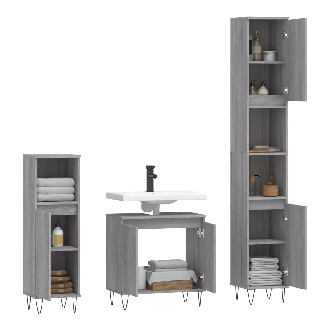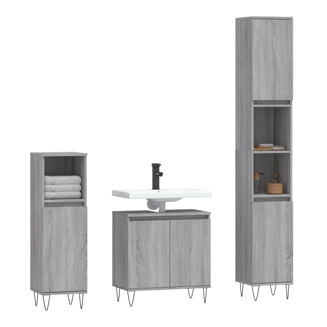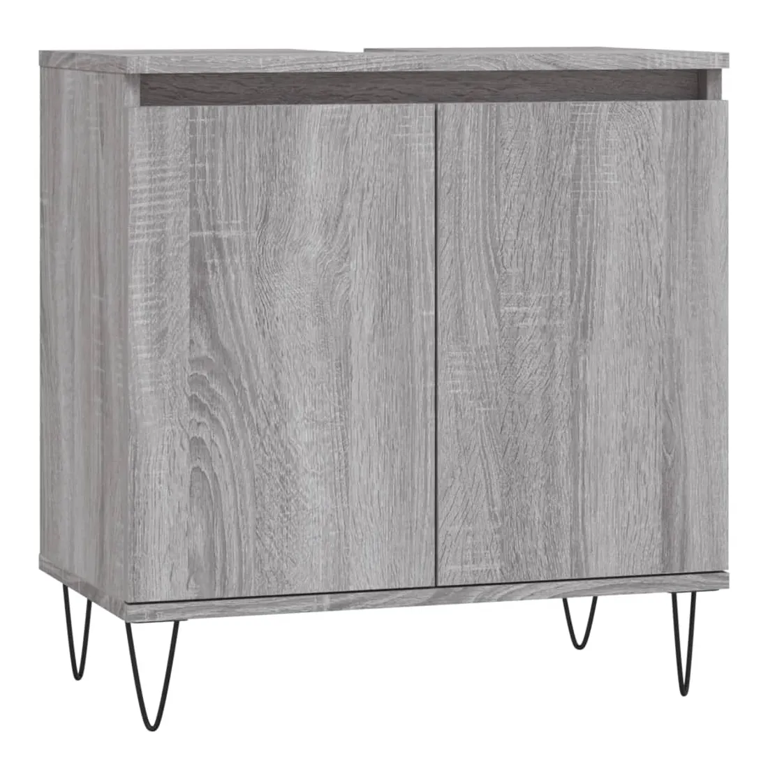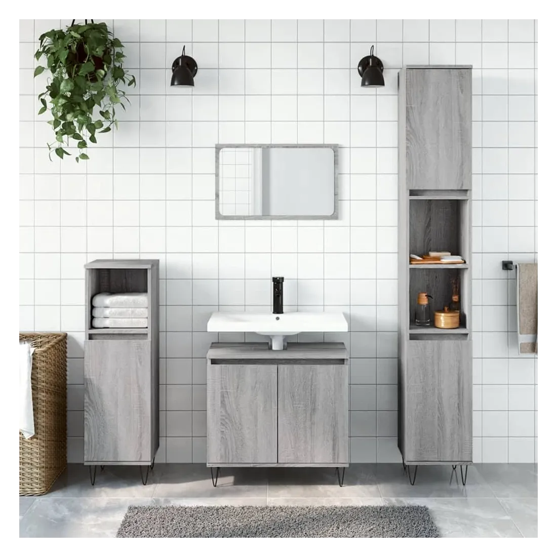 Cet ensemble d'armoires de salle de bain attrayant, avec un grand espace de rangement, présente un design élégant mais pratique. Matériau durable : le bois d'ingénierie est d'une qualité exceptionnelle avec une surface lisse et présente également résistance, stabilité et résistance à l'humidité. Grand espace de rangement : l'espace de rangement facilite l'organisation des articles dans ces meubles de salle de bain. Pieds en métal : les pieds en métal ajoutent un style moderne et calme à votre intérieur tout en assurant la stabilité.Surface facile à nettoyer : l'ensemble de salle de bain est facile à nettoyer avec un chiffon humide. Attention :Pour éviter qu'il ne soit renversé, ce produit doit être utilisé avec le dispositif de fixation au mur fourni. Bon à savoir :Les vis et les chevilles pour l'intérieur du mur ne sont pas incluses. Nous vous conseillons de trouver et d'utiliser des vis et des chevilles adaptées spécifiquement à vos murs. Si vous n'êtes pas sûr, vous pouvez consulter un professionnel. Veuillez lire et suivre chaque étape des instructions.Le lavabo n'est pas inclus dans la livraison.