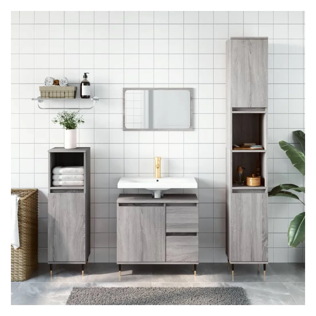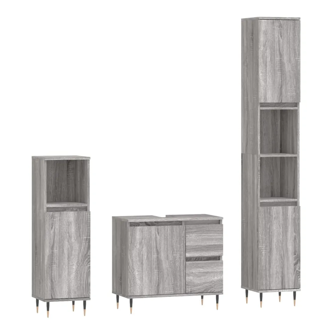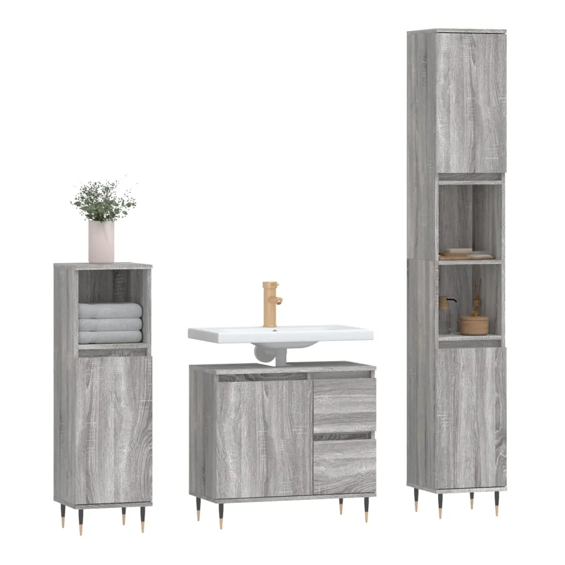Ensemble de meubles de salle de bain 3 pcs Sonoma gris