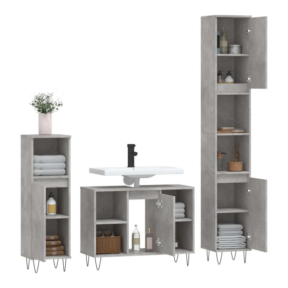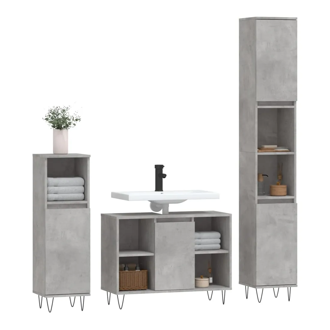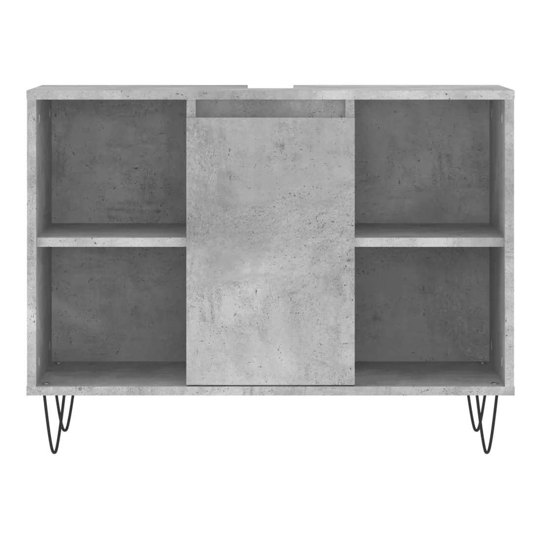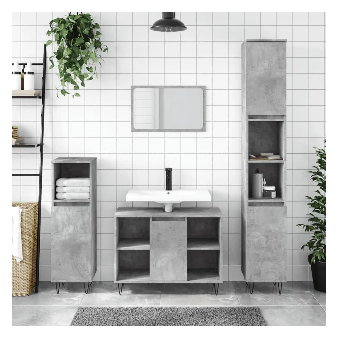 Cet ensemble de meubles de salle de bain tendance est un excellent supplément à votre salle de bain, ce qui lui donne une apparence ordonnée et saisissante ! Matériau durable : le bois d'ingénierie est d'une qualité exceptionnelle avec une surface lisse et présente également résistance, stabilité et résistance à l'humidité. Pieds en fer : les pieds en fer ajoutent un style moderne et calme à votre intérieur tout en assurant la stabilité.Grand espace de rangement : l'armoire de salle de bain offre diverses options de rangement et un espace spacieux pour ranger des articles dans votre salle de bain. Design pratique : le dessus du meuble-lavabo de salle de bain est idéal pour placer le lavabo. Attention :Pour éviter qu'il ne soit renversé, ce produit doit être utilisé avec le dispositif de fixation au mur fourni. Bon à savoir :Le lavabo n'est pas inclus dans la livraison.Les vis et les chevilles pour l'intérieur du mur ne sont pas incluses. Nous vous conseillons de trouver et d'utiliser des vis et des chevilles adaptées spécifiquement à vos murs. Si vous n'êtes pas sûr, vous pouvez consulter un professionnel. Veuillez lire et suivre chaque étape des instructions.