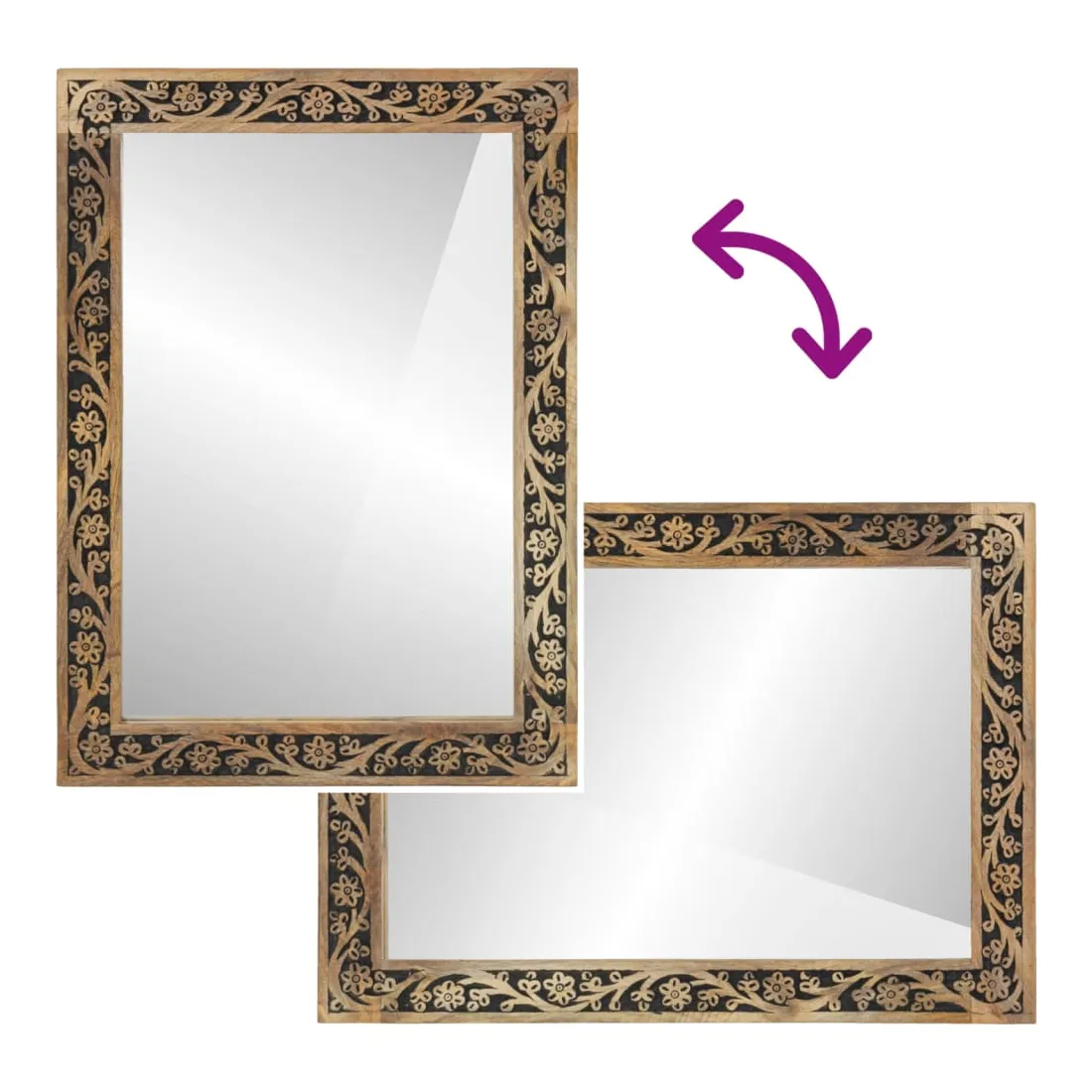 - Matériau : bois de manguier massif avec une finition naturelle, verre