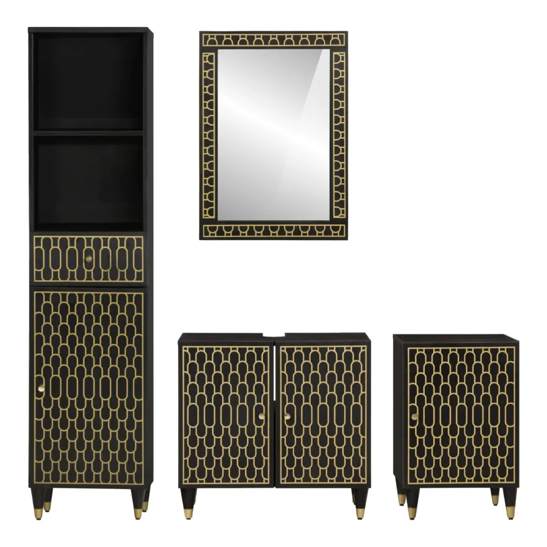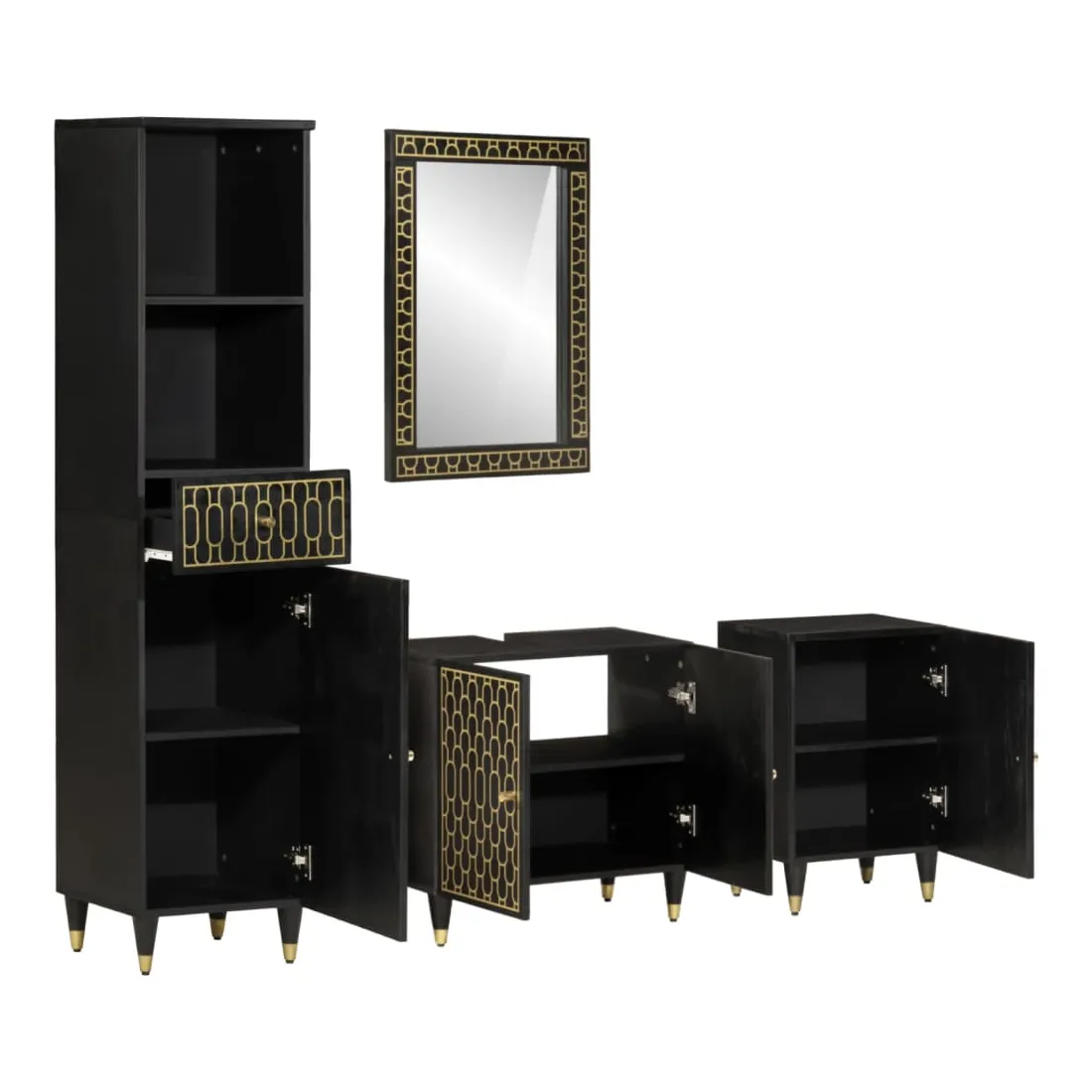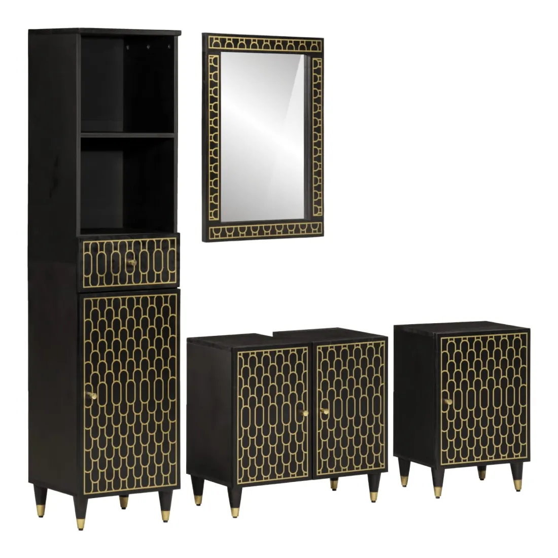 Cet ensemble de meubles de salle de bain pratique, avec un espace de rangement spacieux, est un excellent supplément à votre salle de bain, ce qui lui donne une apparence ordonnée et saisissante ! Bois de manguier massif : le bois de manguier massif est un bois dur tropical solide qui fait des meubles robustes. Ses beaux grains de bois rendent chaque meuble légèrement différent l'un de l'autre. Grand espace de rangement : les meubles de salle de bain en bois offrent diverses options de rangement et un espace spacieux pour ranger des objets dans votre salle de bain. Design peu encombrant : le miroir de courtoisie peut être facilement fixé au mur pour économiser de l'espace au sol. Le haut de l'armoire de toilette est idéal pour placer l'évier, ce qui permet d'utiliser pleinement l'espace libre sous l'évier. Image claire : la face en verre du miroir offre une réflexion fine et non déformée. Il convient donc pour se maquiller, se raser ou vérifier son costume avant de sortir. Attention :Pour éviter qu'il ne bascule, ce produit doit être utilisé avec le dispositif de fixation murale fourni. Bon à savoir :Chaque article est unique, avec des variations de couleurs et de grains. La livraison est aléatoire, ce qui garantit l'exclusivité et l'individualité de votre produit. Les vis et les chevilles pour l'intérieur du mur ne sont pas incluses. Nous vous conseillons de trouver et d'utiliser des vis et des chevilles adaptées spécifiquement à vos murs. Si vous n'êtes pas sûr, vous pouvez consulter un professionnel. Veuillez lire et suivre chaque étape des instructions.