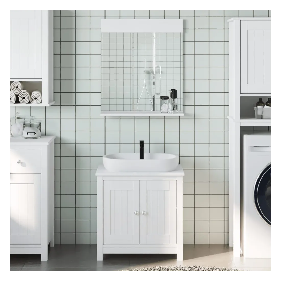 vidaXLCet ensemble de meubles de salle de bain pratique, avec un espace de rangement spacieux, est un excellent supplément à votre salle de bain, ce qui lui donne une apparence ordonnée et saisissante ! Bois de pin massif : le bois de pin massif est un matériau naturel magnifique. Le bois de pin a un grain droit et les nœuds donnent au matériau son aspect caractéristique et rustique.Grand espace de rangement : les meubles de salle de bain en bois offrent diverses options de rangement et un espace spacieux pour ranger des objets dans votre salle de bain.Design peu encombrant : le miroir de courtoisie peut être facilement fixé au mur pour économiser de l'espace au sol. Le haut de l'armoire de toilette est idéal pour placer l'évier, ce qui permet d'utiliser pleinement l'espace libre sous l'évier.Image claire : la face en verre du miroir offre une réflexion fine et non déformée. Il convient donc pour se maquiller, se raser ou vérifier son costume avant de sortir.Facile à nettoyer : le design peint aux UV apporte une surface lisse et facilite le nettoyage. Le meuble de salle de bain est résistant à l'eau, ce qui lui assure des années d'utilisation. Attention :Pour éviter qu'il ne soit renversé, ce produit doit être utilisé avec le dispositif de fixation murale (non fourni). Bon à savoir :Les vis et les chevilles pour l'intérieur du mur ne sont pas incluses. Nous vous conseillons de trouver et d'utiliser des vis et des chevilles adaptées spécifiquement à vos murs. Si vous n'êtes pas sûr, vous pouvez consulter un professionnel. Veuillez lire et suivre chaque étape des instructions.