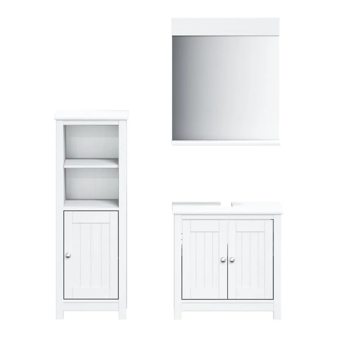 vidaXLCet ensemble de meubles de salle de bain pratique, avec un espace de rangement spacieux, est un excellent supplément à votre salle de bain, ce qui lui donne une apparence ordonnée et saisissante ! Bois de pin massif : le bois de pin massif est un matériau naturel magnifique. Le bois de pin a un grain droit et les nœuds donnent au matériau son aspect caractéristique et rustique.Grand espace de rangement : les meubles de salle de bain en bois offrent diverses options de rangement et un espace spacieux pour ranger des objets dans votre salle de bain.Design peu encombrant : le miroir de courtoisie peut être facilement fixé au mur pour économiser de l'espace au sol. Le haut de l'armoire de toilette est idéal pour placer l'évier, ce qui permet d'utiliser pleinement l'espace libre sous l'évier.Image claire : la face en verre du miroir offre une réflexion fine et non déformée. Il convient donc pour se maquiller, se raser ou vérifier son costume avant de sortir.Facile à nettoyer : le design peint aux UV apporte une surface lisse et facilite le nettoyage. Le meuble de salle de bain est résistant à l'eau, ce qui lui assure des années d'utilisation. Attention :Pour éviter qu'il ne soit renversé, ce produit doit être utilisé avec le dispositif de fixation murale (non fourni). Bon à savoir :Les vis et les chevilles pour l'intérieur du mur ne sont pas incluses. Nous vous conseillons de trouver et d'utiliser des vis et des chevilles adaptées spécifiquement à vos murs. Si vous n'êtes pas sûr, vous pouvez consulter un professionnel. Veuillez lire et suivre chaque étape des instructions.