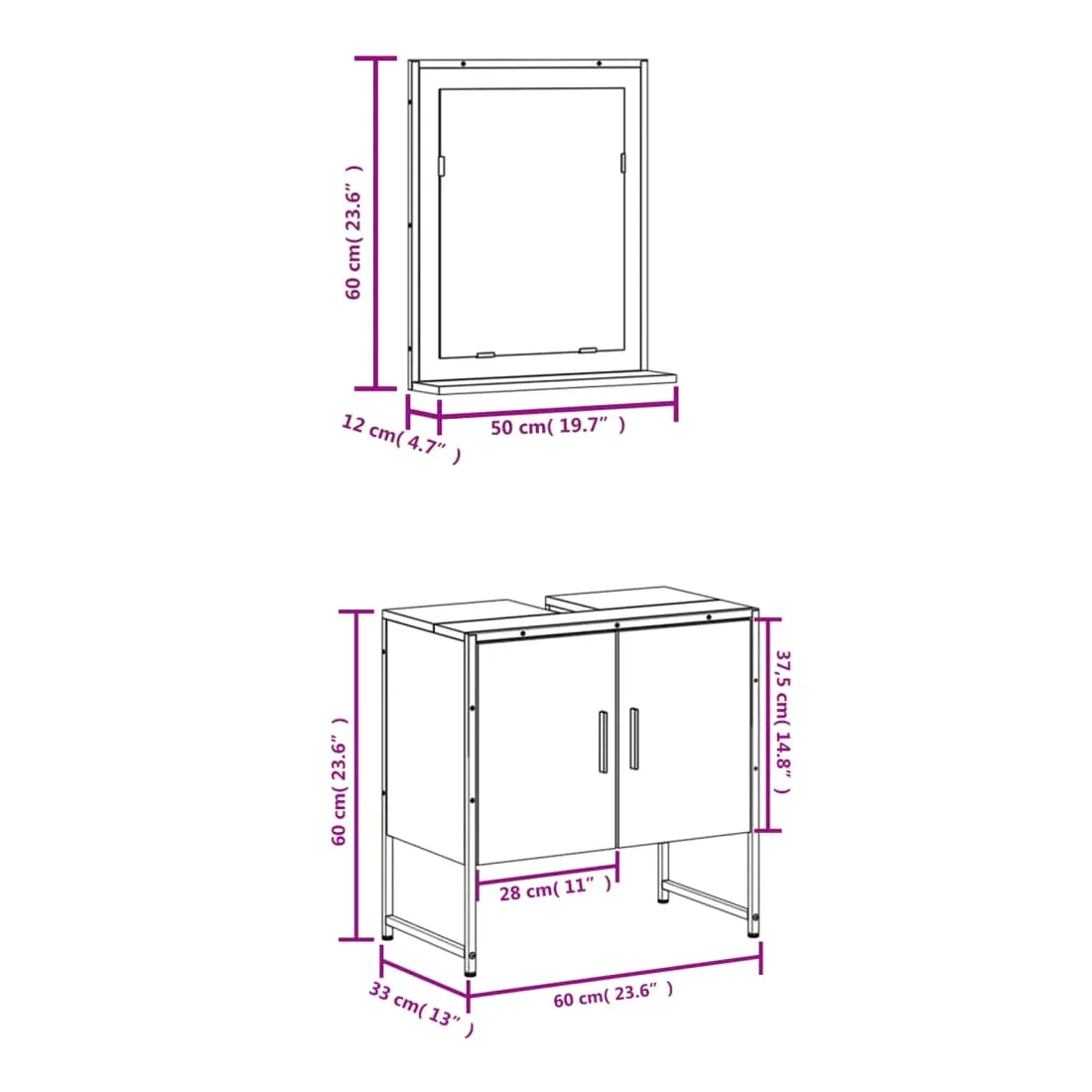 - Dimensions de l'armoire de lavabo : 60 x 33 x 60 cm (L x l x H)