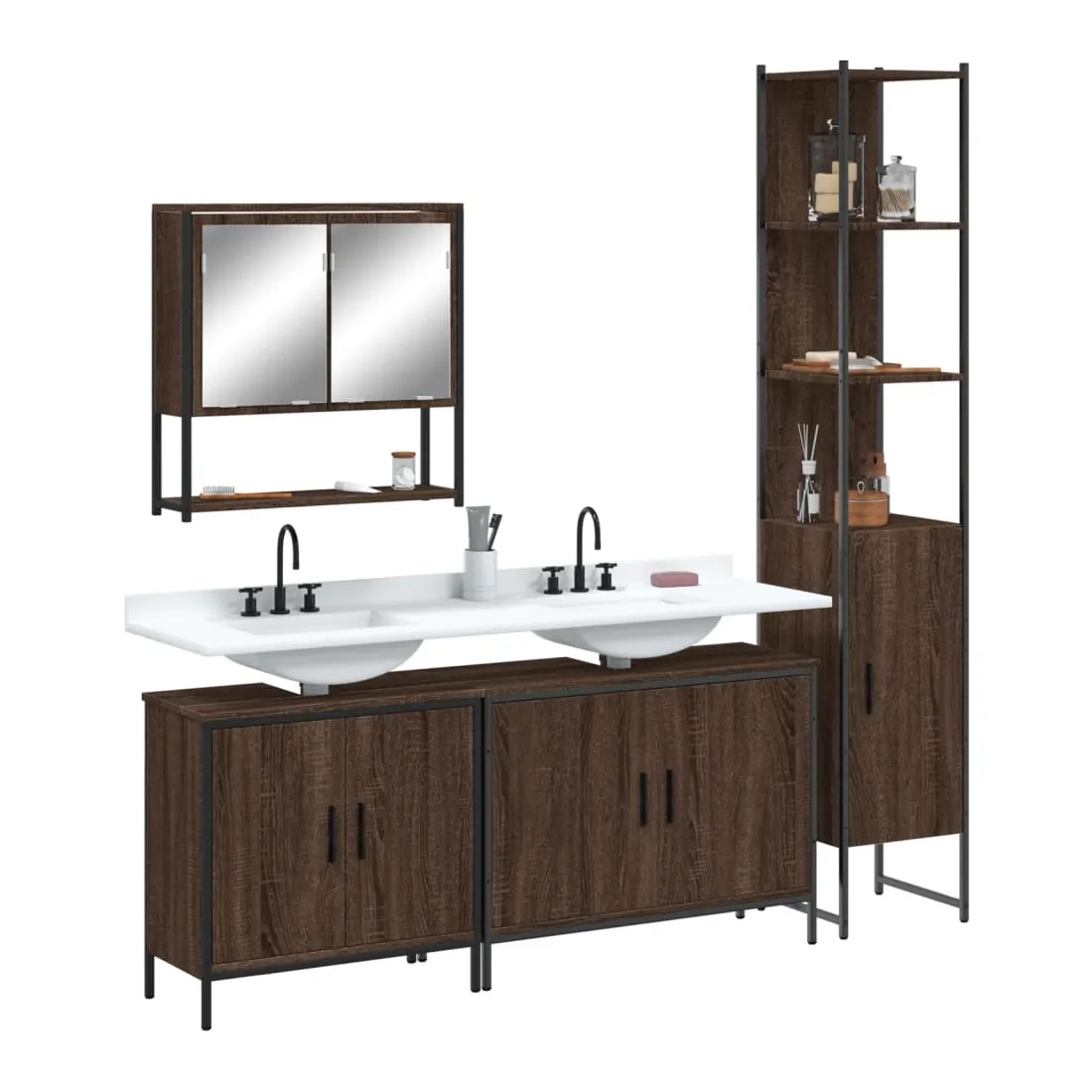 Ensemble de meubles de salle de bain 4 pcs Chêne marron