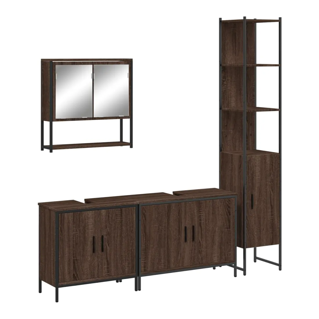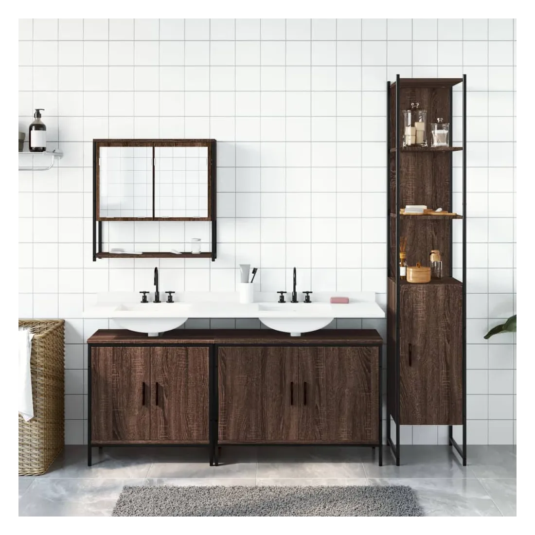 vidaXLCet ensemble de meubles de salle de bain pratique, avec un espace de rangement spacieux, est un excellent supplément à votre salle de bain, ce qui lui donne une apparence ordonnée et saisissante ! Matériau durable : le bois d'ingénierie est d'une qualité exceptionnelle avec une surface lisse et présente également résistance, stabilité et résistance à l'humidité. Grand espace de rangement : les meubles de salle de bain offrent diverses options de rangement et un espace spacieux pour ranger des objets dans votre salle de bain. Design peu encombrant : l'armoire à miroir de salle de bain peut être facilement fixée au mur pour économiser de l'espace au sol. Le haut de l'armoire de toilette est idéal pour placer l'évier, ce qui permet d'utiliser pleinement l'espace libre sous l'évier. Image claire : la face en verre du miroir offre une réflexion fine et non déformée. Il convient donc pour se maquiller, se raser ou vérifier son costume avant de sortir. Attention :Pour éviter qu'il ne bascule, ce produit doit être utilisé avec le dispositif de fixation murale fourni. Bon à savoir :Les vis et les chevilles pour l'intérieur du mur ne sont pas incluses. Nous vous conseillons de trouver et d'utiliser des vis et des chevilles adaptées spécifiquement à vos murs. Si vous n'êtes pas sûr, vous pouvez consulter un professionnel. Veuillez lire et suivre chaque étape des instructions.