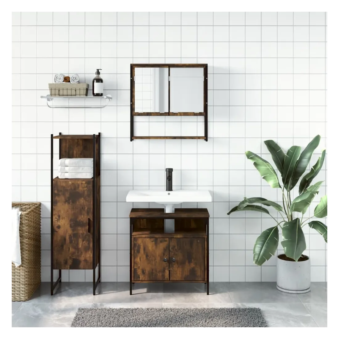 Cet ensemble de meubles de salle de bain pratique, avec un espace de rangement spacieux, est un excellent supplément à votre salle de bain, ce qui lui donne une apparence ordonnée et saisissante ! Matériau durable : le bois d'ingénierie est d'une qualité exceptionnelle avec une surface lisse et présente également résistance, stabilité et résistance à l'humidité. Grand espace de rangement : les meubles de salle de bain offrent diverses options de rangement et un espace spacieux pour ranger des objets dans votre salle de bain. Design peu encombrant : l'armoire à miroir de salle de bain peut être facilement fixée au mur pour économiser de l'espace au sol. Le haut de l'armoire de toilette est idéal pour placer l'évier, ce qui permet d'utiliser pleinement l'espace libre sous l'évier. Image claire : la face en verre du miroir offre une réflexion fine et non déformée. Il convient donc pour se maquiller, se raser ou vérifier son costume avant de sortir. Attention :Pour éviter qu'il ne bascule, ce produit doit être utilisé avec le dispositif de fixation murale fourni.