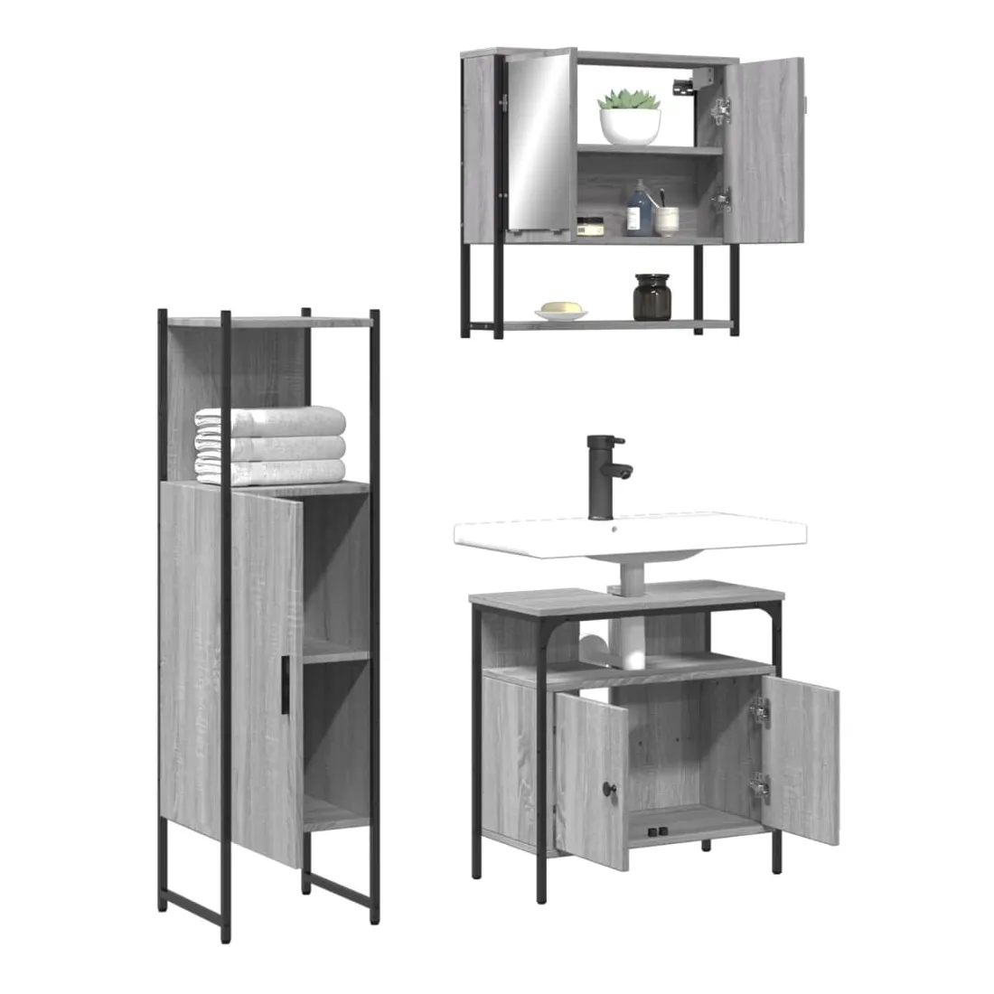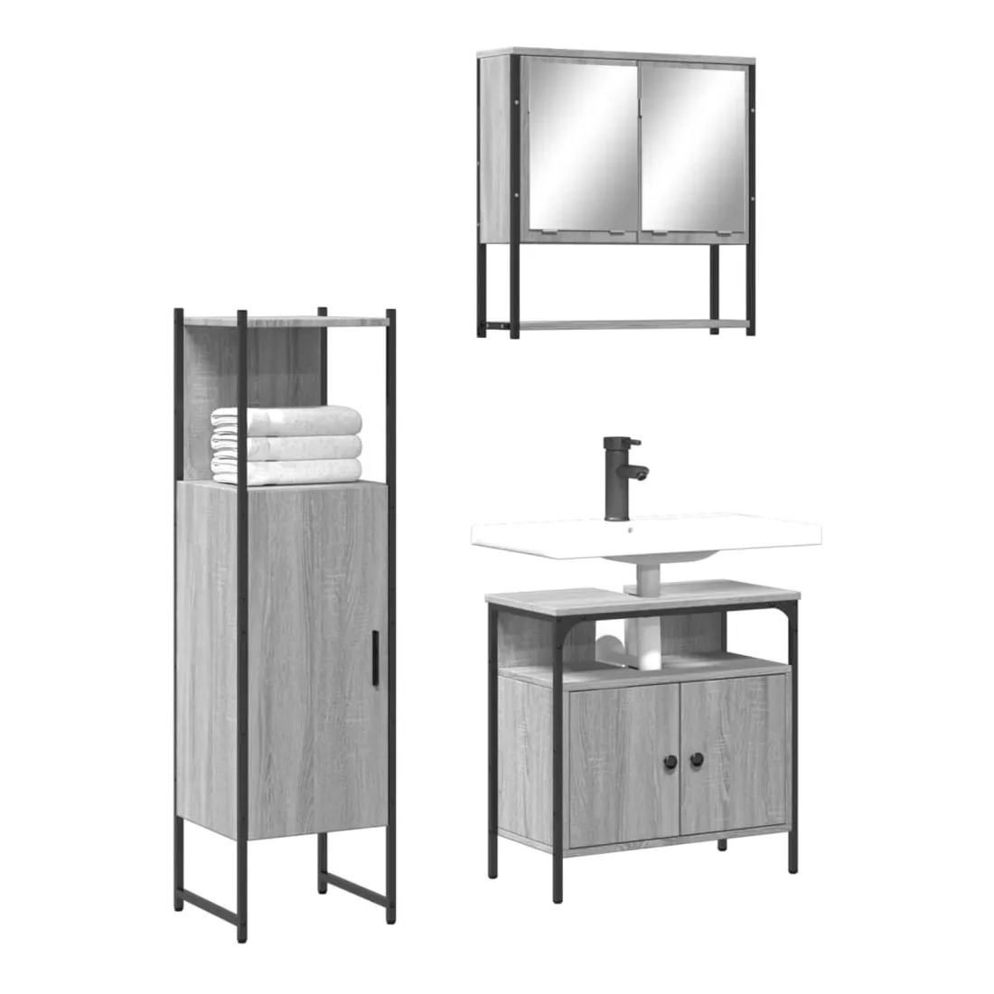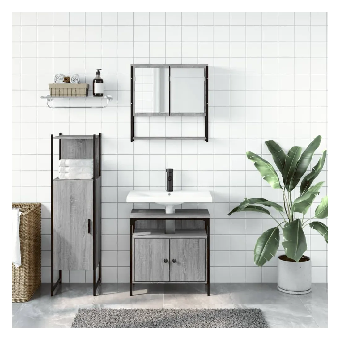 Cet ensemble de meubles de salle de bain pratique, avec un espace de rangement spacieux, est un excellent supplément à votre salle de bain, ce qui lui donne une apparence ordonnée et saisissante ! Matériau durable : le bois d'ingénierie est d'une qualité exceptionnelle avec une surface lisse et présente également résistance, stabilité et résistance à l'humidité. Grand espace de rangement : les meubles de salle de bain offrent diverses options de rangement et un espace spacieux pour ranger des objets dans votre salle de bain. Design peu encombrant : l'armoire à miroir de salle de bain peut être facilement fixée au mur pour économiser de l'espace au sol. Le haut de l'armoire de toilette est idéal pour placer l'évier, ce qui permet d'utiliser pleinement l'espace libre sous l'évier. Image claire : la face en verre du miroir offre une réflexion fine et non déformée. Il convient donc pour se maquiller, se raser ou vérifier son costume avant de sortir. Attention :Pour éviter qu'il ne bascule, ce produit doit être utilisé avec le dispositif de fixation murale fourni.
