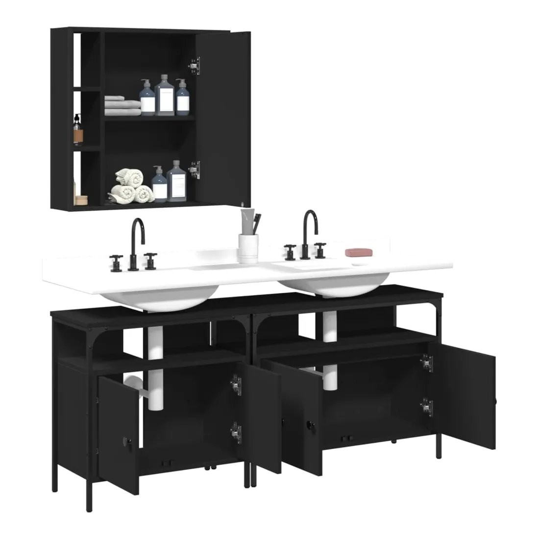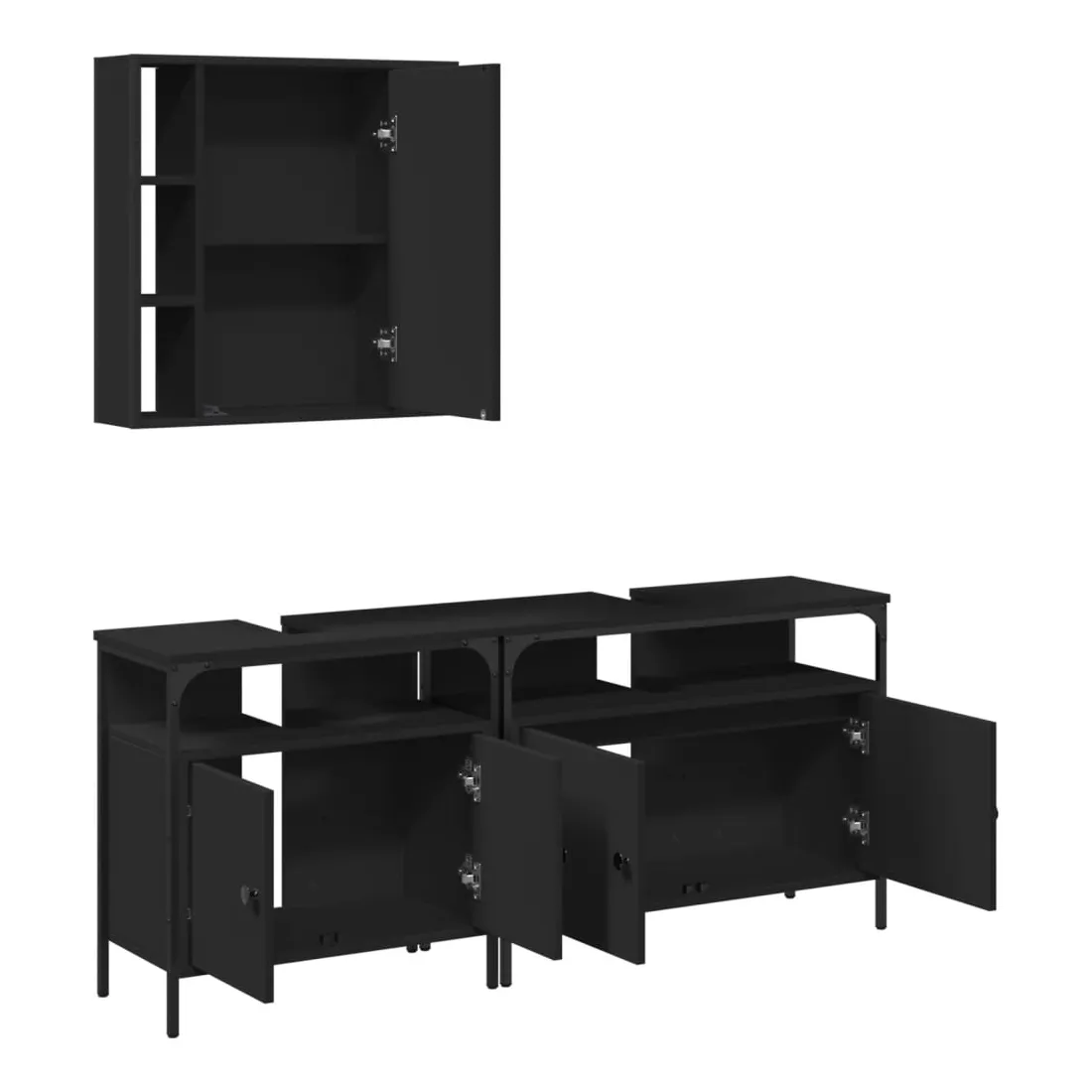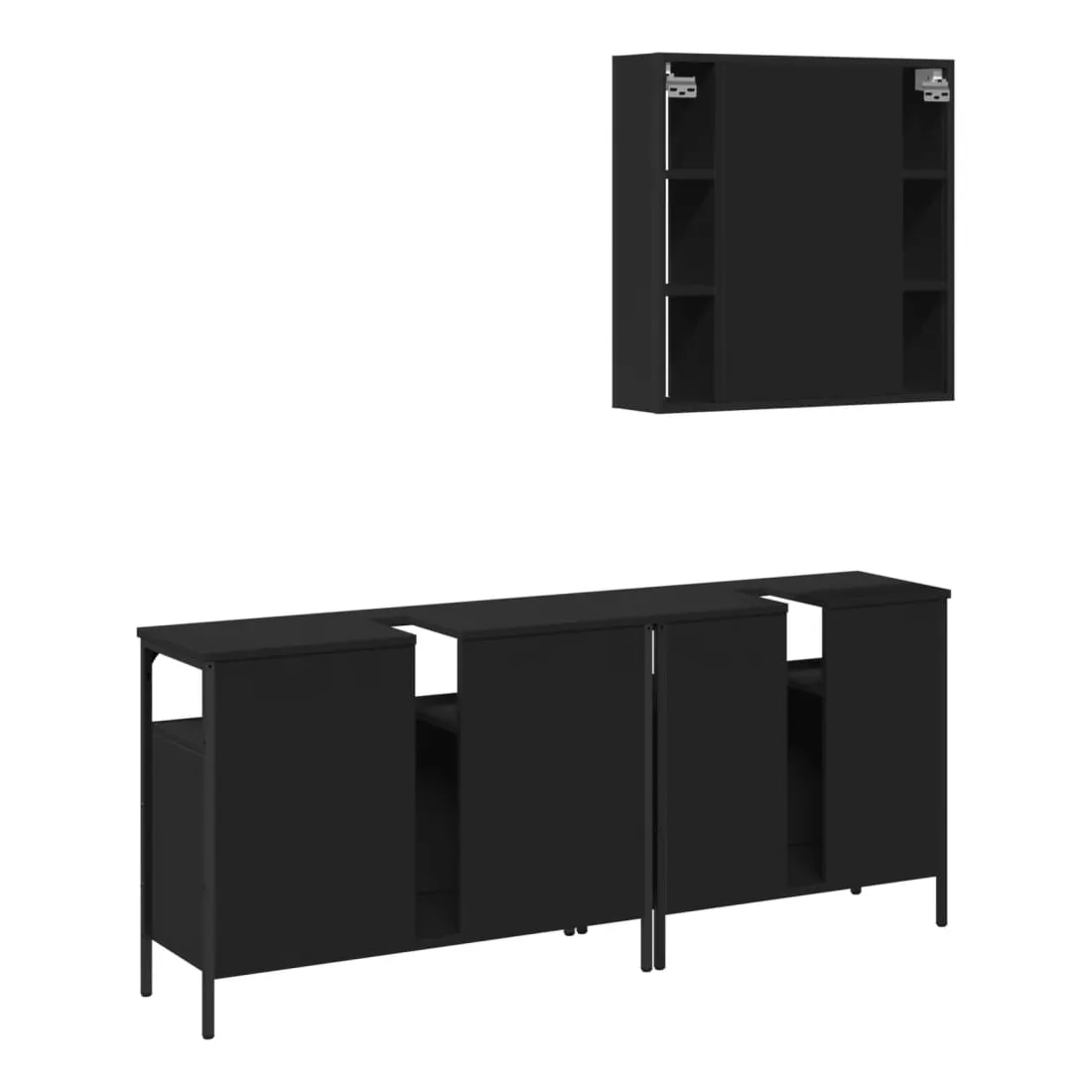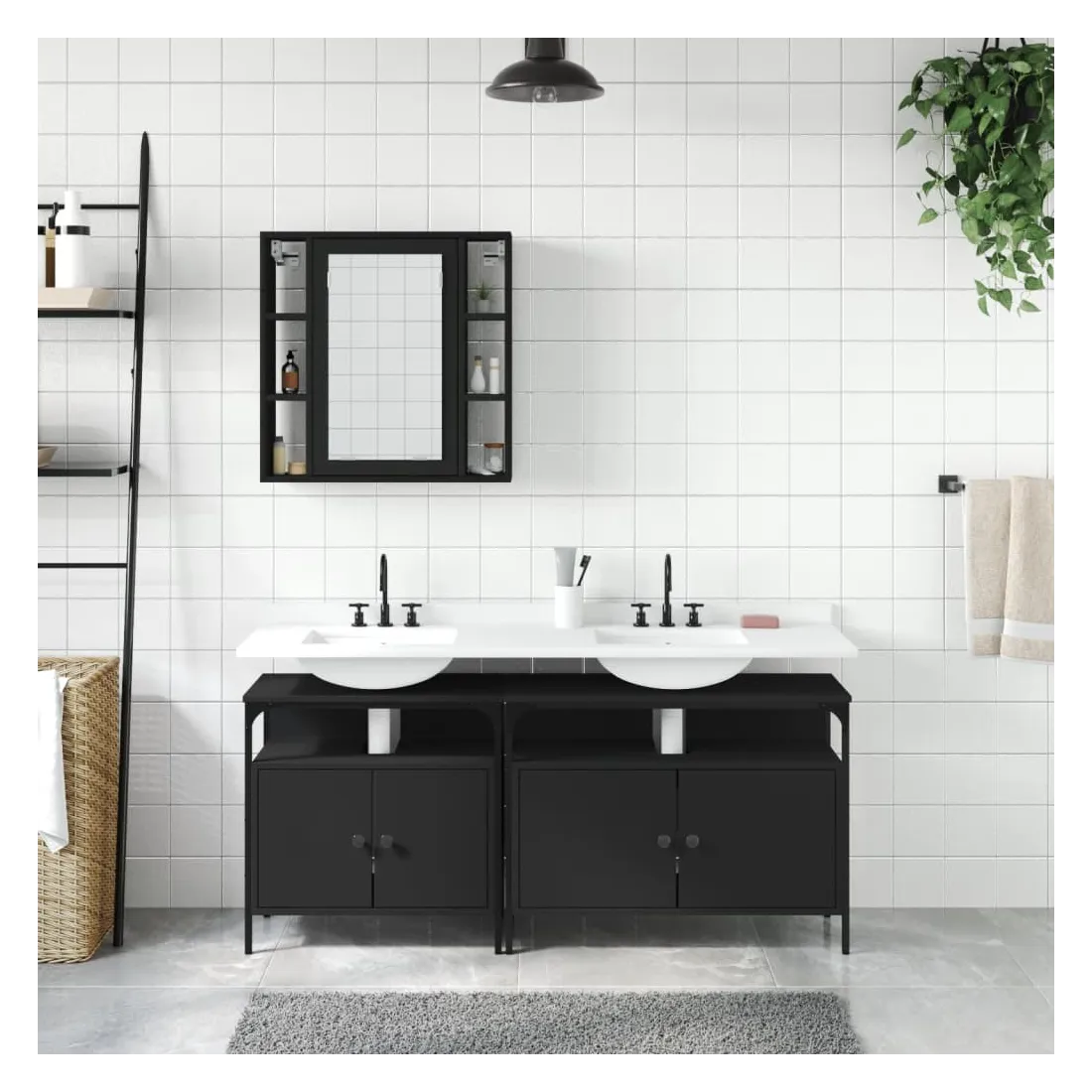 Cet ensemble d'armoires de salle de bain attrayant, avec un grand espace de rangement, présente un design élégant mais pratique. Construction robuste : l'acier revêtu de poudre et le bois d'ingénierie garantissent une construction robuste et offrent un support solide à vos articles.Grand espace de rangement : ce meuble de salle de bain offre un grand espace de rangement pour accueillir facilement vos articles de toilette et articles de bain essentiels tels que savons, shampoing, dentifrice, etc.Étagère de rangement supplémentaire : le miroir de bain est doté d'une étagère inférieure qui offre un espace de rangement supplémentaire pour les accessoires de salle de bains tels que les brosses à dents, les nettoyants pour le visage, les rasoirs, etc.Image claire : la face en verre du miroir offre une réflexion fine et non déformée. Il convient donc pour se maquiller, se raser ou vérifier son costume avant de sortir.Pieds réglables : les pieds réglables munis de coussinets en plastique maintiennent l'armoire de salle de bain en équilibre sur un sol inégal et augmentent sa stabilité. Attention :Pour éviter qu'il ne bascule, ce produit doit être utilisé avec le dispositif de fixation murale fourni. Bon à savoir :Les vis et les chevilles pour l'intérieur du mur ne sont pas incluses. Nous vous conseillons de trouver et d'utiliser des vis et des chevilles adaptées spécifiquement à vos murs. Si vous n'êtes pas sûr, vous pouvez consulter un professionnel. Veuillez lire et suivre chaque étape des instructions.
