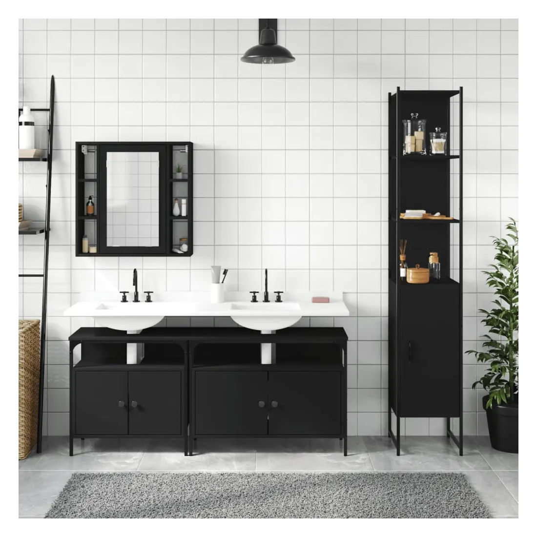 Cet ensemble d'armoires de salle de bain attrayant, avec un grand espace de rangement, présente un design élégant mais pratique. Construction robuste : l'acier revêtu de poudre et le bois d'ingénierie garantissent une construction robuste et offrent un support solide à vos articles.Grand espace de rangement : ce meuble de salle de bain offre un grand espace de rangement pour accueillir facilement vos articles de toilette et articles de bain essentiels tels que savons, shampoing, dentifrice, etc.Étagère de rangement supplémentaire : le miroir de bain est doté d'une étagère inférieure qui offre un espace de rangement supplémentaire pour les accessoires de salle de bains tels que les brosses à dents, les nettoyants pour le visage, les rasoirs, etc.Image claire : la face en verre du miroir offre une réflexion fine et non déformée. Il convient donc pour se maquiller, se raser ou vérifier son costume avant de sortir.Pieds réglables : les pieds réglables munis de coussinets en plastique maintiennent l'armoire de salle de bain en équilibre sur un sol inégal et augmentent sa stabilité. Attention :Pour éviter qu'il ne bascule, ce produit doit être utilisé avec le dispositif de fixation murale fourni. Bon à savoir :Les vis et les chevilles pour l'intérieur du mur ne sont pas incluses. Nous vous conseillons de trouver et d'utiliser des vis et des chevilles adaptées spécifiquement à vos murs. Si vous n'êtes pas sûr, vous pouvez consulter un professionnel. Veuillez lire et suivre chaque étape des instructions.