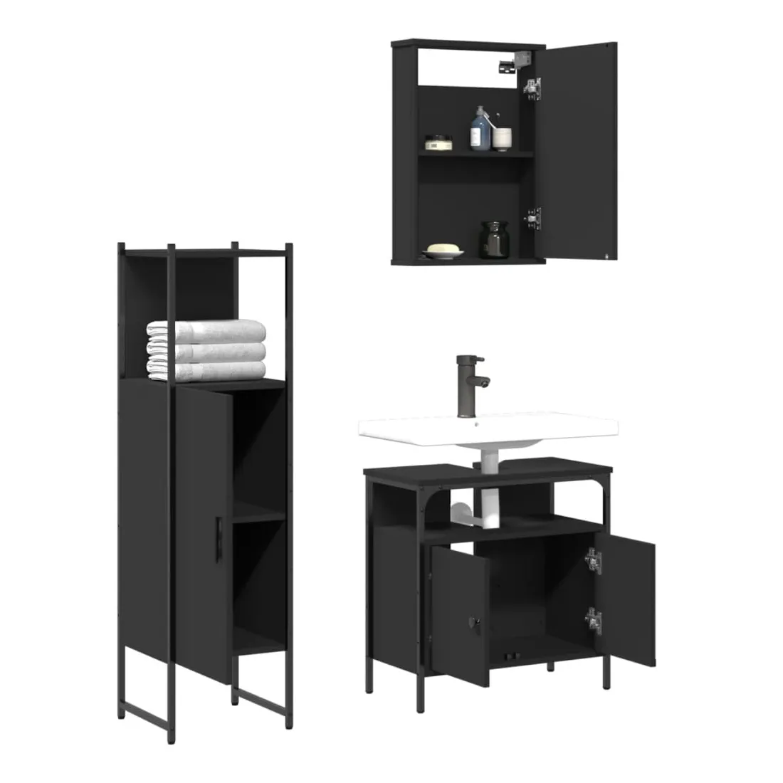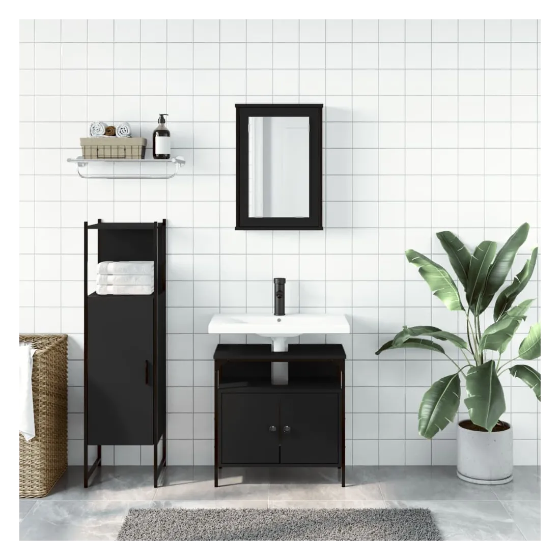 Cet ensemble de meubles de salle de bain pratique, avec un espace de rangement spacieux, est un excellent supplément à votre salle de bain, ce qui lui donne une apparence ordonnée et saisissante ! Matériau durable : le bois d'ingénierie est d'une qualité exceptionnelle avec une surface lisse et présente également résistance, stabilité et résistance à l'humidité.Grand espace de rangement : les meubles de salle de bain offrent diverses options de rangement et un espace spacieux pour ranger des objets dans votre salle de bain.Fonction murale : l'armoire de toilette peut être fixée au mur pour économiser de l'espace au sol, ce qui la rend particulièrement adaptée aux pièces avec un espace limité.Design peu encombrant : la partie supérieure de l'armoire de salle de bains est idéale pour placer le lavabo, ce qui permet d'utiliser pleinement l'espace vacant sous le lavabo.Image claire : la face en verre du miroir offre une réflexion fine et non déformée. Il convient donc pour se maquiller, se raser ou vérifier son costume avant de sortir. Attention :Pour éviter qu'il ne bascule, ce produit doit être utilisé avec le dispositif de fixation murale fourni. Bon à savoir :Les vis et les chevilles pour l'intérieur du mur ne sont pas incluses. Nous vous conseillons de trouver et d'utiliser des vis et des chevilles adaptées spécifiquement à vos murs. Si vous n'êtes pas sûr, vous pouvez consulter un professionnel. Veuillez lire et suivre chaque étape des instructions.
