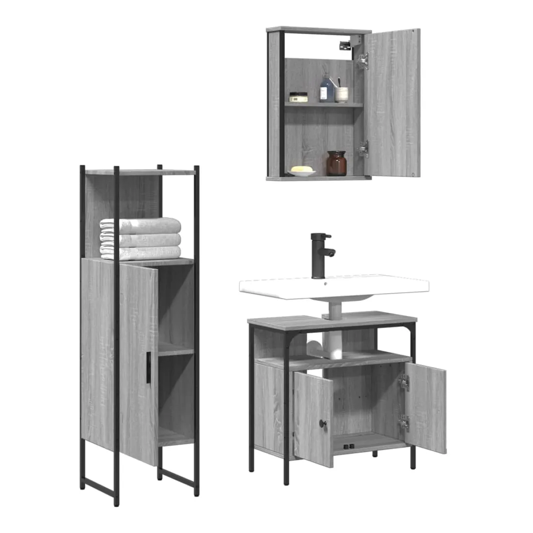 Cet ensemble de meubles de salle de bain pratique, avec un espace de rangement spacieux, est un excellent supplément à votre salle de bain, ce qui lui donne une apparence ordonnée et saisissante ! Matériau durable : le bois d'ingénierie est d'une qualité exceptionnelle avec une surface lisse et présente également résistance, stabilité et résistance à l'humidité.Grand espace de rangement : les meubles de salle de bain offrent diverses options de rangement et un espace spacieux pour ranger des objets dans votre salle de bain.Fonction murale : l'armoire de toilette peut être fixée au mur pour économiser de l'espace au sol, ce qui la rend particulièrement adaptée aux pièces avec un espace limité.Design peu encombrant : la partie supérieure de l'armoire de salle de bains est idéale pour placer le lavabo, ce qui permet d'utiliser pleinement l'espace vacant sous le lavabo.Image claire : la face en verre du miroir offre une réflexion fine et non déformée. Il convient donc pour se maquiller, se raser ou vérifier son costume avant de sortir. Attention :Pour éviter qu'il ne bascule, ce produit doit être utilisé avec le dispositif de fixation murale fourni. Bon à savoir :Les vis et les chevilles pour l'intérieur du mur ne sont pas incluses. Nous vous conseillons de trouver et d'utiliser des vis et des chevilles adaptées spécifiquement à vos murs. Si vous n'êtes pas sûr, vous pouvez consulter un professionnel. Veuillez lire et suivre chaque étape des instructions.
