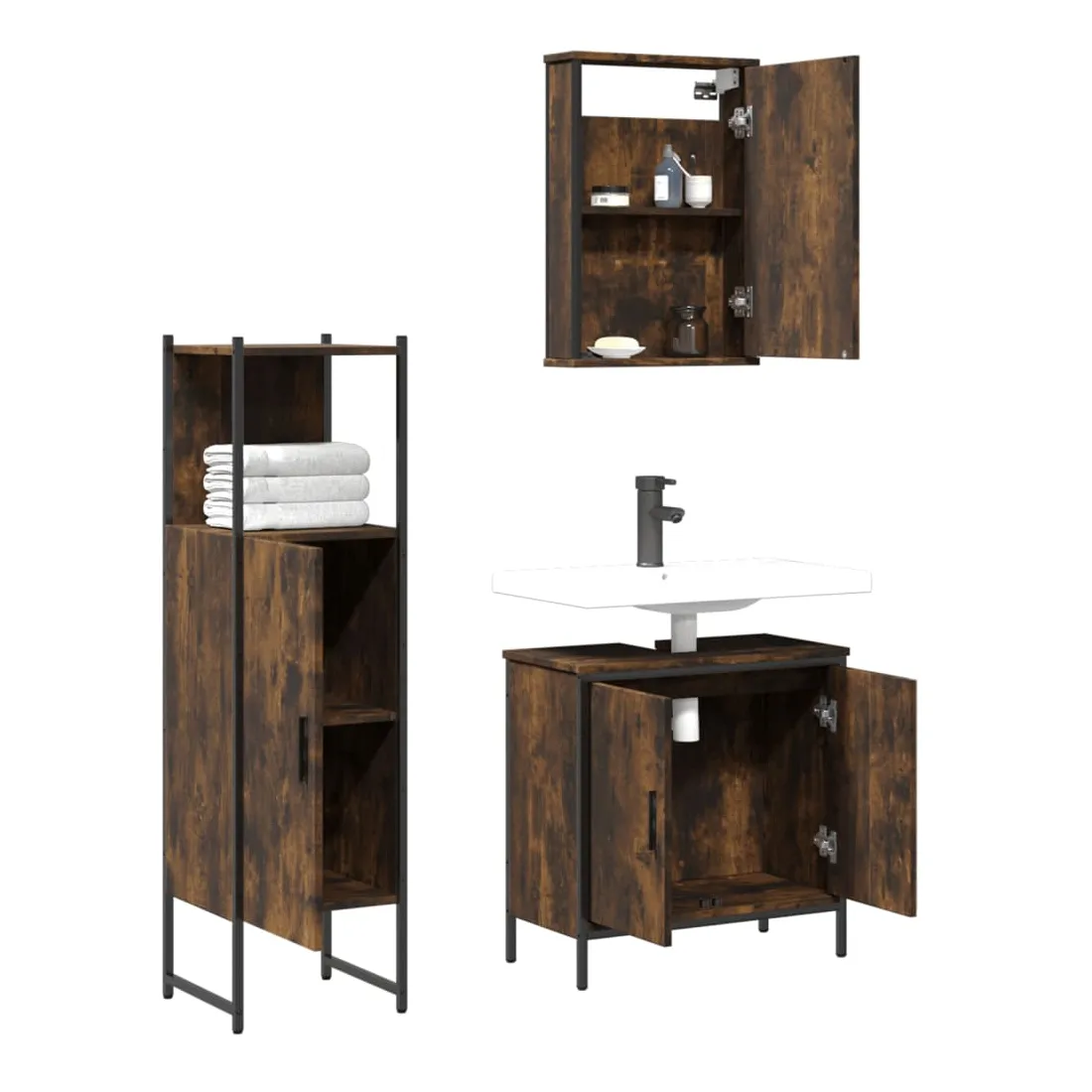 Cet ensemble de meubles de salle de bain pratique, avec un espace de rangement spacieux, est un excellent supplément à votre salle de bain, ce qui lui donne une apparence ordonnée et saisissante ! Matériau durable : le bois d'ingénierie est d'une qualité exceptionnelle avec une surface lisse et présente également résistance, stabilité et résistance à l'humidité.Grand espace de rangement : les meubles de salle de bain offrent diverses options de rangement et un espace spacieux pour ranger des objets dans votre salle de bain.Fonction murale : l'armoire de toilette peut être fixée au mur pour économiser de l'espace au sol, ce qui la rend particulièrement adaptée aux pièces avec un espace limité.Design peu encombrant : la partie supérieure de l'armoire de salle de bains est idéale pour placer le lavabo, ce qui permet d'utiliser pleinement l'espace vacant sous le lavabo.Image claire : la face en verre du miroir offre une réflexion fine et non déformée. Il convient donc pour se maquiller, se raser ou vérifier son costume avant de sortir. Attention :Pour éviter qu'il ne bascule, ce produit doit être utilisé avec le dispositif de fixation murale fourni. Bon à savoir :Les vis et les chevilles pour l'intérieur du mur ne sont pas incluses. Nous vous conseillons de trouver et d'utiliser des vis et des chevilles adaptées spécifiquement à vos murs. Si vous n'êtes pas sûr, vous pouvez consulter un professionnel. Veuillez lire et suivre chaque étape des instructions.