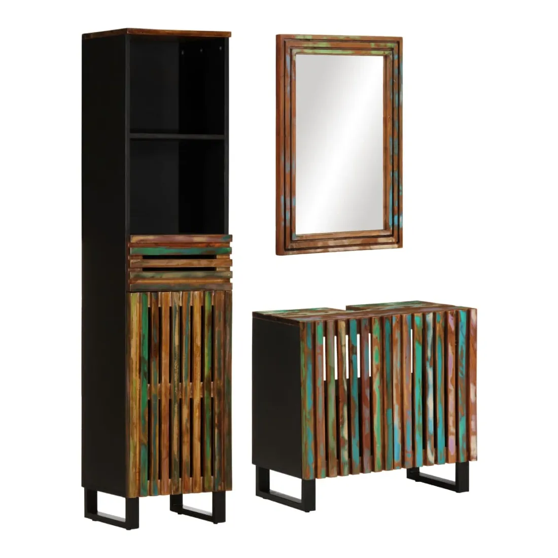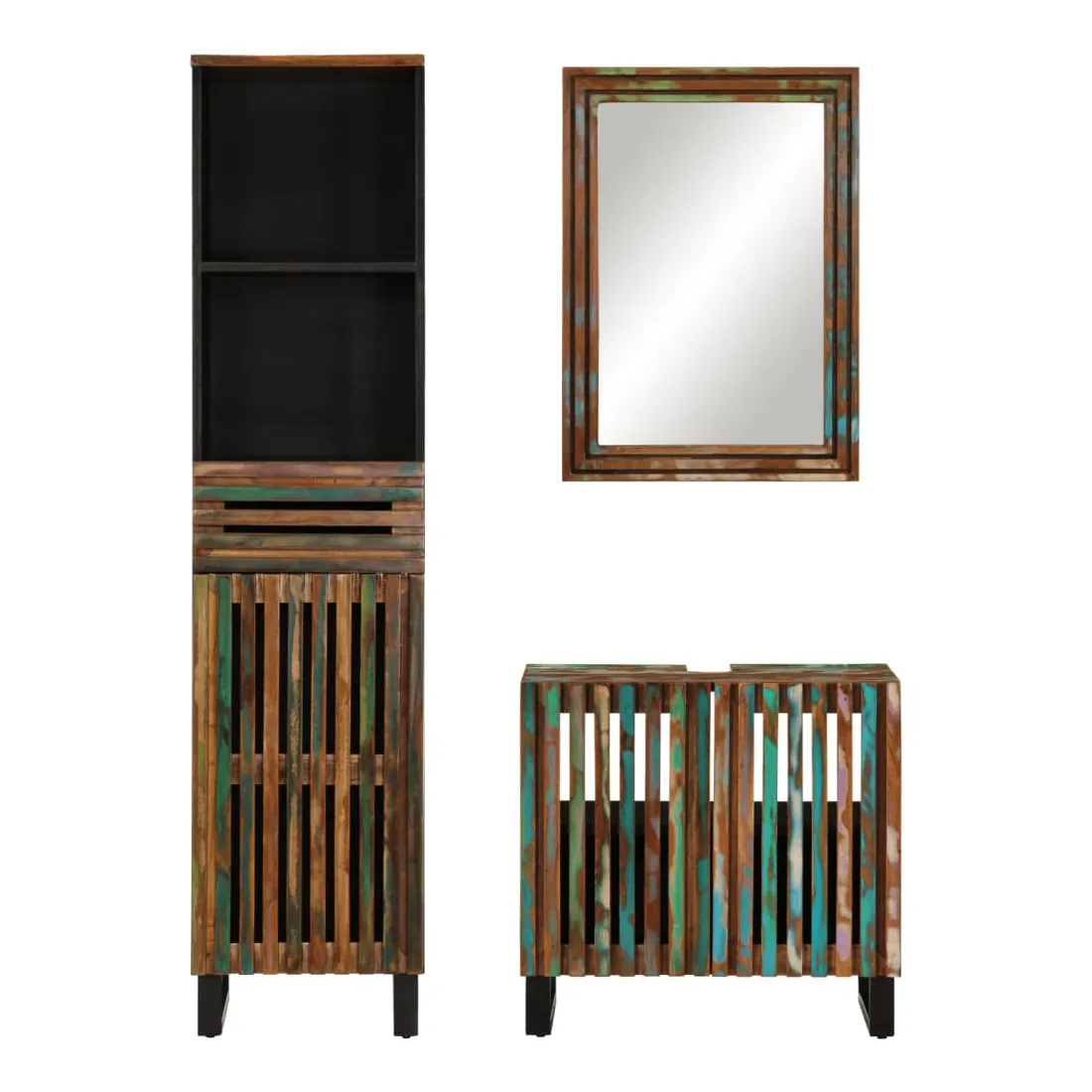 vidaXLCet ensemble de meubles de salle de bain en bois est un excellent supplément à votre salle de bain, ce qui lui donne une apparence ordonnée et saisissante ! Bois d'acacia massif : l'armoire est fabriqué en bois d'acacia massif combiné avec du bois d'ingénierie. Le bois d'acacia massif est un beau matériau naturel. Le bois d'acacia est un bois dur tropical, dense, robuste et durable.Grand espace de rangement : le meuble de rangement de salle de bain offre diverses options de rangement et un espace spacieux pour ranger des articles dans votre salle de bain.Pieds robustes : les pieds en fer de l'armoire de salle de bain assurent sa robustesse et sa stabilité.Design pratique : le dessus du meuble-lavabo de salle de bain est idéal pour placer le lavabo.Image claire : la face du miroir en verre offre une image claire. Ainsi, vous pouvez profiter d'un reflet magnifique et naturel lorsque vous vous tenez devant. Attention :Pour éviter qu'il ne bascule, ce produit doit être utilisé avec le dispositif de fixation murale fourni.Bon à savoir :Le lavabo n'est pas inclus dans la livraison.Les vis et les chevilles pour l'intérieur du mur ne sont pas incluses. Nous vous conseillons de trouver et d'utiliser des vis et des chevilles adaptées spécifiquement à vos murs. Si vous n'êtes pas sûr, vous pouvez consulter un professionnel. Veuillez lire et suivre chaque étape des instructions.Chaque article est unique, avec des variations de couleurs et de grains. La livraison est aléatoire, ce qui garantit l'exclusivité et l'individualité de votre produit.