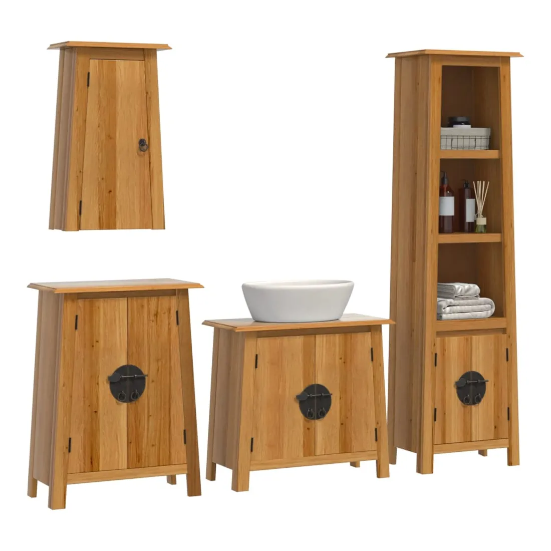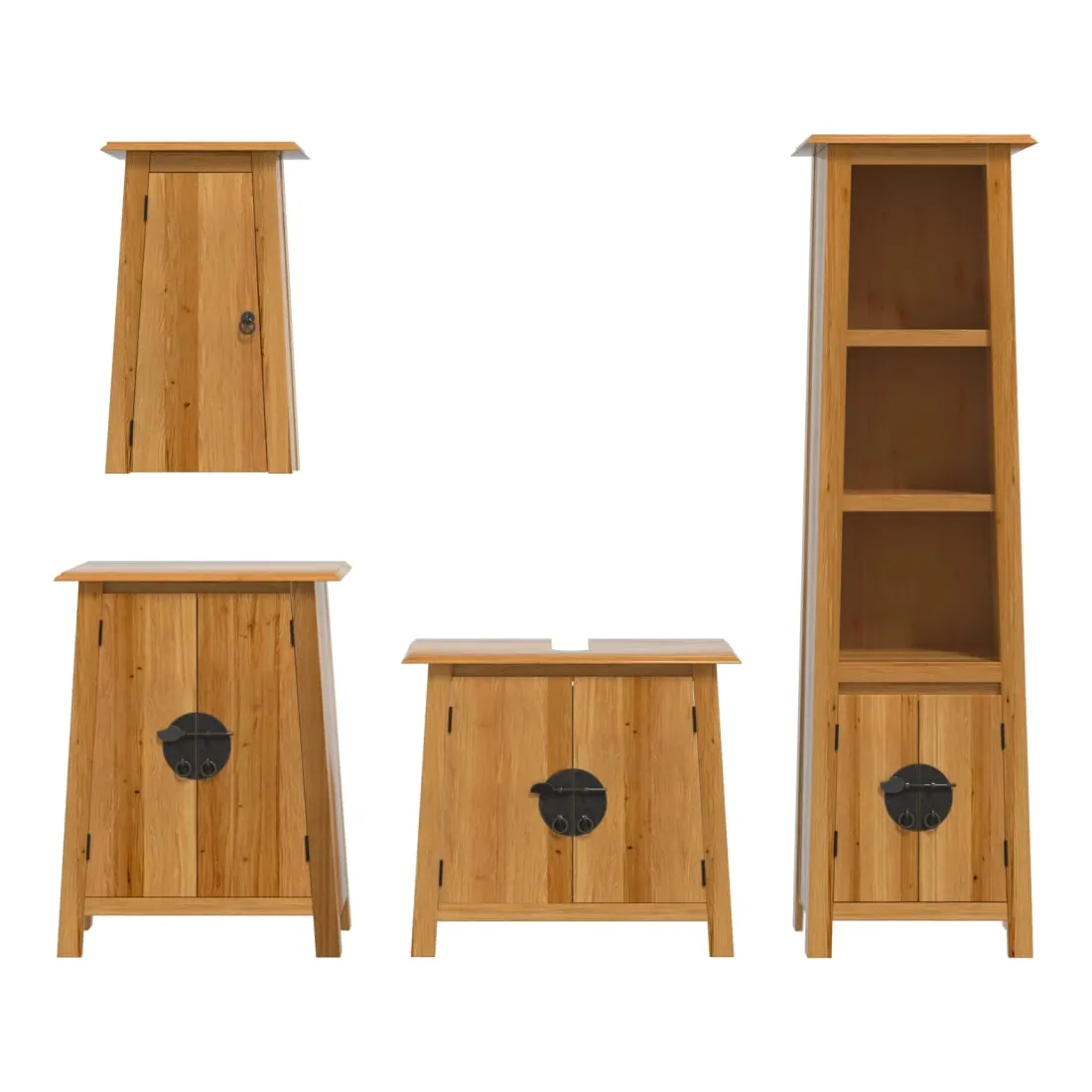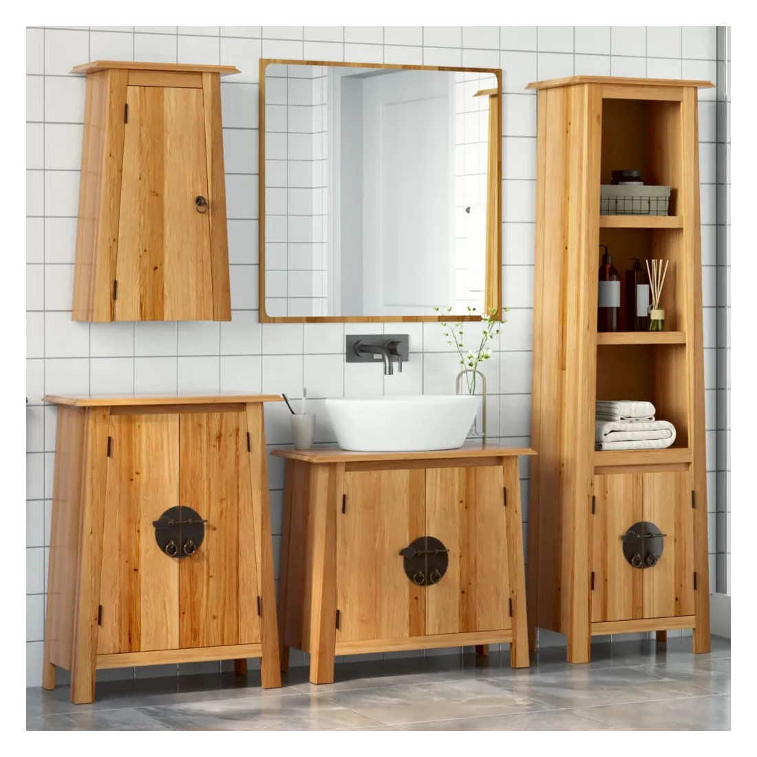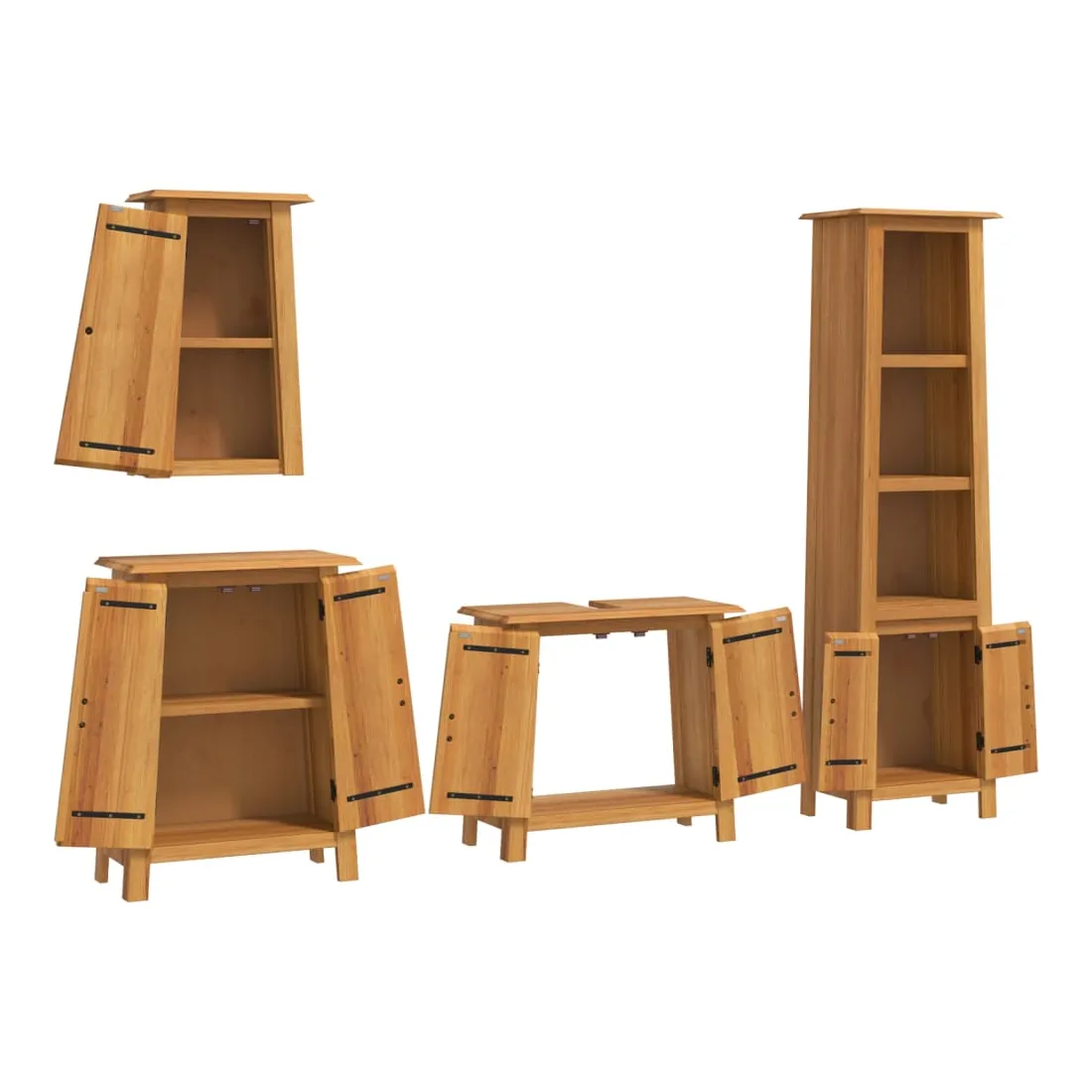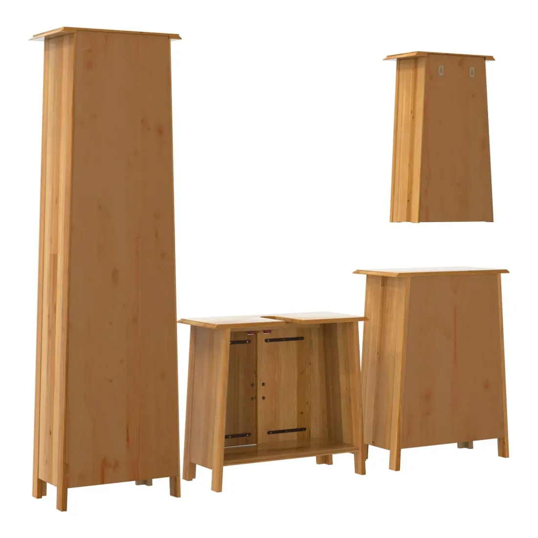 Cet ensemble de meubles de salle de bain est un excellent supplément à votre salle de bain, ce qui lui donne une apparence ordonnée et saisissante ! Bois de pin massif : le bois de pin massif est un matériau naturel magnifique. Le bois de pin a un grain droit et les nœuds donnent au matériau son aspect caractéristique et rustique.Grand espace de rangement : l'armoire de salle de bain offre suffisamment d'espace pour ranger facilement vos articles de toilette et articles de bain essentiels tels que savons, shampoing, dentifrice, etc.Poignées pratiques : les poignées en métal vous permettent d'ouvrir facilement le meuble de rangement de la salle de bains pour obtenir ce que vous voulez.Fonction murale : l'armoire murale de salle de bain peut être fixée au mur pour ajouter de l'espace de stockage supplémentaire. De cette façon, vous pouvez maximiser votre espace au sol et garder la zone propre. Attention :Pour éviter qu'il ne bascule, ce produit doit être utilisé avec le dispositif de fixation murale (non fourni). Bon à savoir :Chaque article est unique, avec des variations de couleurs et de grains. La livraison est aléatoire, ce qui garantit l'exclusivité et l'individualité de votre produit.
