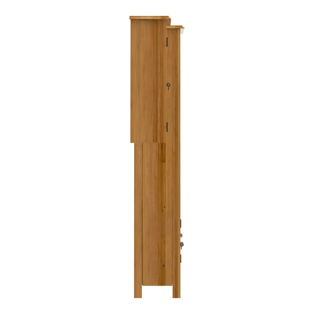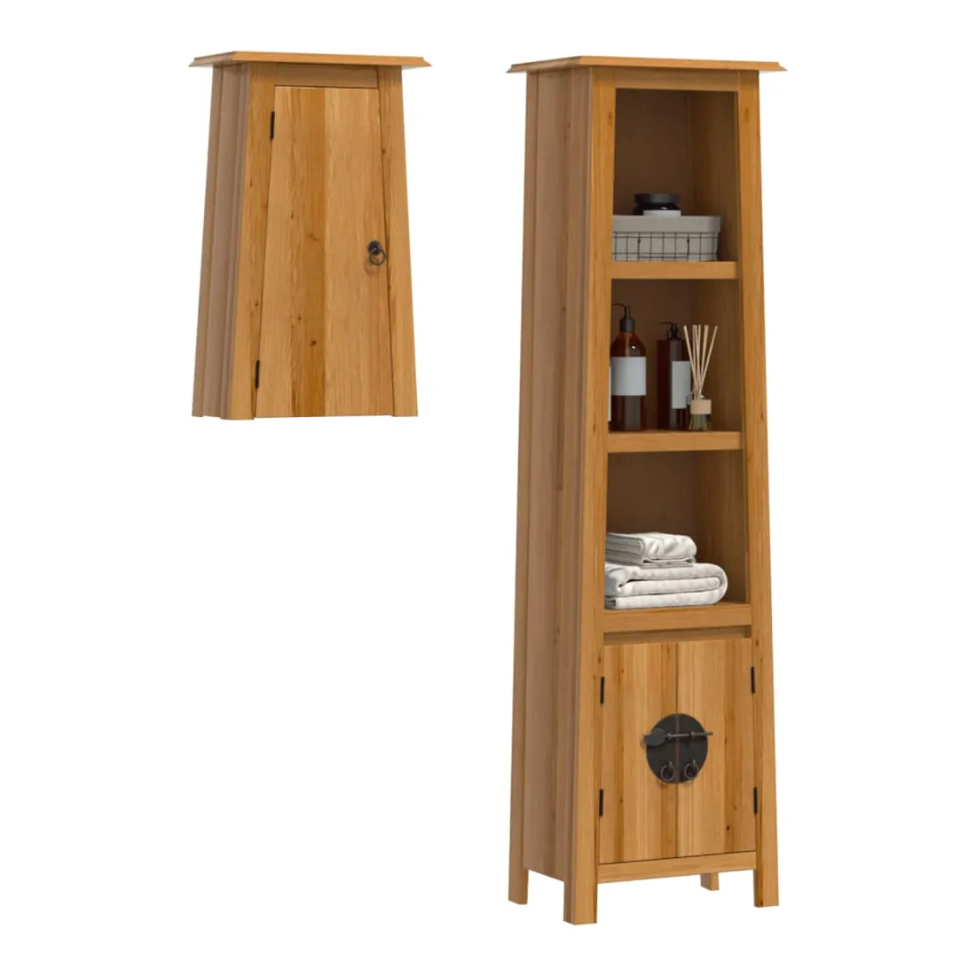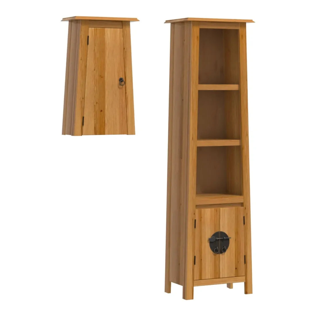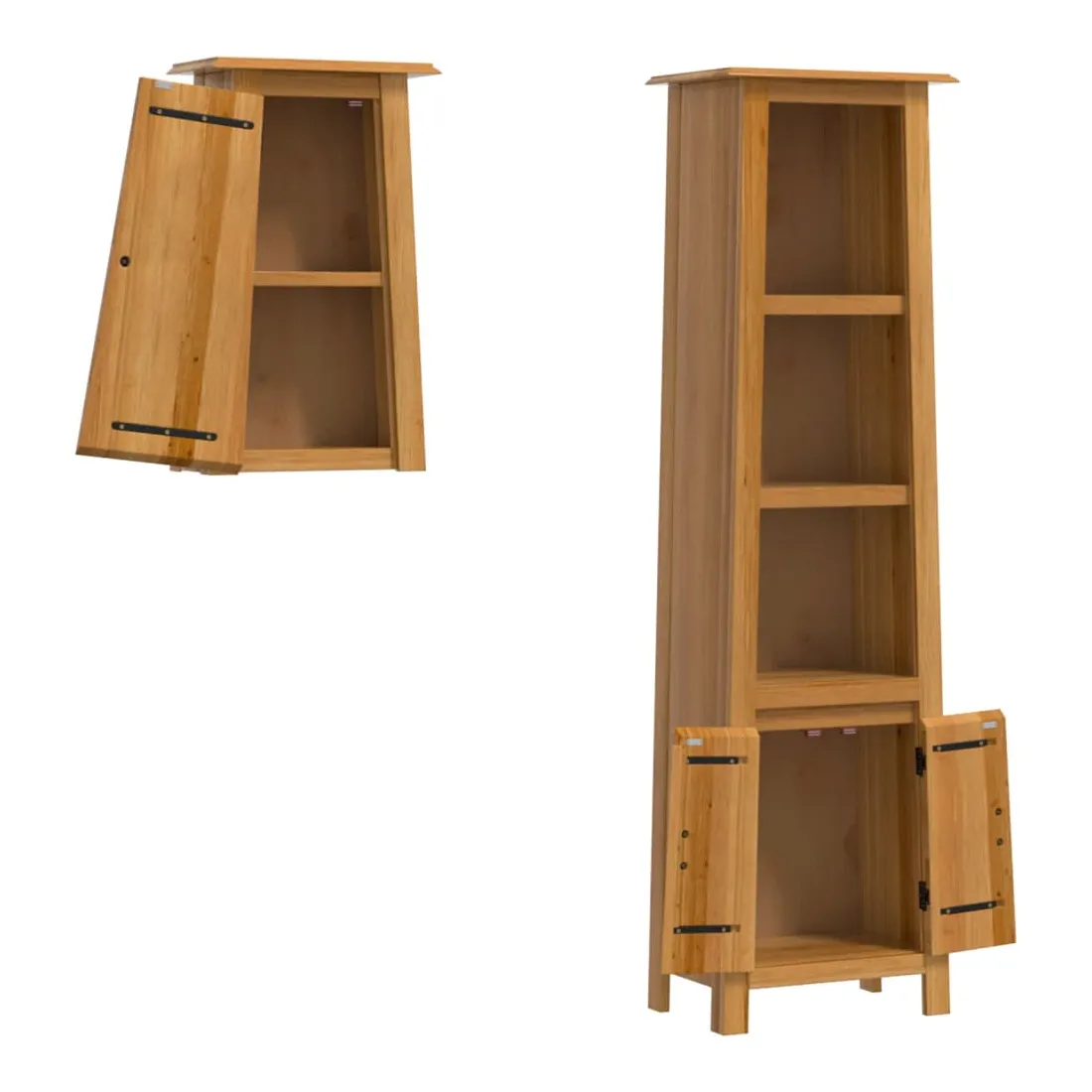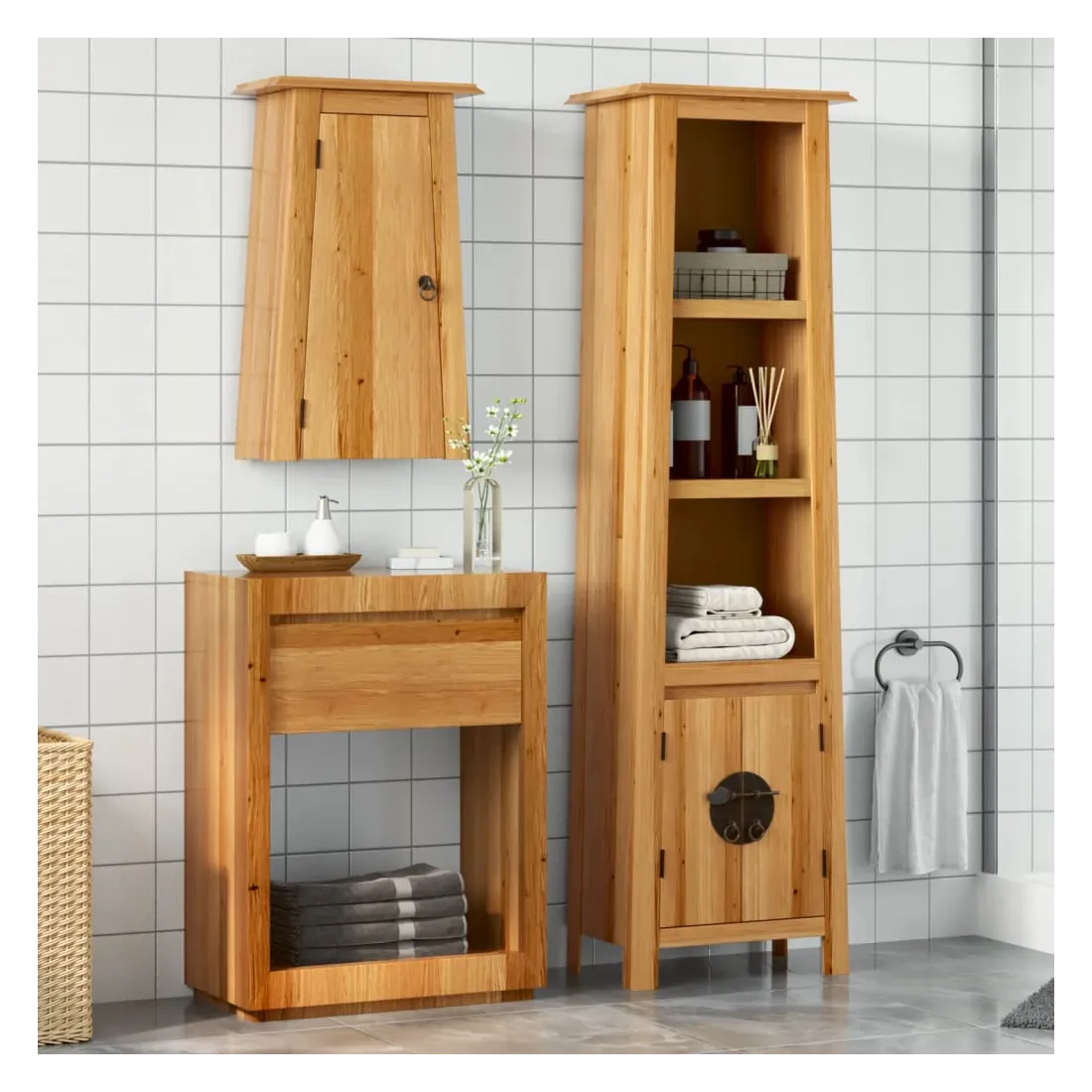 Cet ensemble de meubles de salle de bain est un excellent supplément à votre salle de bain, ce qui lui donne une apparence ordonnée et saisissante ! Bois de pin massif : le bois de pin massif est un matériau naturel magnifique. Le bois de pin a un grain droit et les nœuds donnent au matériau son aspect caractéristique et rustique.Grand espace de rangement : l'armoire de salle de bain offre suffisamment d'espace pour ranger facilement vos articles de toilette et articles de bain essentiels tels que savons, shampoing, dentifrice, etc.Poignées pratiques : les poignées en métal vous permettent d'ouvrir facilement le meuble de rangement de la salle de bains pour obtenir ce que vous voulez.Fonction murale : l'armoire murale de salle de bain peut être fixée au mur pour ajouter de l'espace de stockage supplémentaire. De cette façon, vous pouvez maximiser votre espace au sol et garder la zone propre. Attention :Pour éviter qu'il ne bascule, ce produit doit être utilisé avec le dispositif de fixation murale (non fourni). Bon à savoir :Chaque article est unique, avec des variations de couleurs et de grains. La livraison est aléatoire, ce qui garantit l'exclusivité et l'individualité de votre produit.