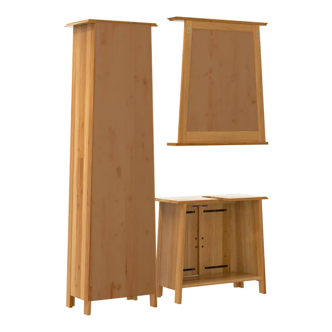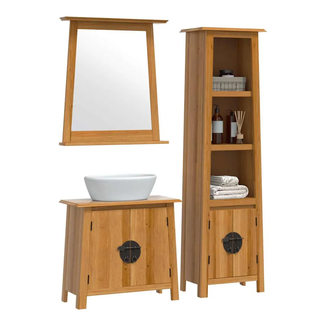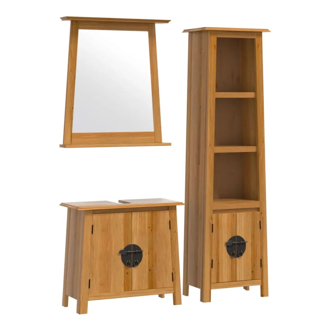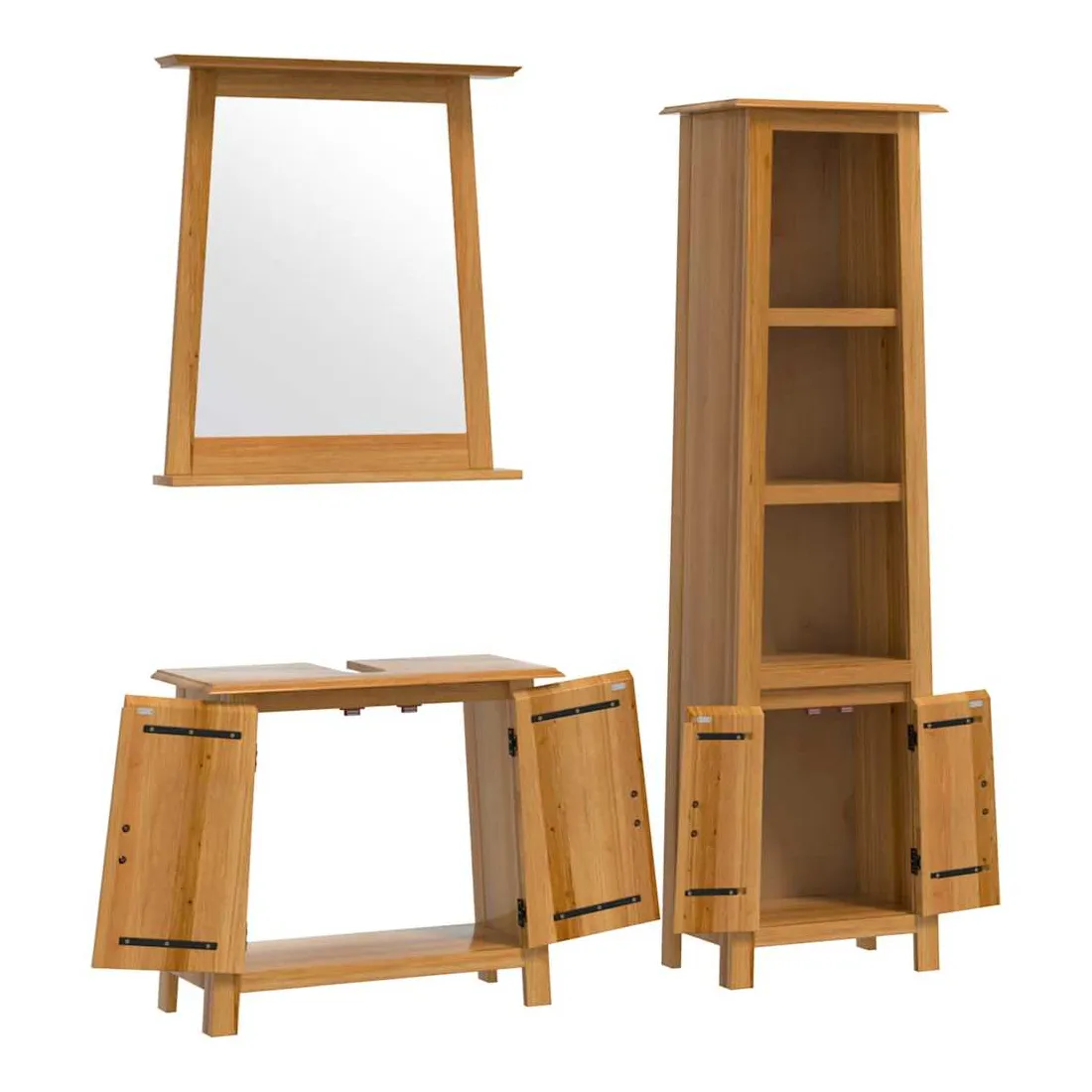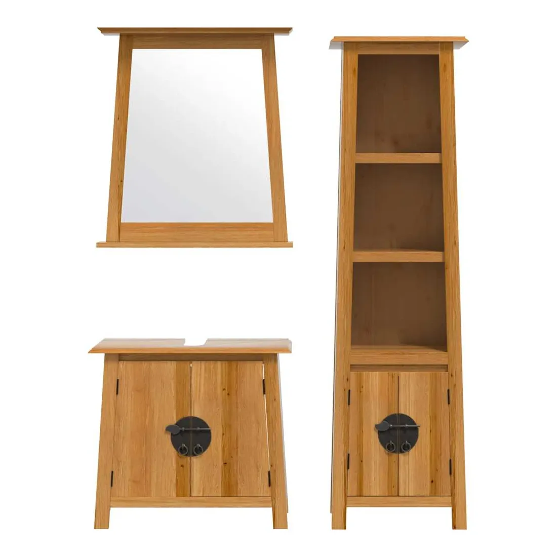 Cet ensemble de meubles de salle de bain est un excellent supplément à votre salle de bain, ce qui lui donne une apparence ordonnée et saisissante ! Bois de pin massif : le bois de pin massif est un matériau naturel magnifique. Le bois de pin a un grain droit et les nœuds donnent au matériau son aspect caractéristique et rustique.Grand espace de rangement : l'armoire de salle de bain offre suffisamment d'espace pour ranger facilement vos articles de toilette et articles de bain essentiels tels que savons, shampoing, dentifrice, etc.Poignées pratiques : les poignées en métal vous permettent d'ouvrir facilement le meuble de rangement de la salle de bains pour obtenir ce que vous voulez.Image claire : le miroir offre une réflexion fine et non déformée. Il convient donc pour se maquiller, se raser ou vérifier son costume avant de sortir. Attention :Pour éviter qu'il ne bascule, ce produit doit être utilisé avec le dispositif de fixation murale (non fourni). Bon à savoir :Chaque article est unique, avec des variations de couleurs et de grains. La livraison est aléatoire, ce qui garantit l'exclusivité et l'individualité de votre produit.