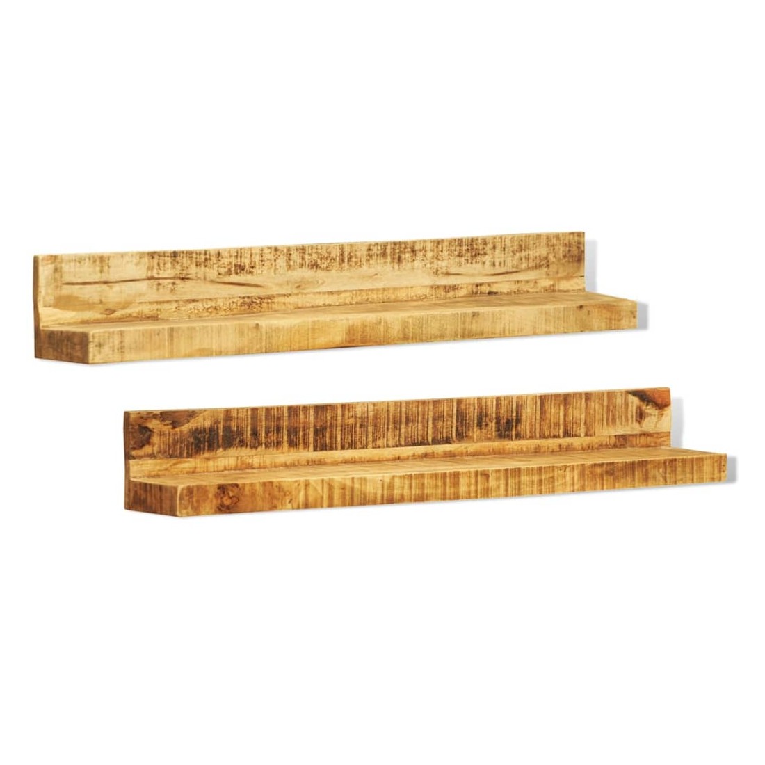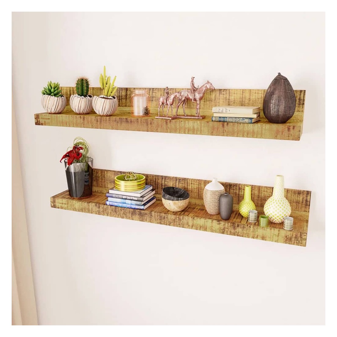 Ce set de 2 étagères murales en bois, d'un design simple et élégant, apportera une touche additionnelle à votre maison. Vous pouvez trouver un bon équilibre entre le rôle utile et la fonction décorative. De conception contemporaine, cet ensemble d'étagères de haute qualité est un choix idéal pour votre cuisine, votre salon ou votre chambre, partout où vous avez besoin de placer des objets quotidiens. Fabriquées en bois de manguier massif, ces étagères ont une capacité de charge totale de 20 kg et sont suffisamment durables pour être utilisées pendant des années. L'assemblage est très facile et la livraison comprend 2 étagères.