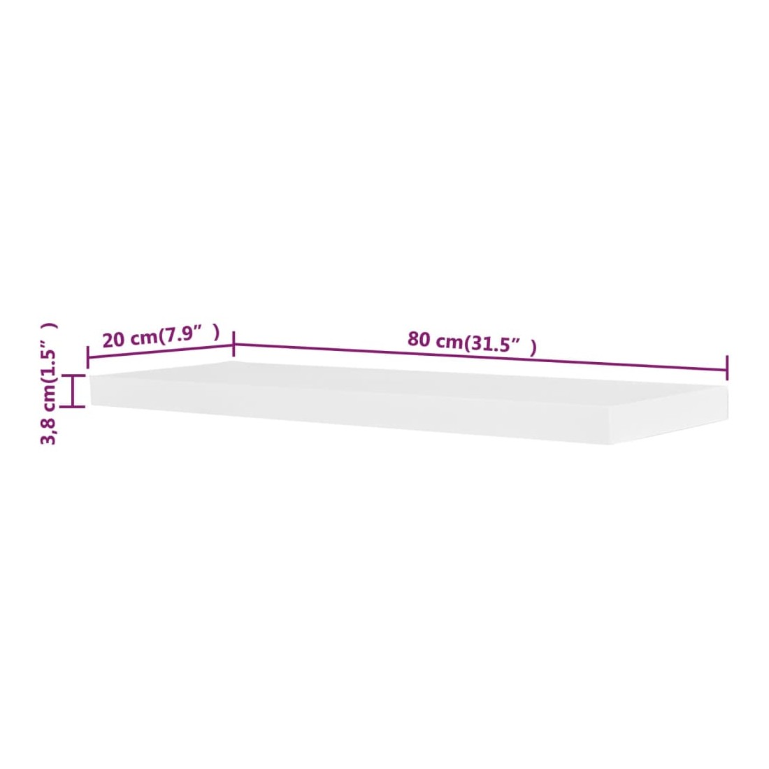 - Dimensions de l'étagère: 80 x 20 x 3,8 cm (l x P x H)