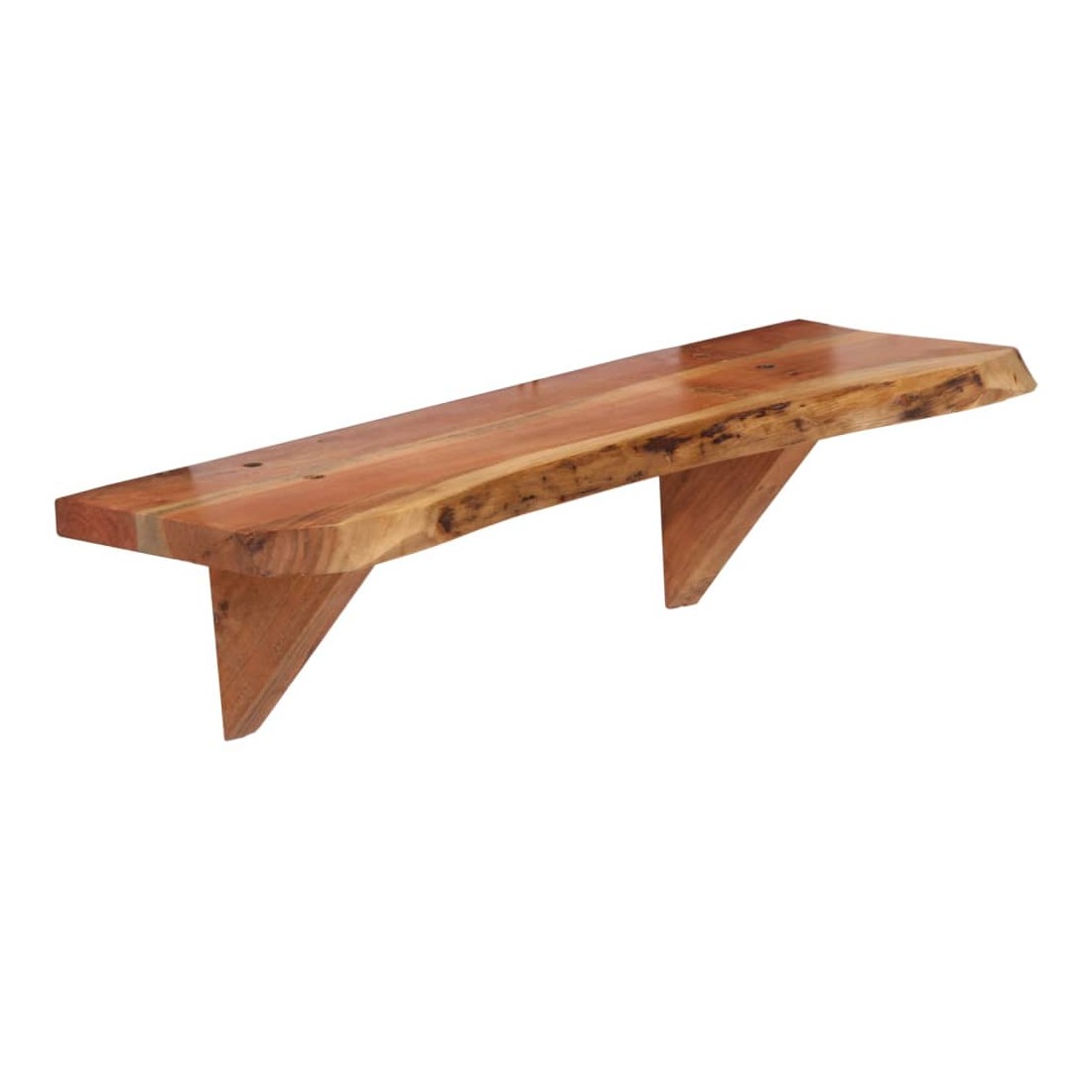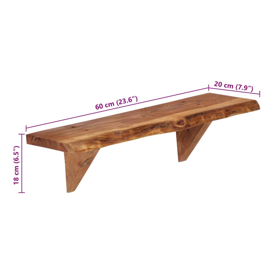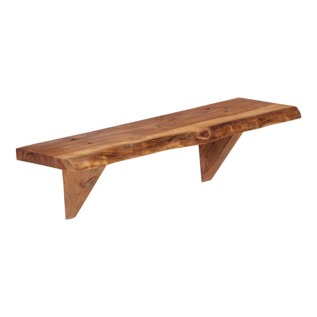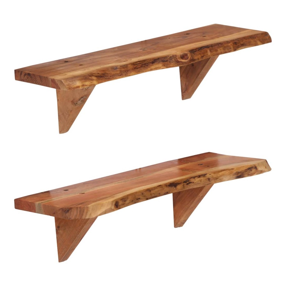 Ces étagères murales dégagent un charme rustique. Elles seront le centre de l'attention dans votre intérieur. Ces étagères murales sont faites de bois d'acacia massif qui a reçu une finition naturelle avec un bel aspect. Ces étagères murales sont entièrement faites à la main et le savoir-faire artisanal exquis ainsi que les grains de bois raffinés rendent chaque meuble unique et légèrement différent l'un de l'autre. De plus, la perfection de la fabrication garantit que chaque étape du processus est exécutée avec le plus grand soin, que ce soit le polissage, la peinture ou le vernissage. Ces étagères en bois serviront de solution idéale pour ranger et présenter votre collection de livres, magazines, documents, ainsi que des objets décoratifs comme des cadres photo et des objets de collection. Bon à savoir : chaque article est unique et présente des variations de couleurs, de grains et de formes. La livraison est aléatoire, ce qui garantit l'exclusivité et l'individualité de votre produit. La livraison comprend 2 étagères murales.