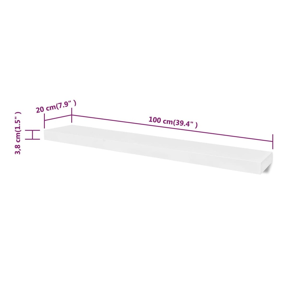- Dimensions de l'étagère: 100 x 20 x 3,8 cm (l x P x H)