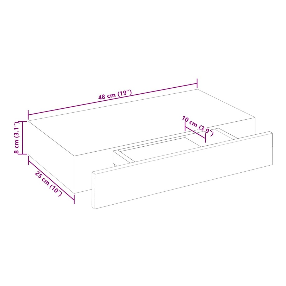- Dimensions de l'étagère : 48 x 25 x 8 cm (l x P x H)