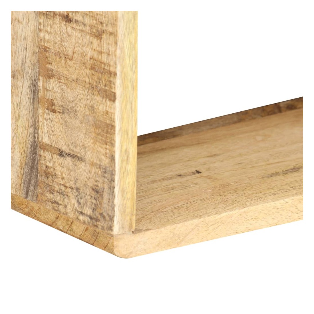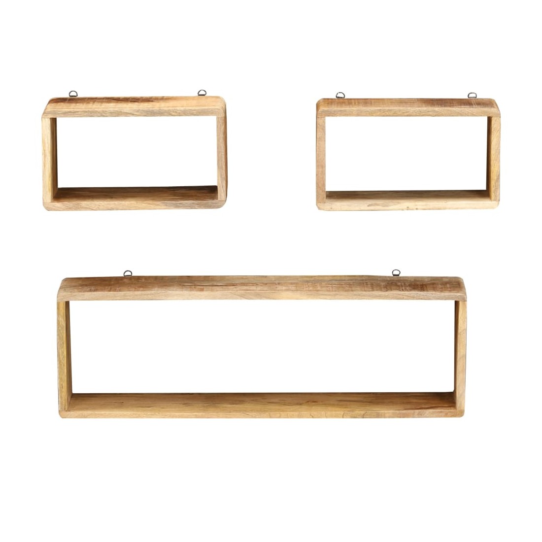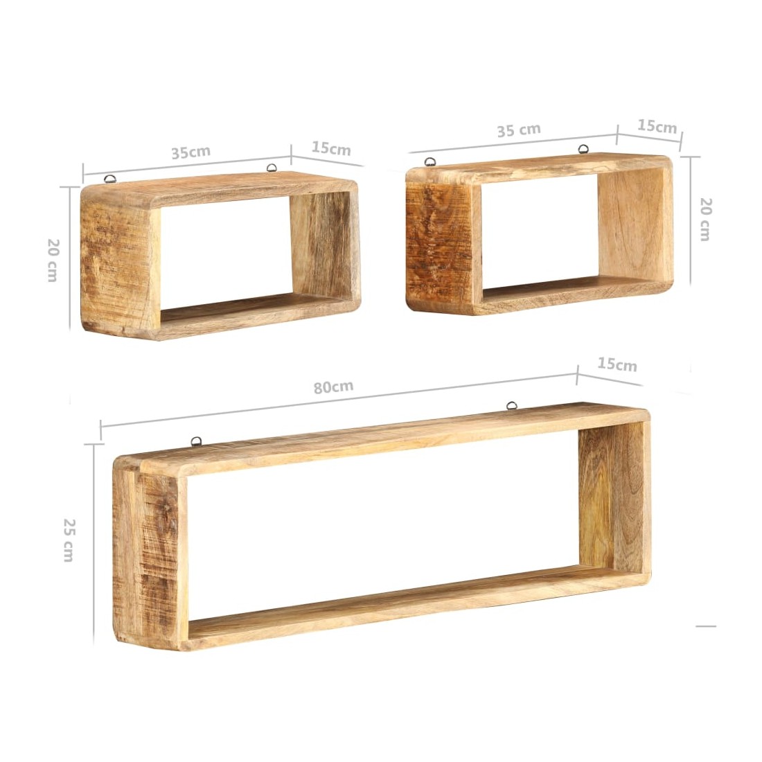Fabriquées en bois massif de récupération, ces 3 étagères cube apporteront une touche de convivialité et d'esthétisme à votre intérieur. Les variations de grain et de couleur confèrent à ces étagères un caractère unique. Ces étagères murales sont en bois de manguier massif, qui est un bois dur dense et robuste avec des belles stries et des contours bruns ou dorés à sa surface. L'artisanat parfait garantit que chaque étape du processus est effectuée avec le plus grand soin, qu'il s'agisse de polissage, de peinture ou de laquage. Cet ensemble de 3 étagères cube en bois sera une solution idéale pour stocker et afficher vos livres, récompenses, objets de collection, ornements, etc. La livraison comprend 3 étagères murales. Remarque importante : les grains de bois varient d'une pièce à l'autre, rendant chaque pièce unique. La livraison est aléatoire, ce qui garantit l'exclusivité et l'individualité de votre produit.