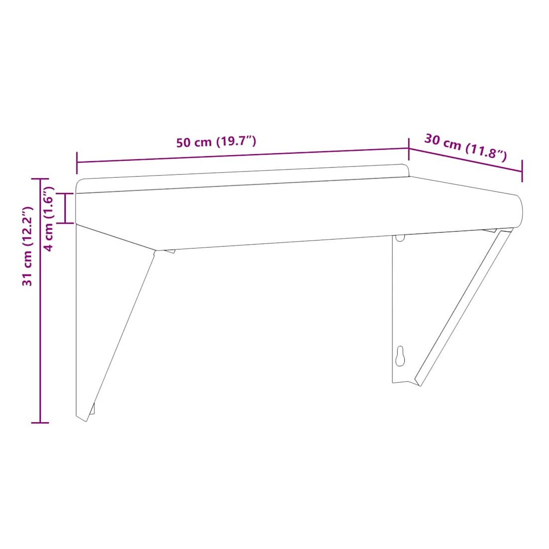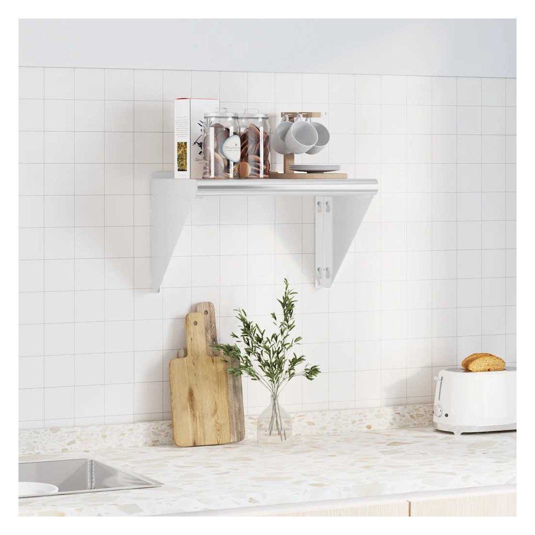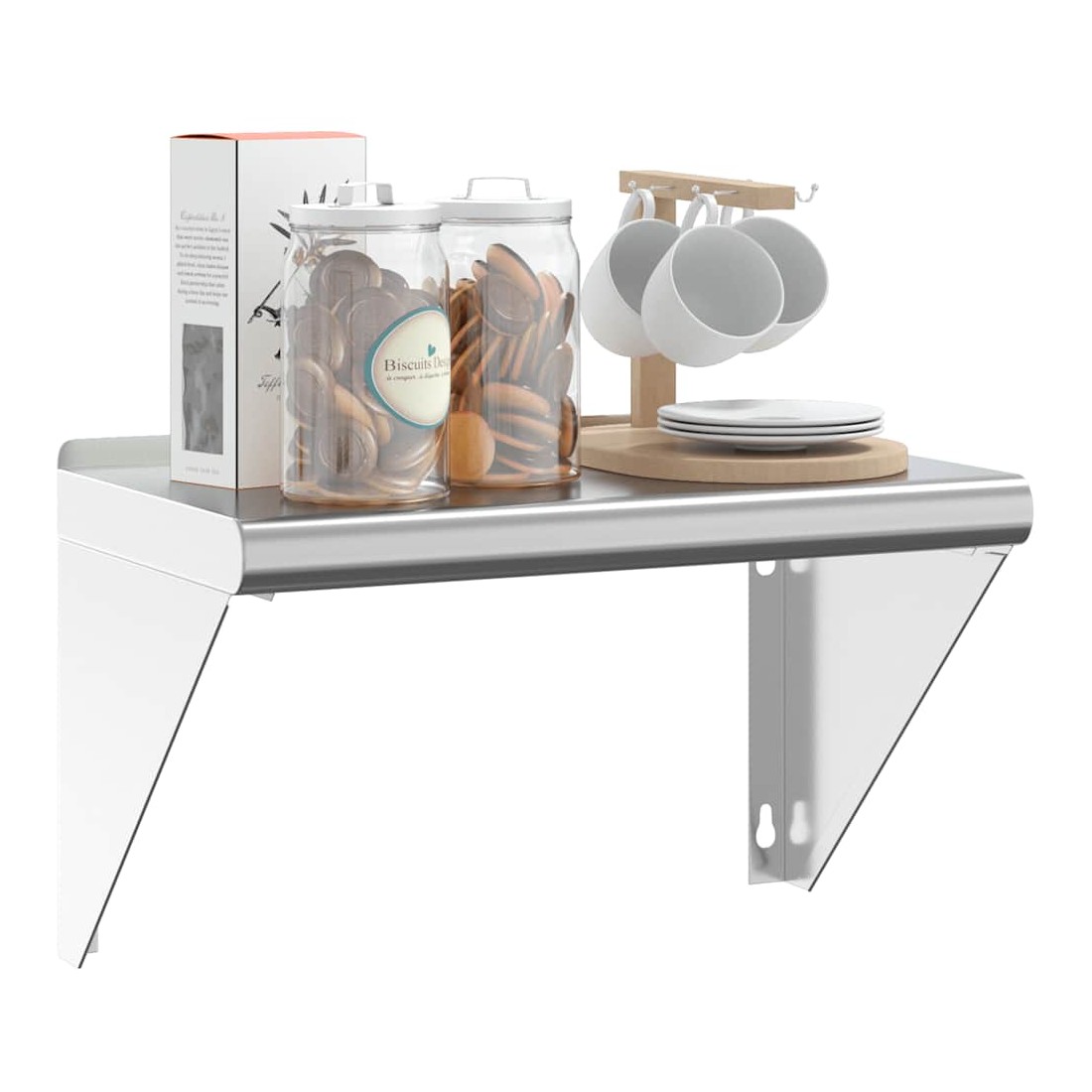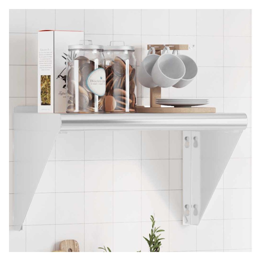 Dotée d'un design pratique, l'étagère murale est destinée à être le point central de votre salon, de votre chambre à coucher, etc. Robuste et durable : l'étagère murale flottante est fabriquée en acier inoxydable, ce qui la rend durable, résistante à la corrosion et durable.Gain de place : cette étagère murale peut être fixée au mur pour ajouter de l'espace de rangement supplémentaire. De cette façon, vous pouvez maximiser votre espace au sol et garder la zone propre.Bord relevé : les objets de décoration délicats sont conservés en sécurité grâce à la planche supérieure à bord relevé.Facile à installer : le support mural est facile à installer avec les accessoires de montage inclus.Étagère murale multifonctionnelle : l'étagère murale est conçue pour décorer et ranger des objets dans des lieux divers tels que le restaurant, la maison, la cuisine, l'hôtel, la buanderie, le bar, etc.