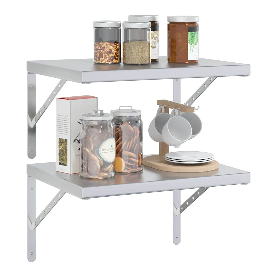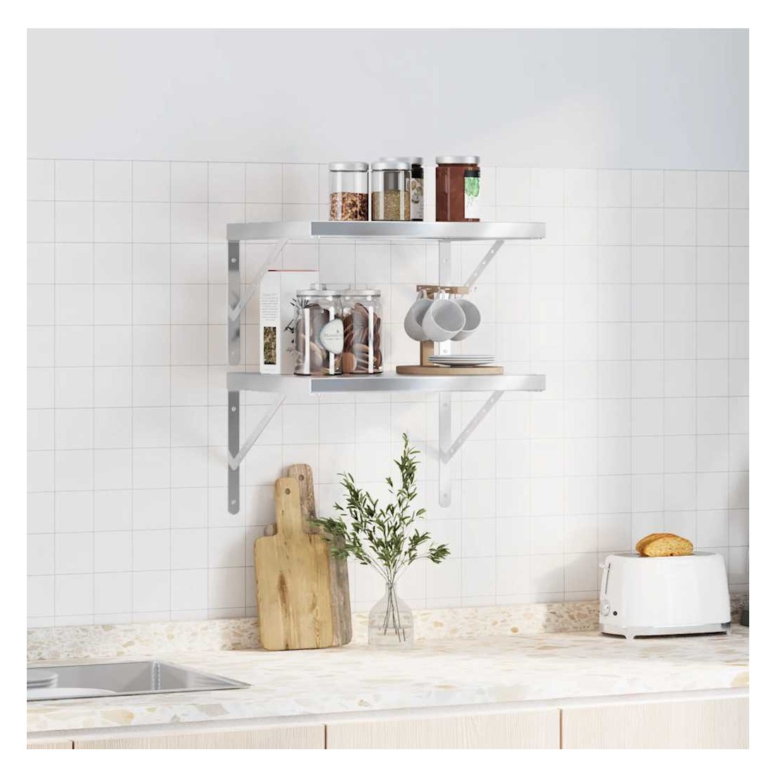 Avec un design pratique, ces étagères murales sont destinées à être le point central de votre salon, chambre à coucher, etc. Robuste et durable : l'étagère murale flottante est fabriquée en acier inoxydable, ce qui la rend durable, résistante à la corrosion et durable.Gain de place : cette étagère murale peut être fixée au mur pour ajouter de l'espace de rangement supplémentaire. De cette façon, vous pouvez maximiser votre espace au sol et garder la zone propre.Facile à installer : le support mural est facile à installer avec les accessoires de montage inclus.Étagère murale multifonctionnelle : l'étagère murale est faite à la fois pour décorer et pour ranger des objets dans votre maison. Vous pouvez l'utiliser pour exposer vos collections, livres, cadres photos, plantes, maquettes ou CD dans différentes pièces telles que le salon, le bureau ou la pièce d'étude. Bon à savoir :Le support doit être acheté séparément et n'est pas inclus dans ce produit.Nous proposons une sélection variée de supports d'étagère. Tu peux consulter notre boutique pour trouver une étagère assortie.