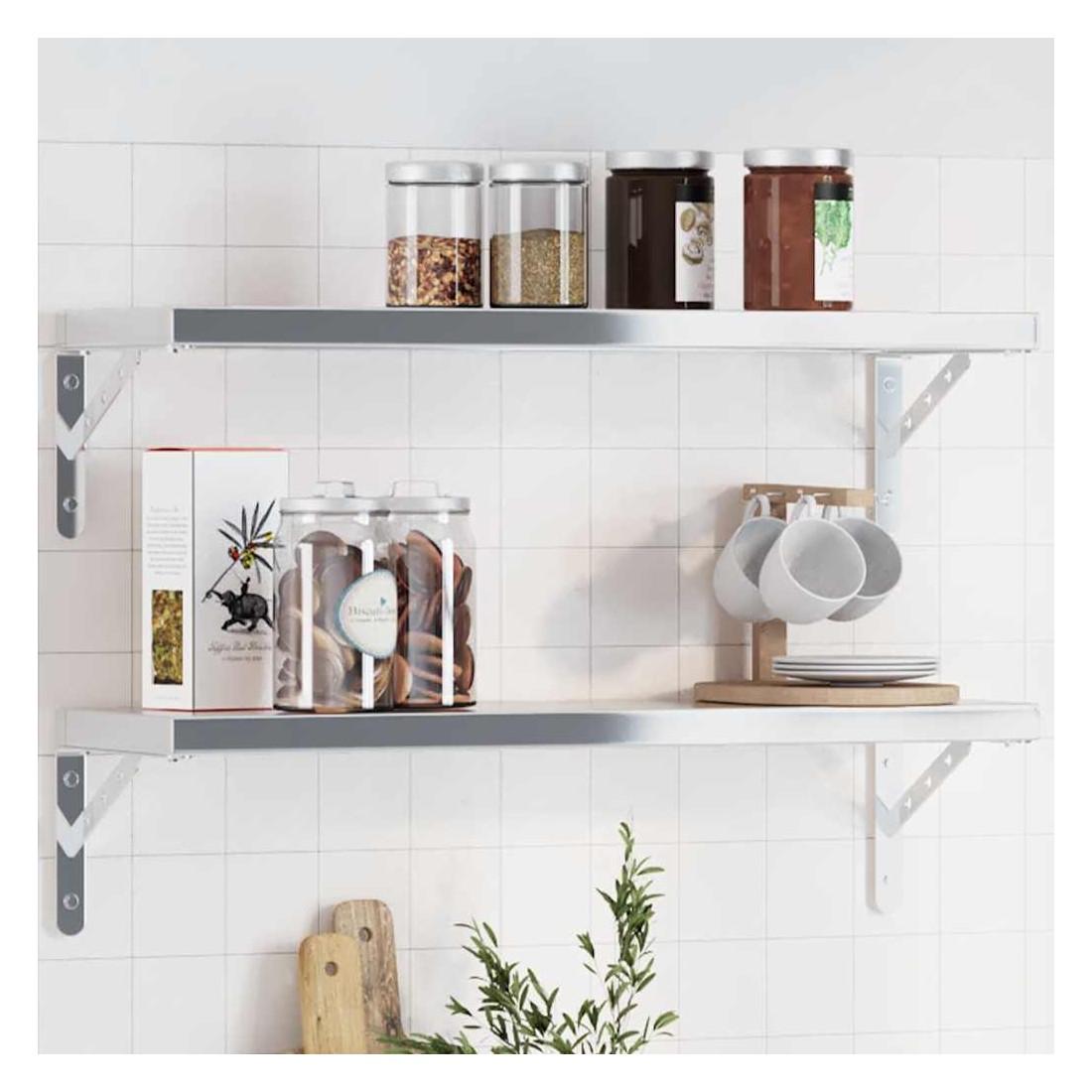 Supports d'étagères 4pcs argenté acier inoxydable