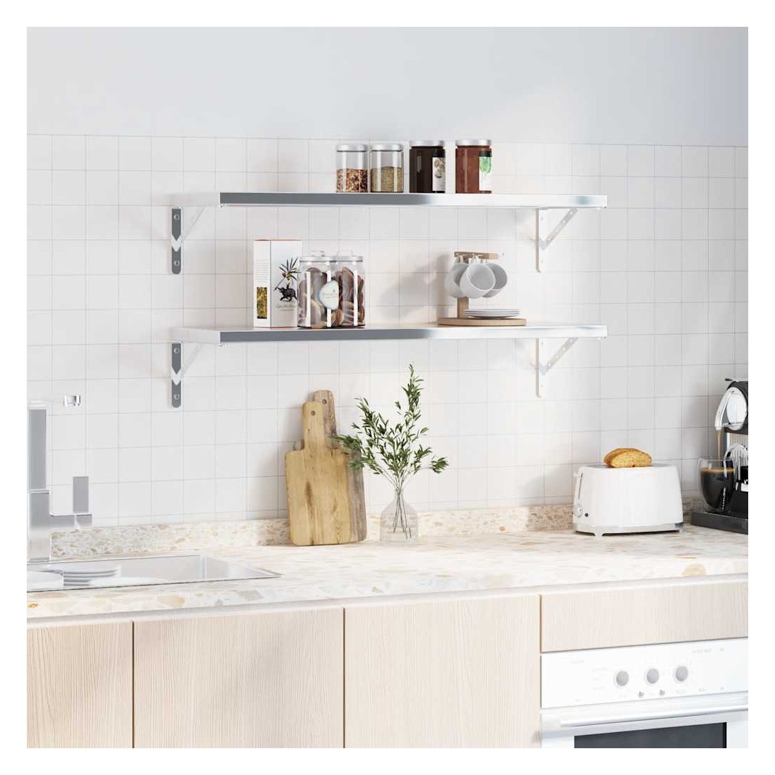 Renforcez l'organisation et l'esthétique de votre maison avec ces supports d'étagères! Matériau robuste : ce support d'étagère est fabriqué en acier inoxydable, ce qui le rend durable, résistant à la corrosion et durable.Facile à utiliser : grâce aux trous pré-percés dans le support, il peut être facilement assemblé avec l'étagère (non incluse) et fixé au mur.Peu encombrant : le support d'étagère convient parfaitement au bricolage. Il permet d'augmenter l'espace de rangement, d'ajouter un style décoratif et d'économiser de l'espace pour les meubles.Multifonctionnel : ce support d'étagère peut être utilisé comme contre-support et comme support d'étagère surplombant. Il peut être utilisé pour les bibliothèques, les étagères de cuisine, les murs de la cour, les étagères de jardin et plus encore.