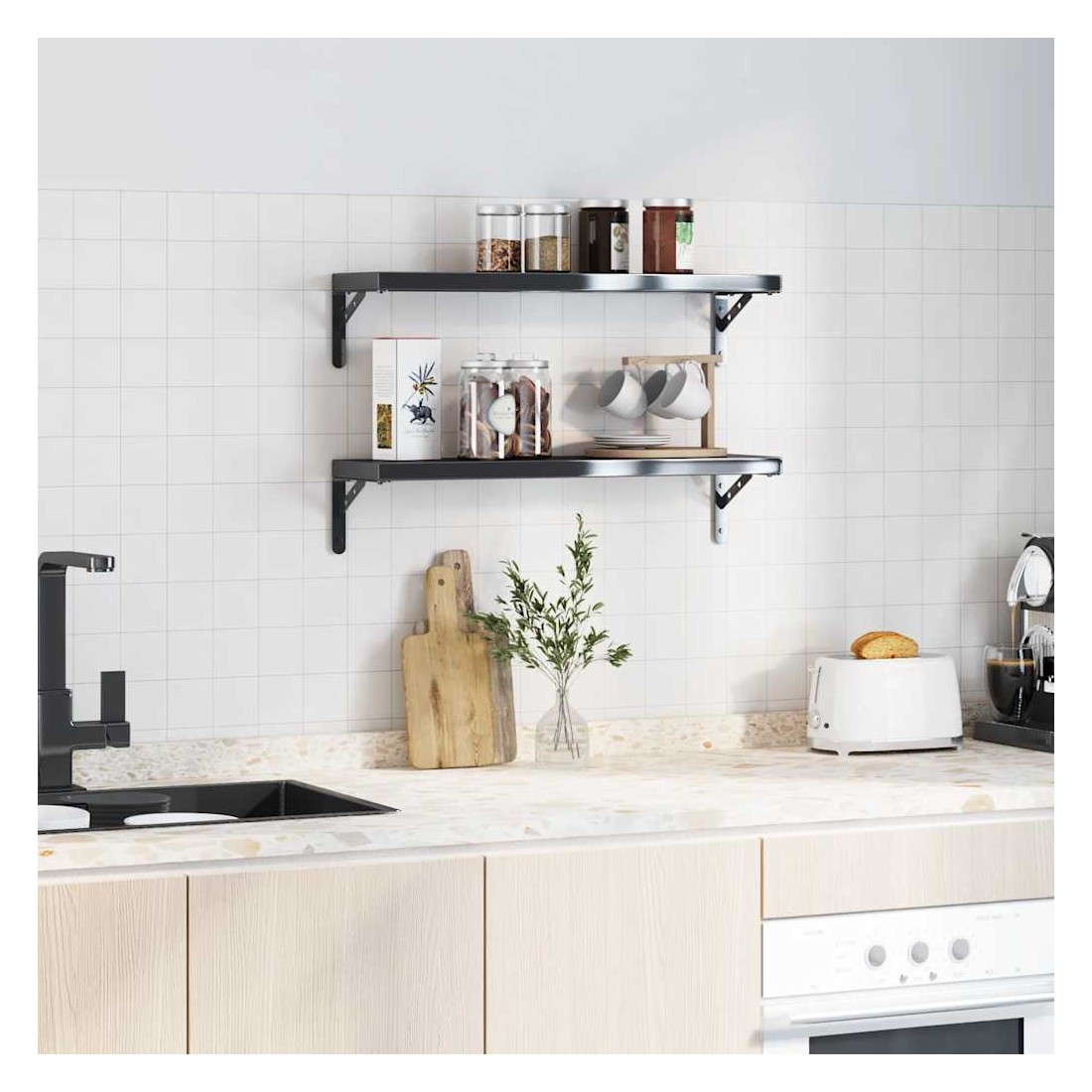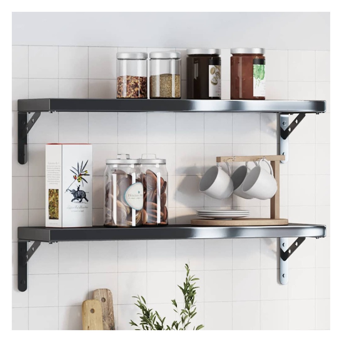 Renforcez l'organisation et l'esthétique de votre maison avec ces supports d'étagères! Matériau robuste : ce support d'étagère est fabriqué en acier inoxydable, ce qui le rend durable, résistant à la corrosion et durable.Facile à utiliser : grâce aux trous pré-percés dans le support, il peut être facilement assemblé avec l'étagère (non incluse) et fixé au mur.Peu encombrant : le support d'étagère convient parfaitement au bricolage. Il permet d'augmenter l'espace de rangement, d'ajouter un style décoratif et d'économiser de l'espace pour les meubles.Multifonctionnel : ce support d'étagère peut être utilisé comme contre-support et comme support d'étagère surplombant. Il peut être utilisé pour les bibliothèques, les étagères de cuisine, les murs de la cour, les étagères de jardin et plus encore.