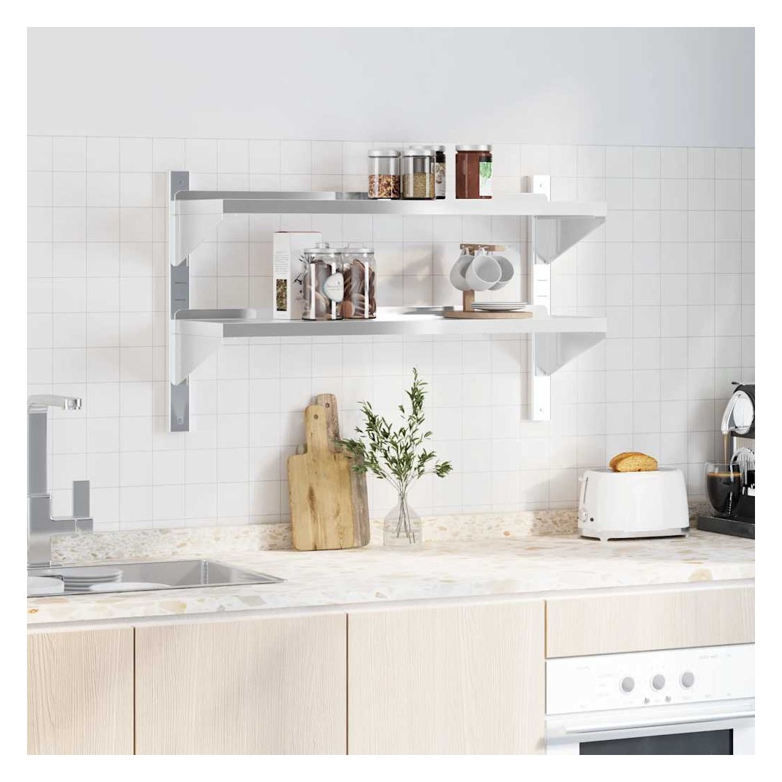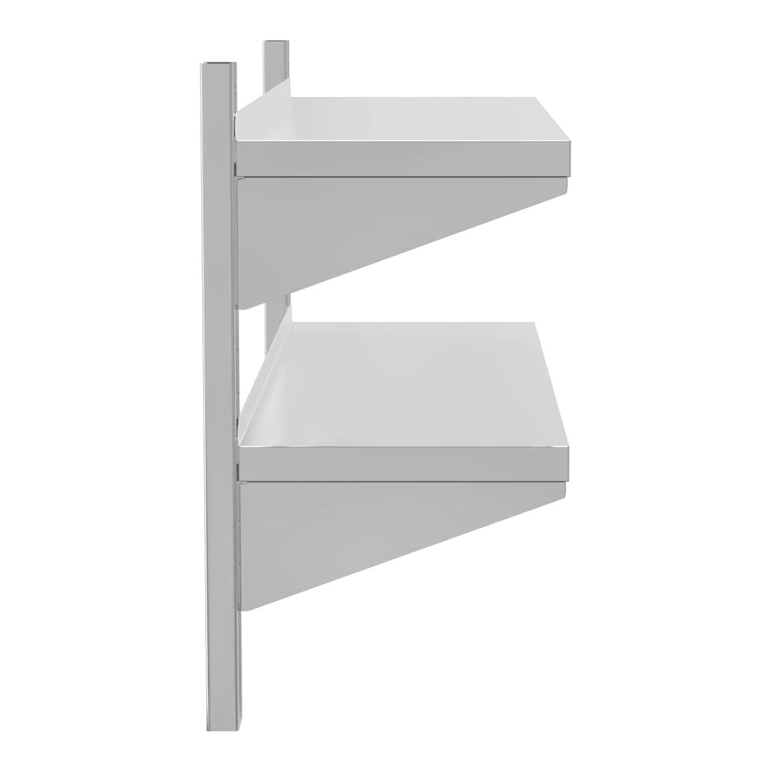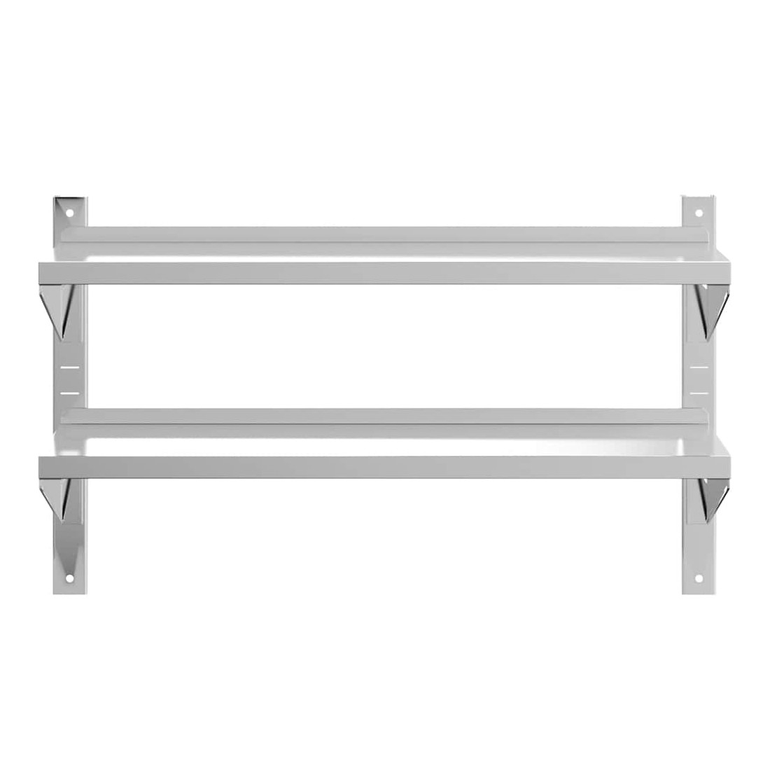 Dotée d'un design pratique, l'étagère murale à 2 niveaux est destinée à être le point central de votre salon, de votre chambre à coucher, etc. Robuste et durable : l'étagère murale flottante est fabriquée en acier inoxydable, ce qui la rend durable, résistante à la corrosion et durable.Gain de place : cette étagère murale peut être fixée au mur pour ajouter de l'espace de rangement supplémentaire. De cette façon, vous pouvez maximiser votre espace au sol et garder la zone propre.Bords relevés : les objets de décoration délicats sont conservés en sécurité grâce à la planche supérieure aux bords relevés.Facile à installer : le support mural est facile à installer avec les accessoires de montage inclus.Étagère murale multifonctionnelle : l'étagère murale est conçue pour décorer et ranger des objets dans des lieux divers tels que la cuisine commerciale, la cuisine familiale, le garage, la buanderie, les locaux de service, les locaux techniques, les laboratoires, etc.