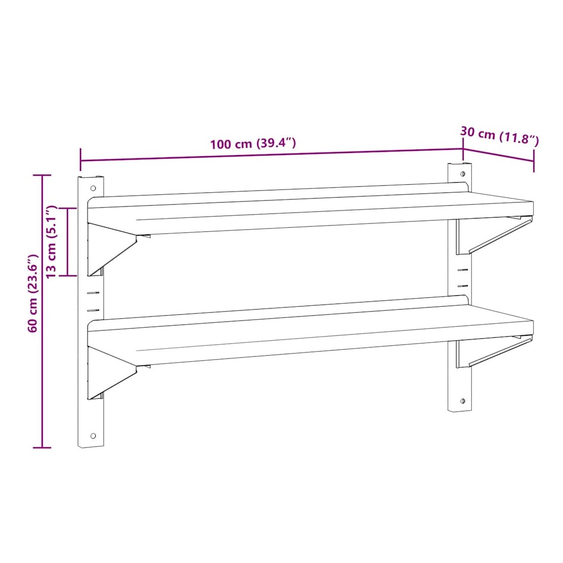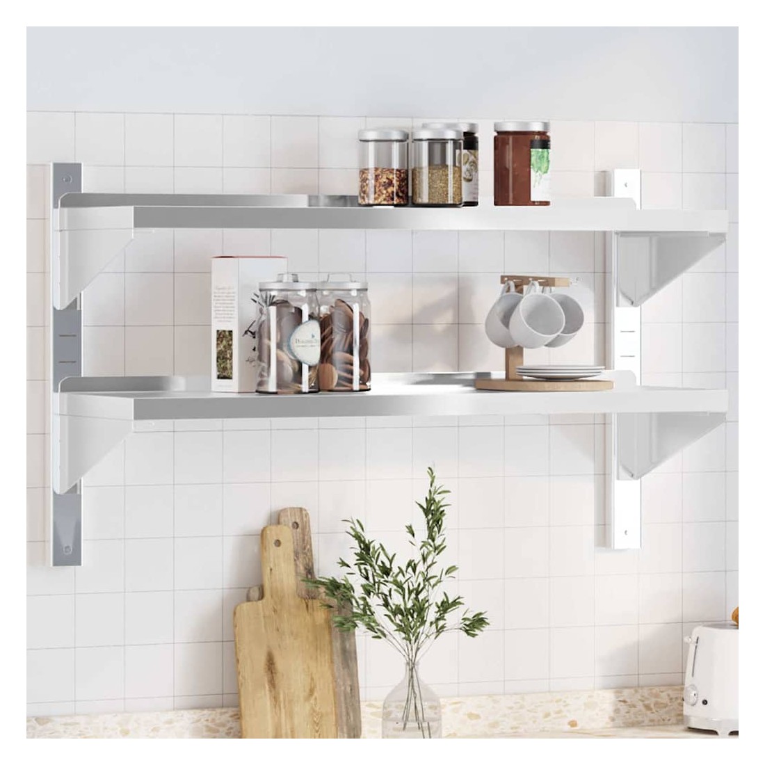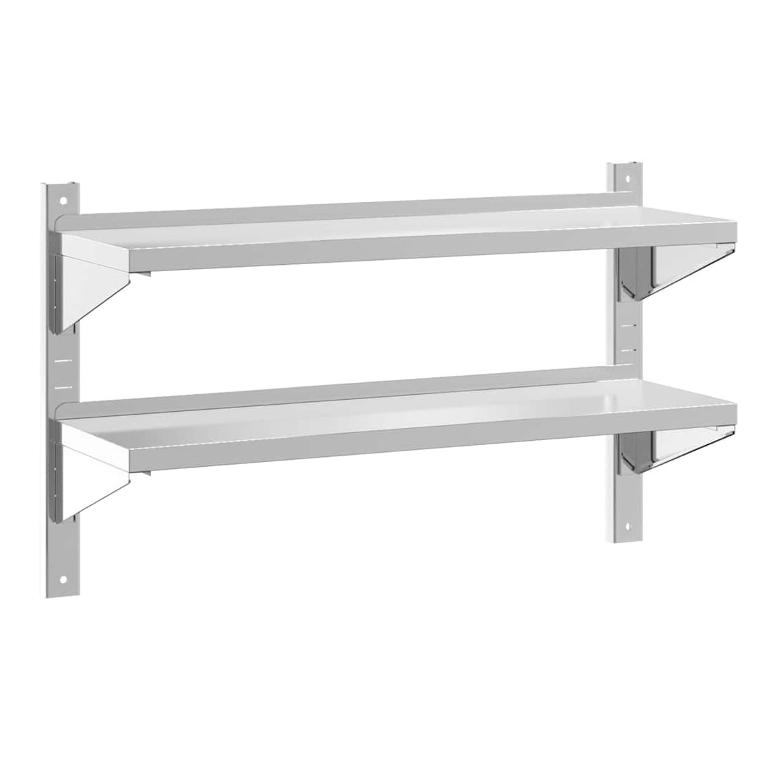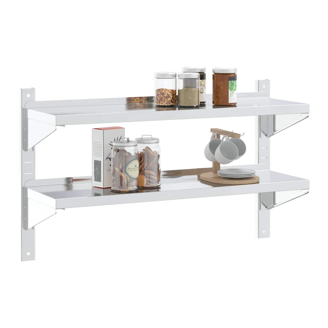 Dotée d'un design pratique, l'étagère murale à 2 niveaux est destinée à être le point central de votre salon, de votre chambre à coucher, etc. Robuste et durable : l'étagère murale flottante est fabriquée en acier inoxydable, ce qui la rend durable, résistante à la corrosion et durable.Gain de place : cette étagère murale peut être fixée au mur pour ajouter de l'espace de rangement supplémentaire. De cette façon, vous pouvez maximiser votre espace au sol et garder la zone propre.Bords relevés : les objets de décoration délicats sont conservés en sécurité grâce à la planche supérieure aux bords relevés.Facile à installer : le support mural est facile à installer avec les accessoires de montage inclus.Étagère murale multifonctionnelle : l'étagère murale est conçue pour décorer et ranger des objets dans des lieux divers tels que la cuisine commerciale, la cuisine familiale, le garage, la buanderie, les locaux de service, les locaux techniques, les laboratoires, etc.